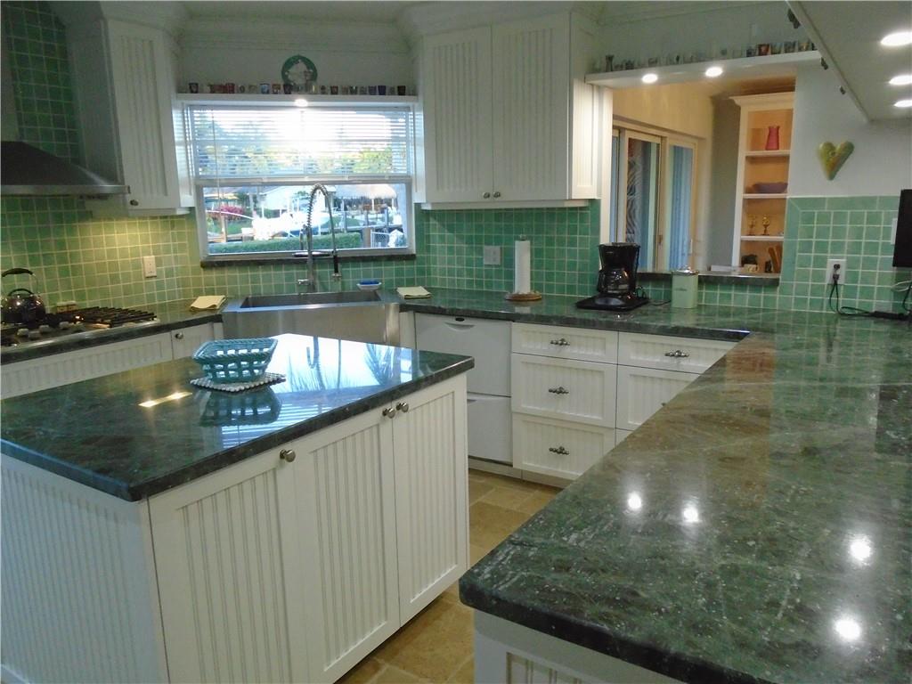 Rare property on Harbor Village Island. 80 feet of waterfront with 60 foot dock on one of the widest canals in Pompano, no fixed bridges & about 15 min to inlet. Substantially remodeled in 2008, has 2 car garage, 4 BR's, 4 full baths, split BR plan and impact windows/doors throughout. Two A/C systems, tankless gas w/h, new gas pool/spa heater. Large master BR has his and her walk in closets, bath with double vanity, spa tub and walk in shower. Kitchen includes gas cook top, wall mounted convection oven, micro wave and Miele steam oven. DR features huge built in china cabinet. Big laundry room with sink, cabinets and fridge. Back yard has large heated pool with spa, covered porch area and ample patio area for entertaining. Gated neighborhood with no assoc fee or special restrictions.