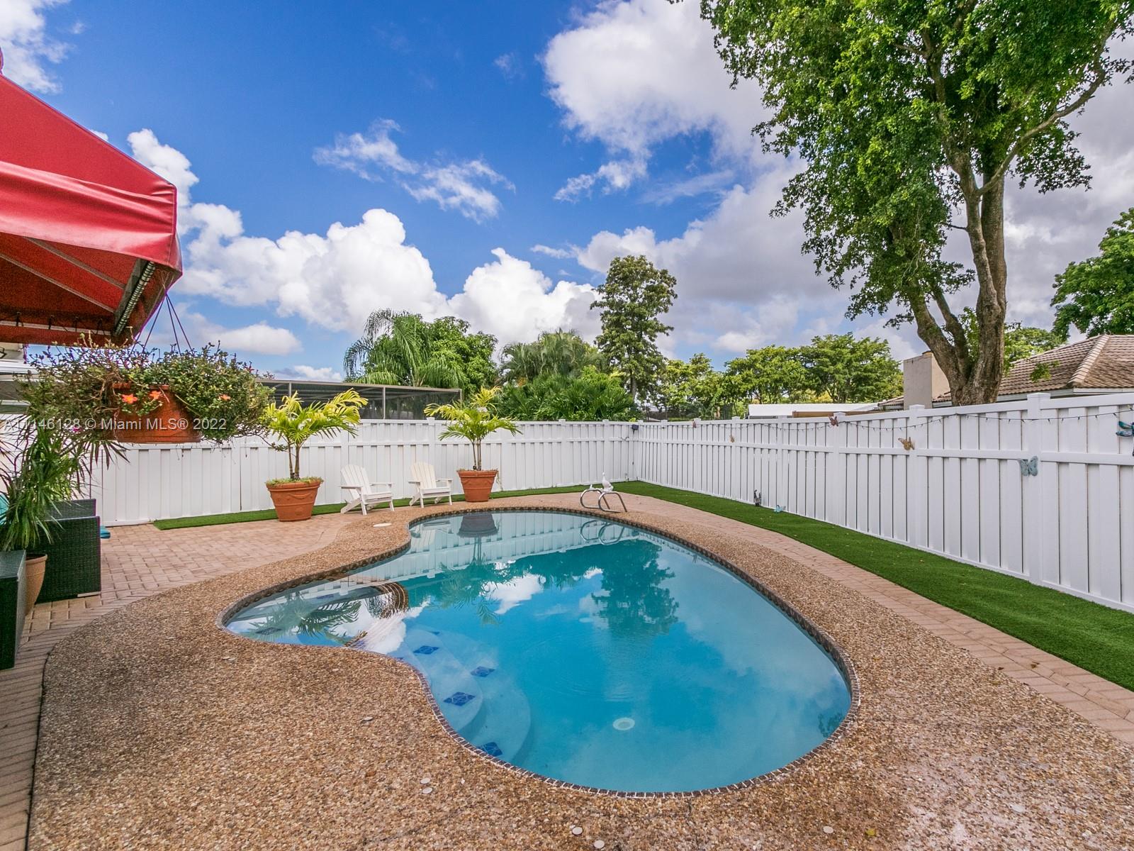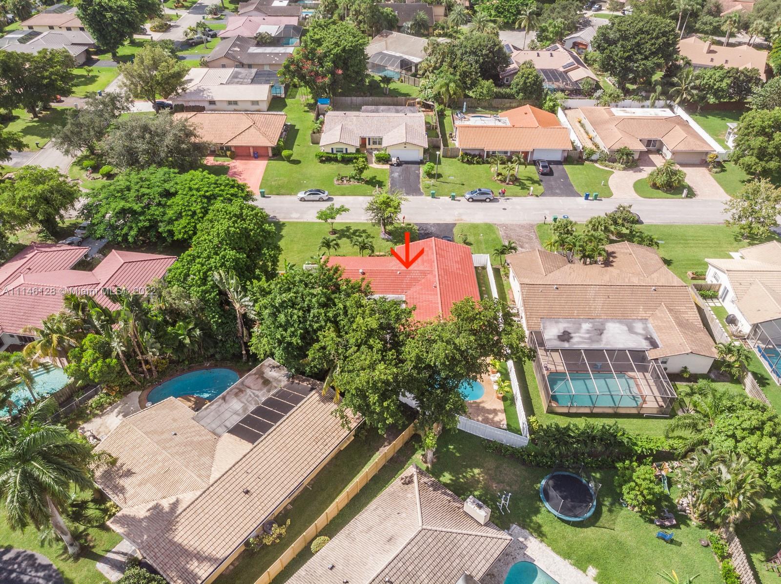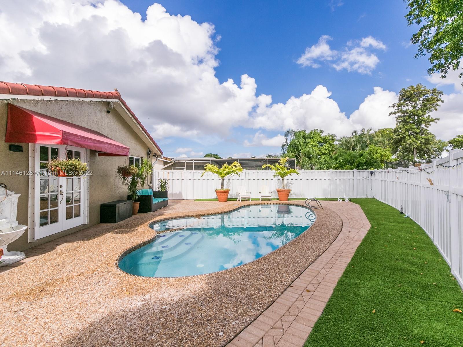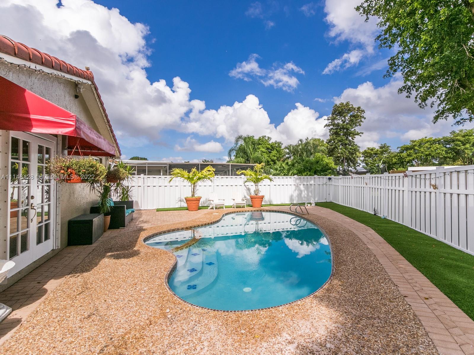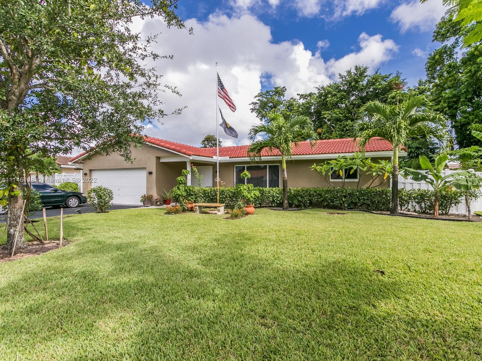 Beautiful Single Family Home in the highly desirable area of Ramblewood. NO HOA! This house is the pride of its owner. Freshly painted inside, no carpets, ceramic and laminate floors, A/C and Water Heater 2020, impact windows 2015, Gutters, washer and reface pool 2021, flat roof 2019, Pool pump, dryer, flag pole and Impact front door 2017, shutters, PVC white fence 2019, water sense toilets 2018, dimmers lights. Lots of fruit trees, large enclosed patio, pool, split floor plan. Close to restaurants & shopping include The Walk & Coral Square mall. Very central Coral Springs location close to major highways and public schools & transportation.