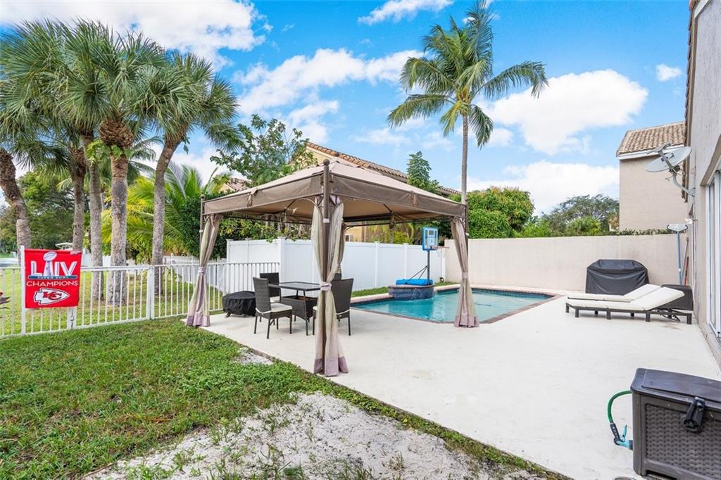 This fabulous 4 bedroom home with a loft is situated on a peaceful lake and offers a flexible floorplan! The large and open great room is drenched in natural light and features serene views of the pool and lake. Large island kitchen with beautiful wood cabinetry, granite, and SS appliances. The first-floor primary bedroom suite is spacious and has a bathroom with double vanity, a separate tub, and a shower. Upstairs are 3 bedrooms, a loft, and a bathroom. The awesome backyard is private and features a pool, inviting outdoor living spaces, and lake frontage. Great location near dining, parks, places of worship, A-rated schools & shopping. This home is a wonderful opportunity.