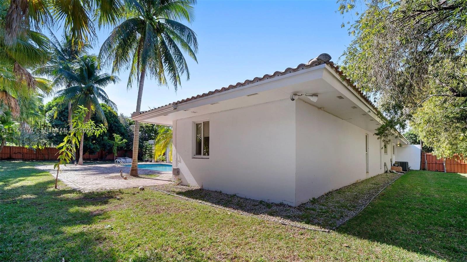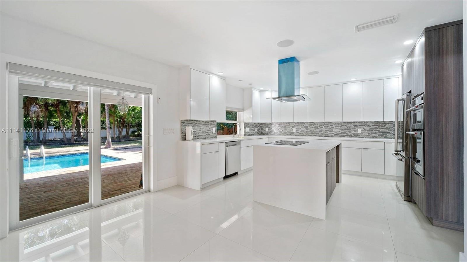 Beautiful Coral Gables Corner Home in prestigious Pine Bay Estates. SqFt Adj 4,412. Grand and imposing entrance leading to modern double doors with glass accents. Excellent lobby entry, formal dining room, living room, and has a spacious, bright, and cozy family room overlooking the pool and garden. Renovated kitchen with Italian-style cabinets and quartz countertop. There are spacious 5 bedrooms and 3 1/2 baths, the large master bedroom with his and her walk-in closets, a beautifully renovated master bathroom with marble, a separate shower and tub, and many details. And it also has a large laundry room and much more areas! It has fantastic details, such as the Chicago brick driveway, patio, and pool area. Parking for more than 15 cars. Don't miss out on this amazing opportunity!