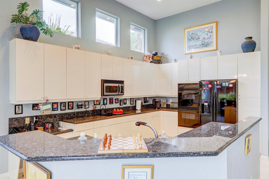 Beautiful lake & golf course views from the moment you enter fill this light & bright, charming two-story home of 4 bedrooms (Master + an office down), loft & 3 1/2 baths -- neutral & immaculate offering volume ceilings; white tile floors throughout & beige carpeting up the stairs; decorative columns; an open kitchen with high-gloss beige 42'' cabinetry, granite countertops & a lovely breakfast nook; a spacious Master Suite with walk-in closets; remodeled Master and secondary bathrooms; flat wall finish; upgraded LED high-hat lighting; ceiling fans & custom window blinds; and a private screened patio with a newly resurfaced pool & glass tiles overlooking the lake & golf course! A/C systems - 2018, water heater - 2019, New roof - 2018.