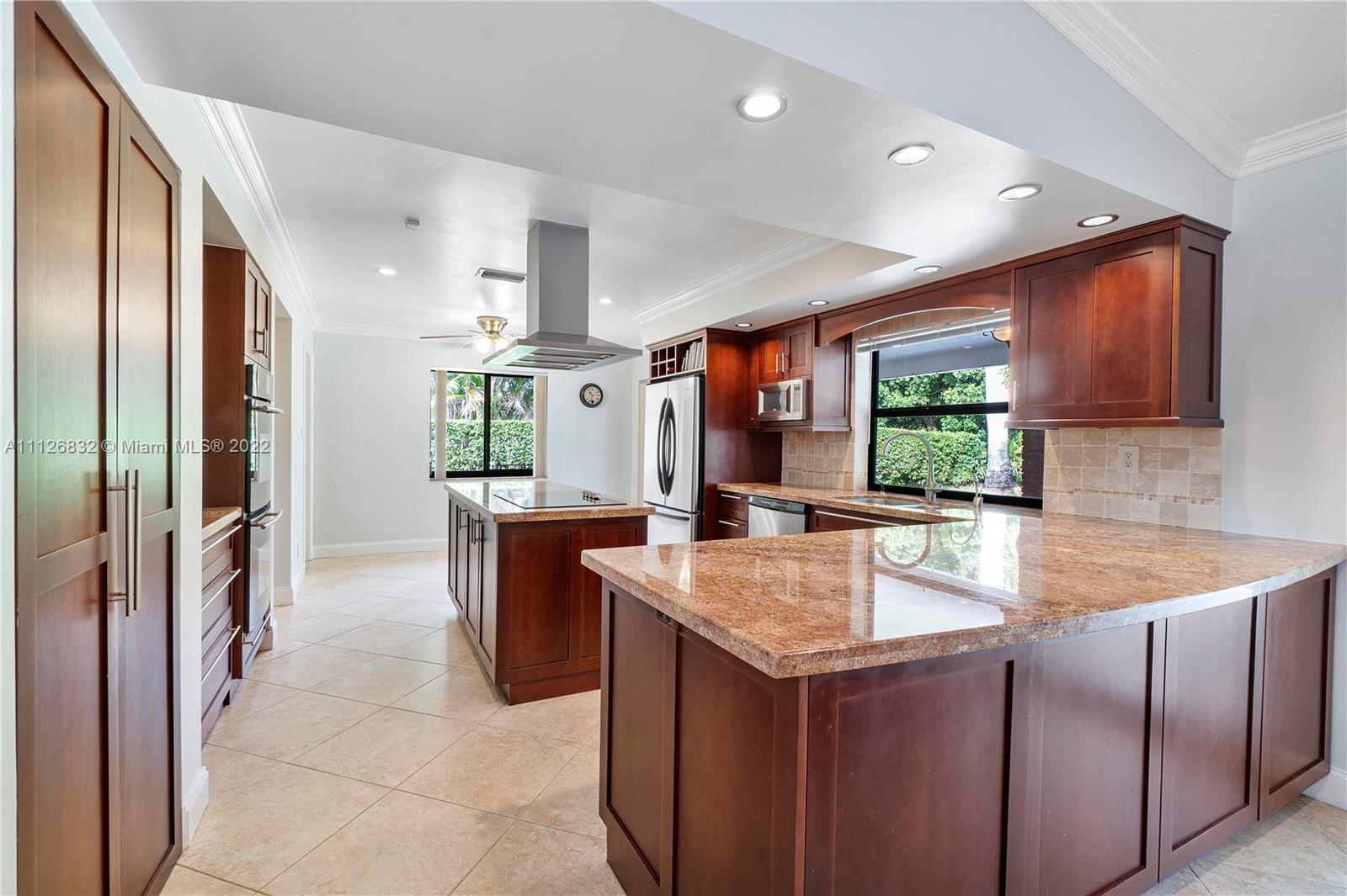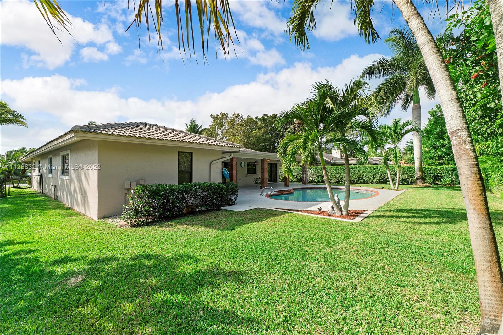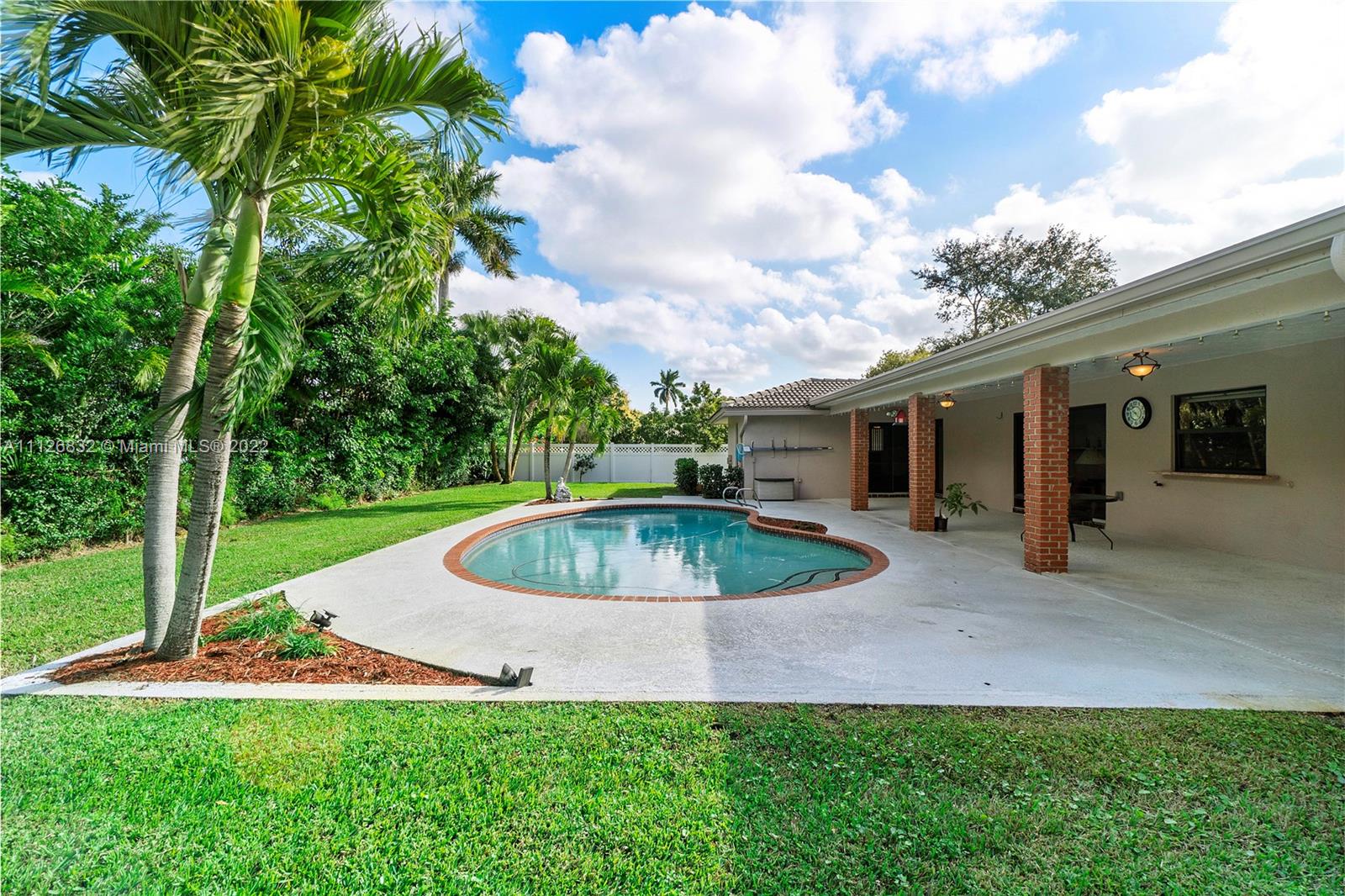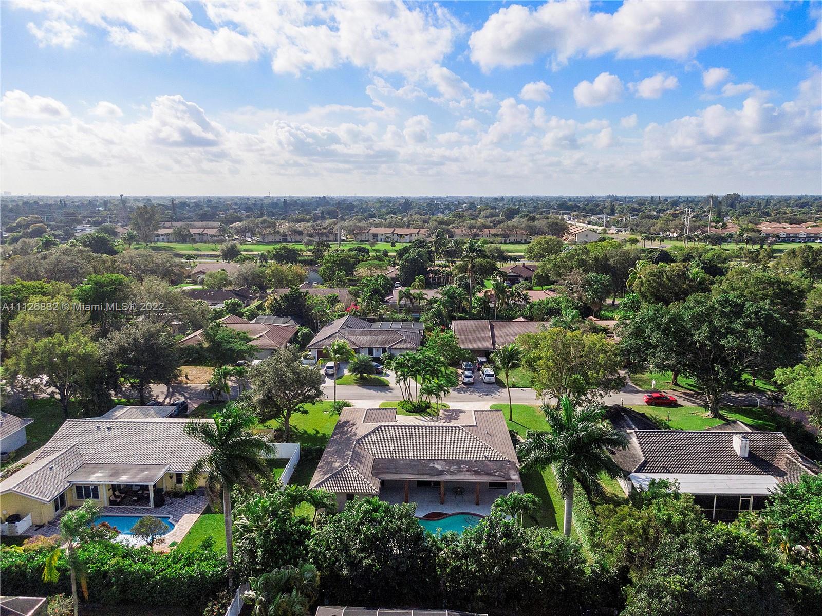Beautiful home in highly desirable Shadow Wood neighborhood on 1/4 acre lot! Enjoy the serenity with mature trees, lakes and walking paths! Features Impact windows, entry & sliding doors! Beautifully updated kitchen with lots of cabinets, granite counter tops, island style cook top, double wall ovens, microwave and stainless steel appliances. Formal dining room, formal living room with engineer wood floors, all bedrooms with laminate floors & built-in custom cabinets in closets. All living area with large diagonal tiles. Exterior features circular driveway, meticulous landscaping, privacy fenced backyard, freestyle pool with access to cabana bath and an extended patio area, great for grilling & outdoor entertainment! Great schools, Mall and highways all in close proximity! NO HOA!!