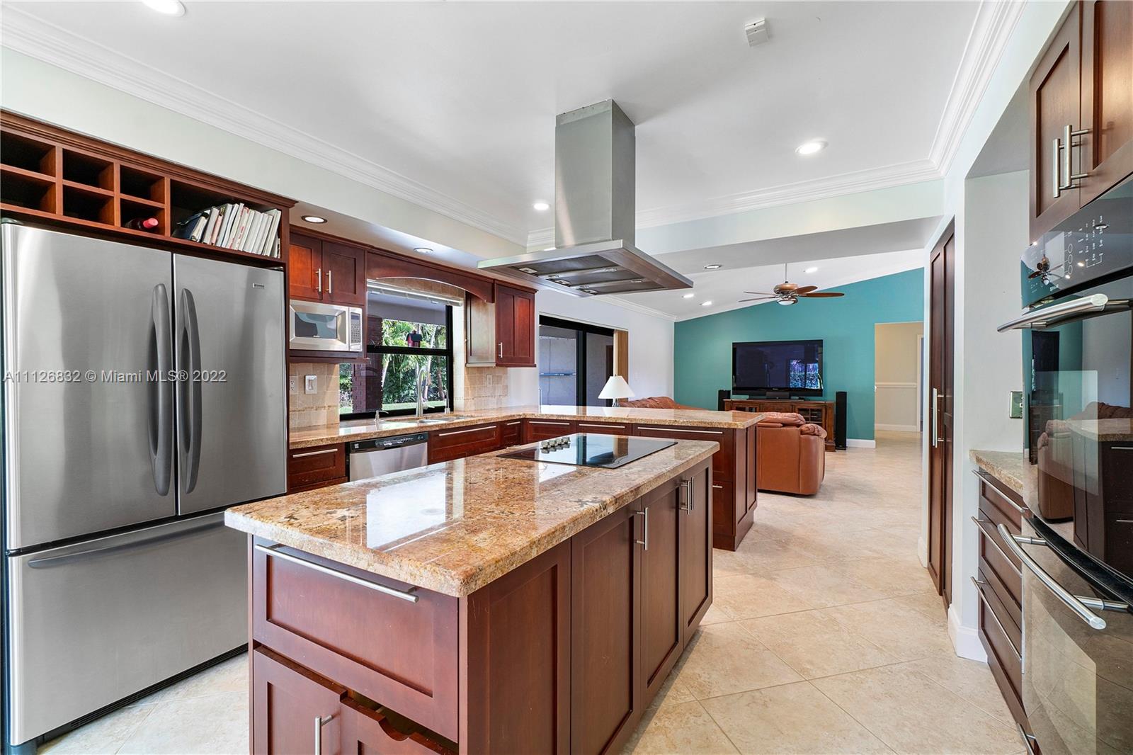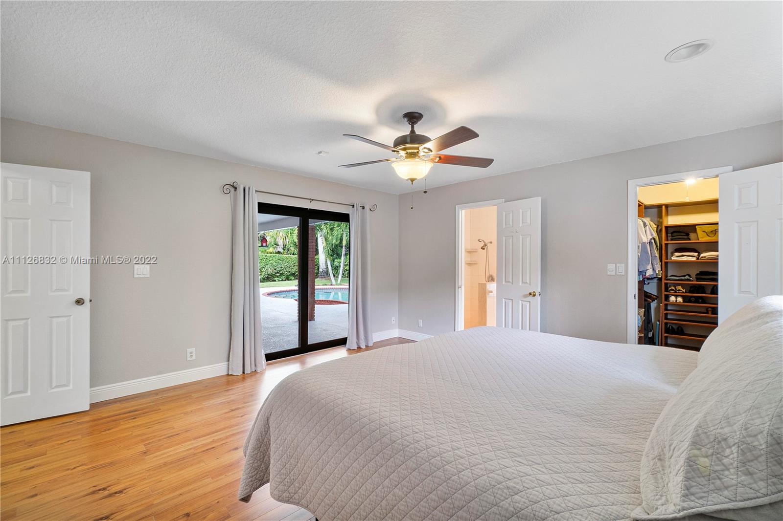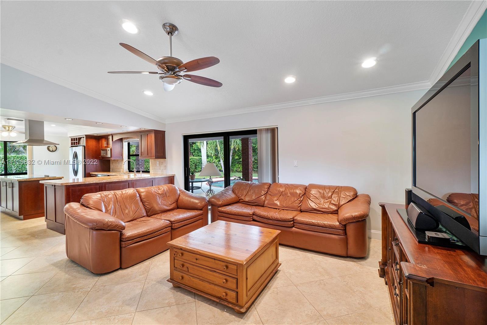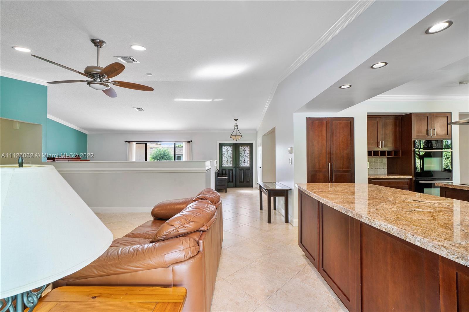 Beautiful home in highly desirable Shadow Wood neighborhood on 1/4 acre lot! Enjoy the serenity with mature trees, lakes and walking paths! Features Impact windows, entry & sliding doors! Beautifully updated kitchen with lots of cabinets, granite counter tops, island style cook top, double wall ovens, microwave and stainless steel appliances. Formal dining room, formal living room with engineer wood floors, all bedrooms with laminate floors & built-in custom cabinets in closets. All living area with large diagonal tiles. Exterior features circular driveway, meticulous landscaping, privacy fenced backyard, freestyle pool with access to cabana bath and an extended patio area, great for grilling & outdoor entertainment! Great schools, Mall and highways all in close proximity! NO HOA!!