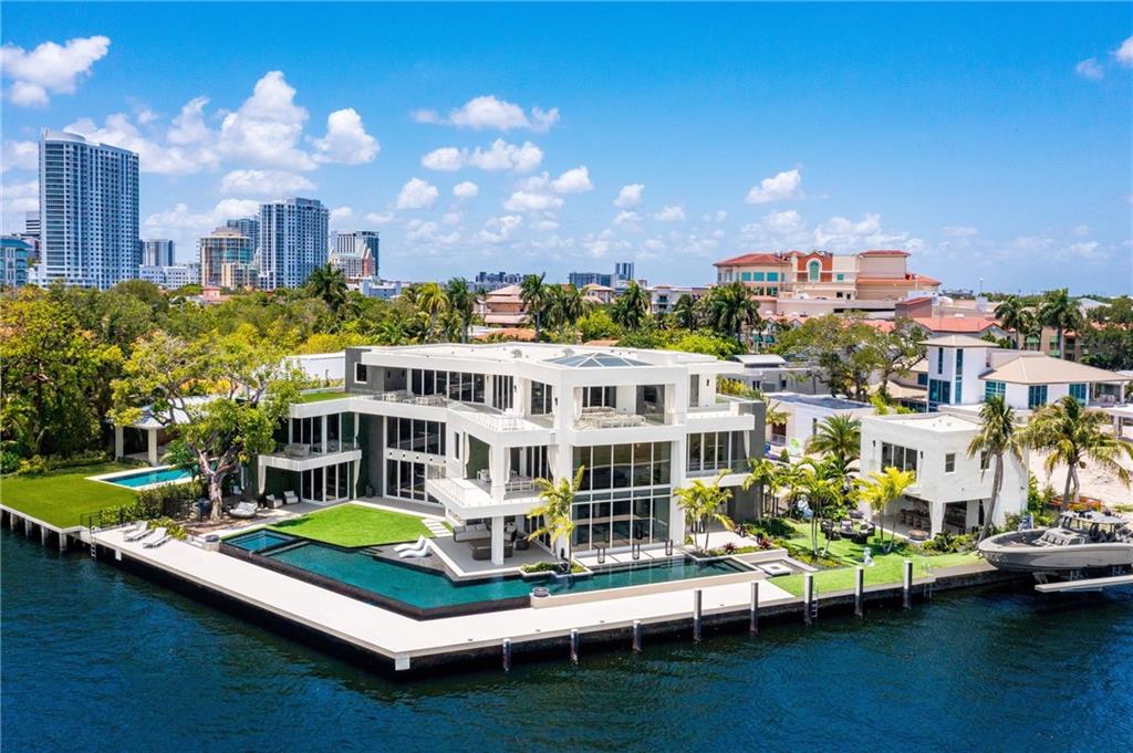 Breathtaking one-of-a-kind estate! This modern 3-story point lot offers 250' of deep WF. Bright, open floor plan boasts breathtaking River views. Fastidious craftsmanship & attention to detail w/ultra high-end finishes throughout. Luxurious features include game room, theater, temp controlled wine cellar, generator, natural & propane gas, boat lift, oversized kitchen, guest house & 3rd level club room. Huge primary suite w/water views, his & hers baths, closets & massage room. Also find a gym & spa that can be converted into a secondary suite. Resort style backyard w/lap pool & numerous covered lounging areas. Located in gated Sagamore Cove in Las Olas Isles. With quick & easy access to the ICW & inlet, this location is a yacht owner's paradise! Walking distance to Las Olas restaurants.