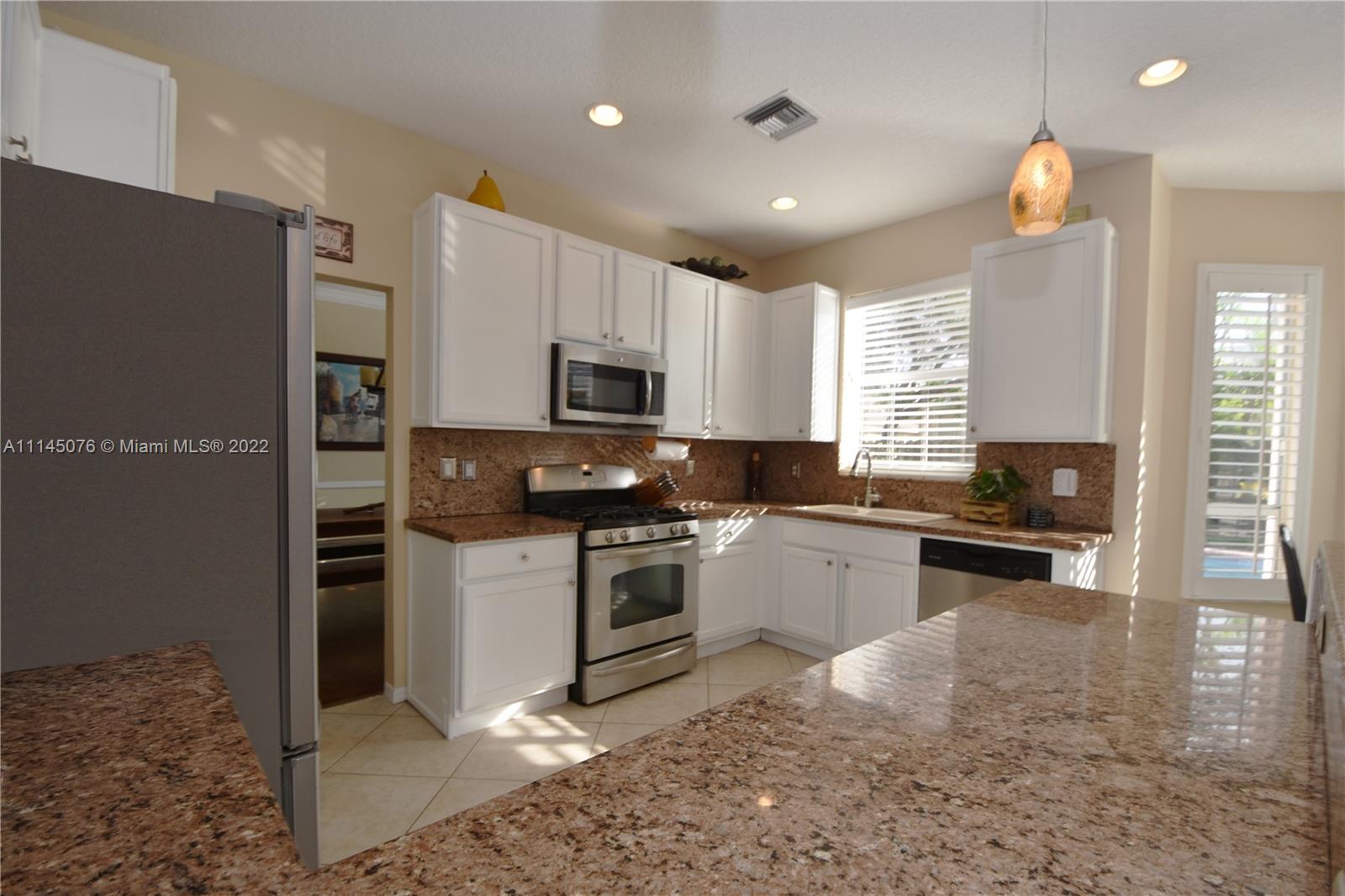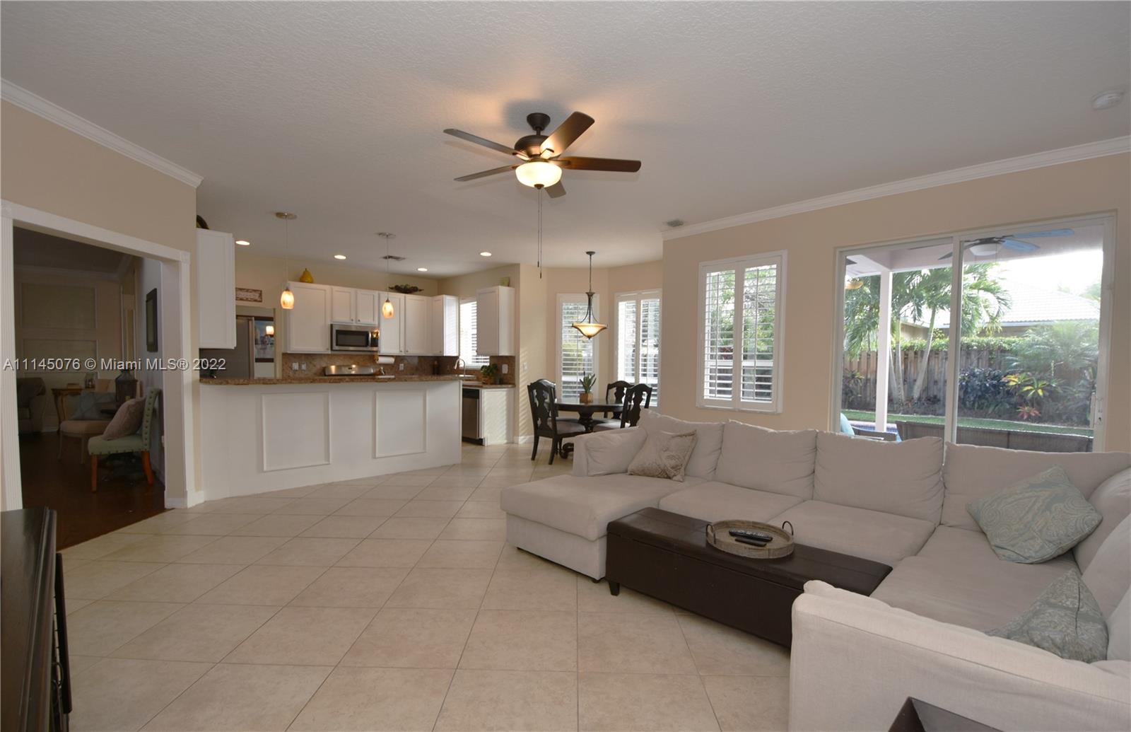 MUST-SEE 6 BEDROOM 3 BATH ARUBA MODEL IN PEMBROKE FALLS. OPEN HOUSE 1/15-1/16 1-5pm. Heated, Salt System Pool. 4 Manned/Gated Entries. Free-flowing floorplan and spacious backyard with lush landscaping, landscape lighting, and firepit. Open kitchen with Granite counter tops, Stainless Steel Appliances, Gas Stove. Gas Water Heater. Porcelain Tile in Kitchen and immediate surrounding living area. Hardwood floors in formal living area and formal dining room. Laminate wood on staircase and in all bedrooms. 3-Car Garage. Accordion shutters on the second floor. Plantation shutters in living areas, breakfast area, master bedroom, and 6th bedroom upstairs. Spacious Laundry Room. Newly remodeled Clubhouse with resort-style Amenities. Schools within walking distance.