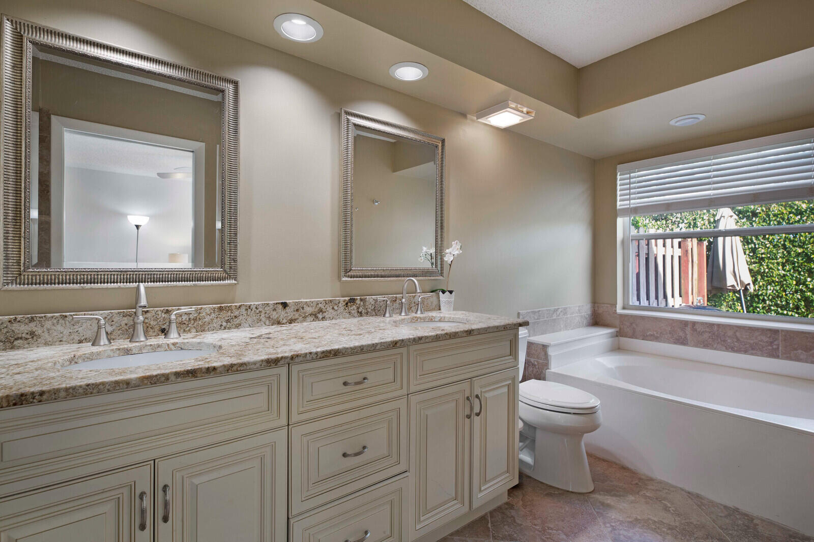 Immaculate, open and bright 4 bedroom home on large corner lot w/fabulous backyard! Updated eat-in kitchen w/wood cabinets & granite counters. Extra cabinets in breakfast room. Spacious primary suite on 1st floor has walk-in closet, extra room for desk AND a Peleton, remodeled bathroom w/soaking tub, separate shower, wood vanity w/double sinks & granite counters. Also on 1st floor is pretty powder room w/pedestal sink, ''saturnia look'' tile on the diagonal including primary bedroom. Upstairs has 3 bedrooms + a loft/play area, updated full bath w/wood vanity & quartz counter. Oversized screened patio w/marble floor. Plenty of room to play in the backyard which is hedged for total privacy. Conveniently located to schools, shopping and parks.