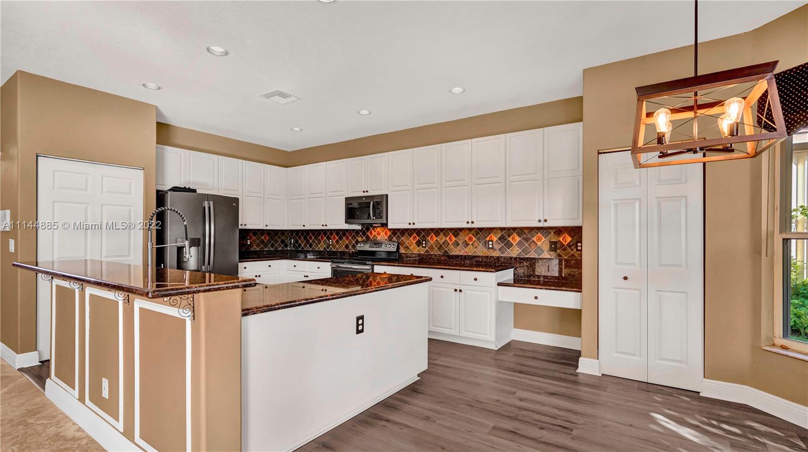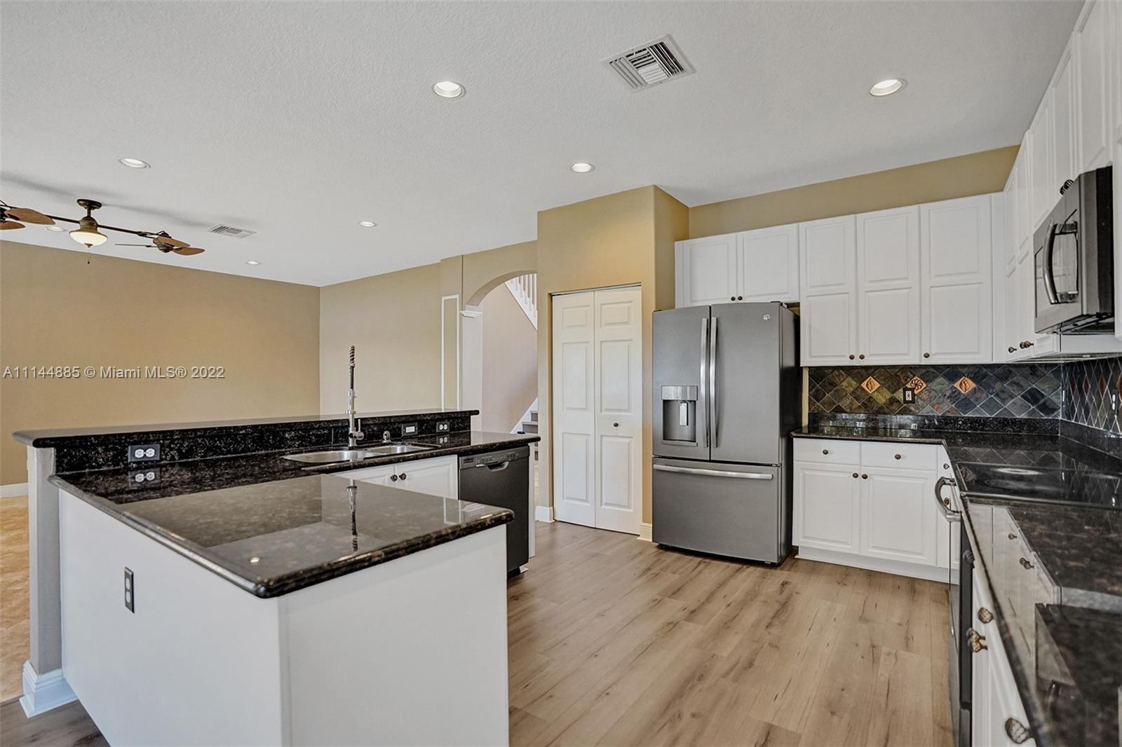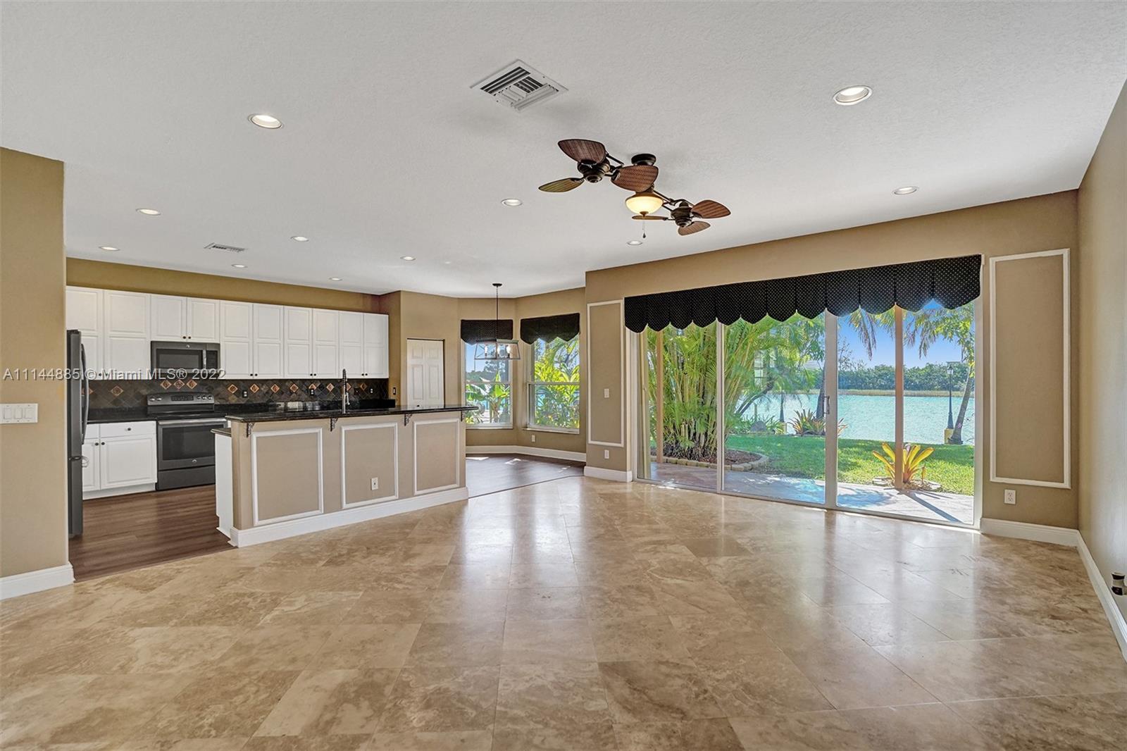 Spectacular Waterfront home that greets you with 23ft Vaulted Ceiling, Grand windows, Lighted Accent wall and Travertine floors! Beautifully upgraded to include fresh paint, Recessed lighting, Brand New Flooring, lighting fixtures, Ceiling fans, Washer/dryer and Water Heater! Includes large Loft and 1st floor Master bedroom. Every room except one, overlooks the lake! All bathrooms remodeled with Marble/Quartz countertops, Travertine/Porcelain tiles, Vessel sinks and Wood vanities. Entertain guests in the open living areas and spacious kitchen that features Slate appliances, Granite countertops, wood cabinets and Breakfast nook. Relax in your own tropical oasis, with picturesque lake views and sunsets from the covered patio or balcony. Do not miss the opportunity to own this stunning home!