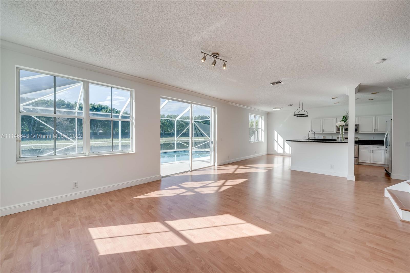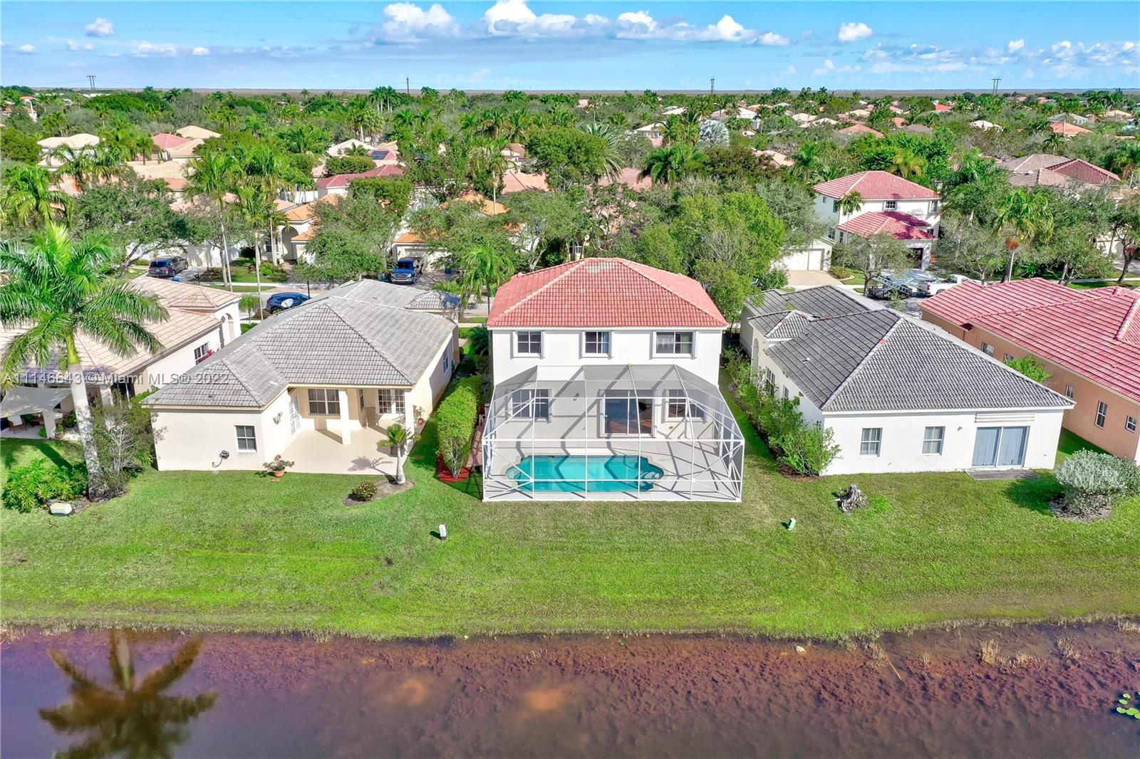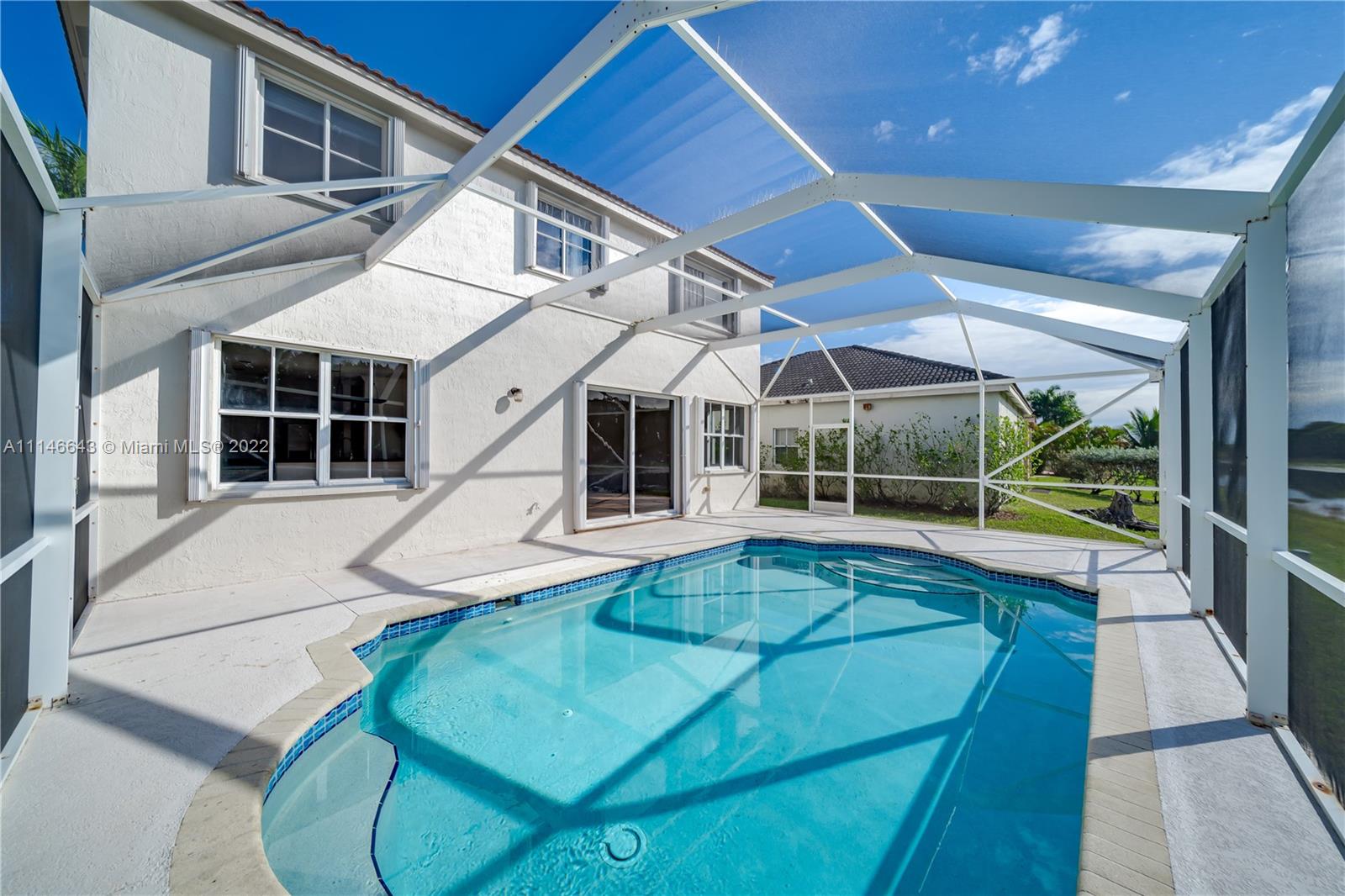 This house has it all! Beautiful lake front and pool. Nice front porch. 4 bedrooms plus an office or study area, 2 and 1/2 bathrooms. Separated living room and dining room. Nice and big breakfast area. Huge family room. Marble countertops. Master suite with double walking closets. His and hers vanitories, roman bath tub and separated glass enclosed shower. Accordion Shutters. Laminated wood floors. House full of light. Just painted inside and out. Gated Community with common areas, such as pool, basketball court, kids playground. Walking distance to top Elementary School Gator Run. A+ School district. Easy and fast access to highways. (measurements are approximate)