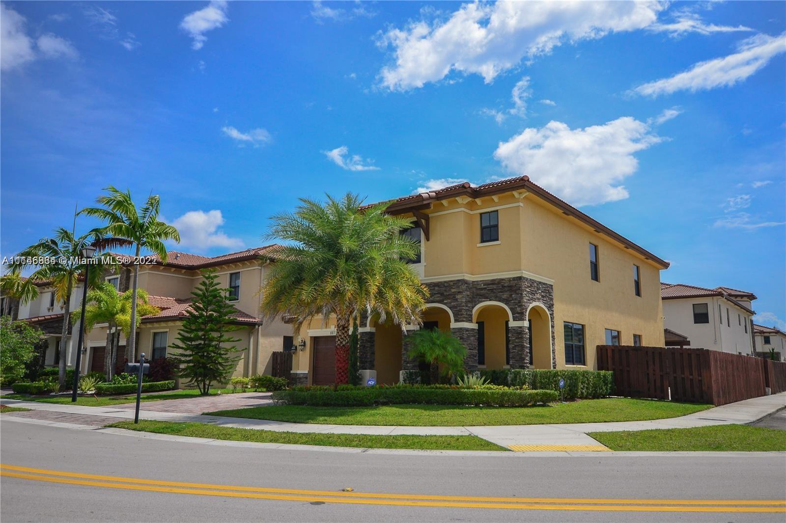 Corner lot single family home located in the prestigious gated community at Grand Bay Estates at Doral. European style Open & oversized kitchen integrating top of the stainless steel line appliances. Grand staircase leading to 2nd floor where you will find an expansive master suite with a huge walk-in closet & bath, & 3 additional rooms in which 2 share one bathroom and the other room has a private bathroom. This 4/4 baths, 2 story contemporary home features 3,128 SqFt of living area, located in a 5,566 Sq.Ft corner lot with direct lake views, & a spacious patio with room for pool or Jacuzzi. Amenities include 28k square-foot clubhouse, pools, tennis/basketball courts, gym & more! Close to great public & private schools, supermarkets, restaurants, & new Doral CityPlace shopping mall.