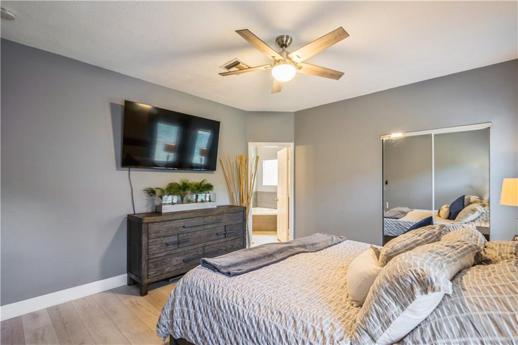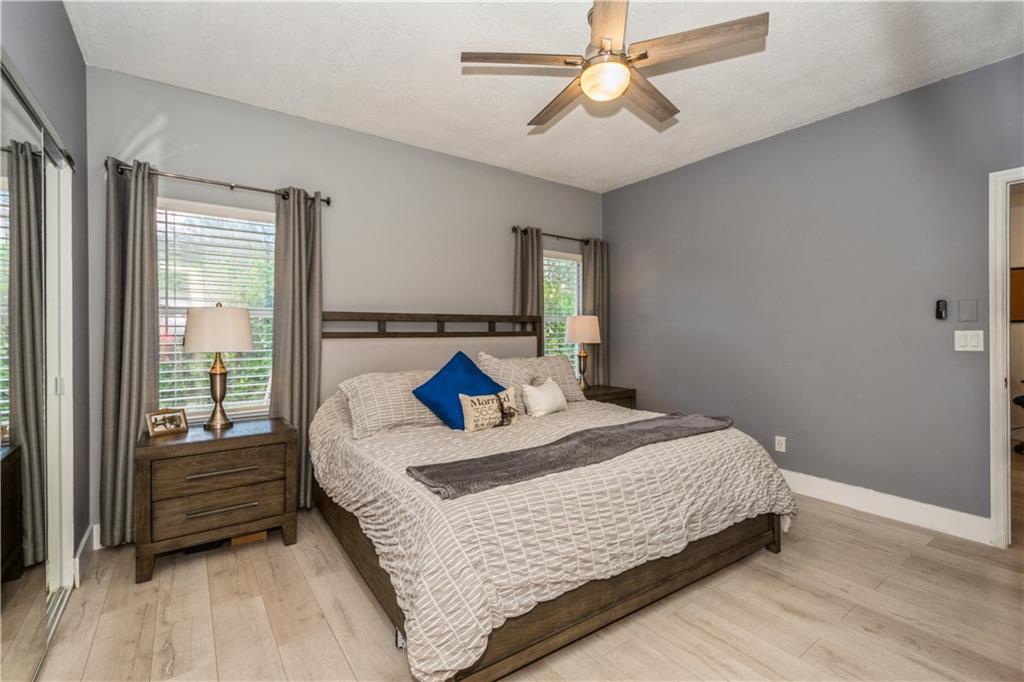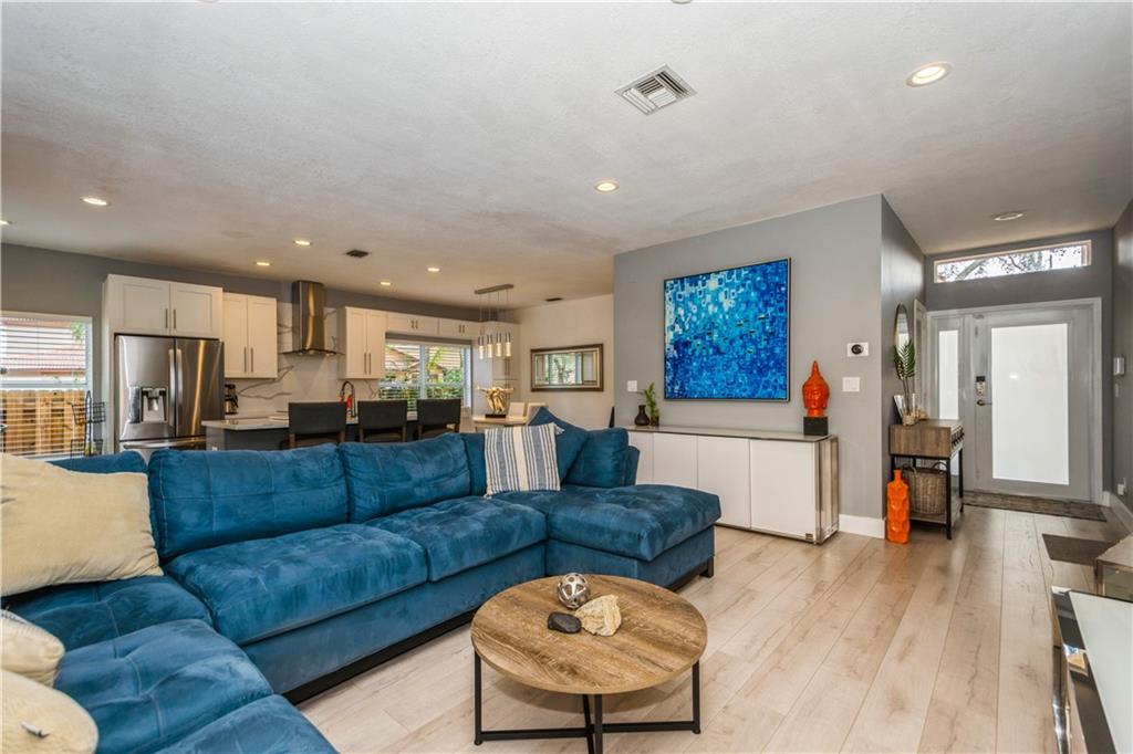 You don't see houses for sale in this neighborhood too often, and this one is beautiful. The sellers meticulously updated this 3-bedroom, 2-bath home with the latest, modern design features. The entire house has been updated. The custom-designed kitchen features solid wood cabinetry with soft-close doors, quartz countertops, stainless steel appliances, extractor range fan, and a central island with snack bar. Other features: den/office, laminate floors throughout, new air conditioner, new impact glass doors, exterior surveillance cameras, fenced yard with stone patio and fire pit, freshly painted inside and out, and low HOA dues. There's a lovely community pool and children's play area, too. This is close to everything--shopping, schools, parks, expressways. You will love this home!