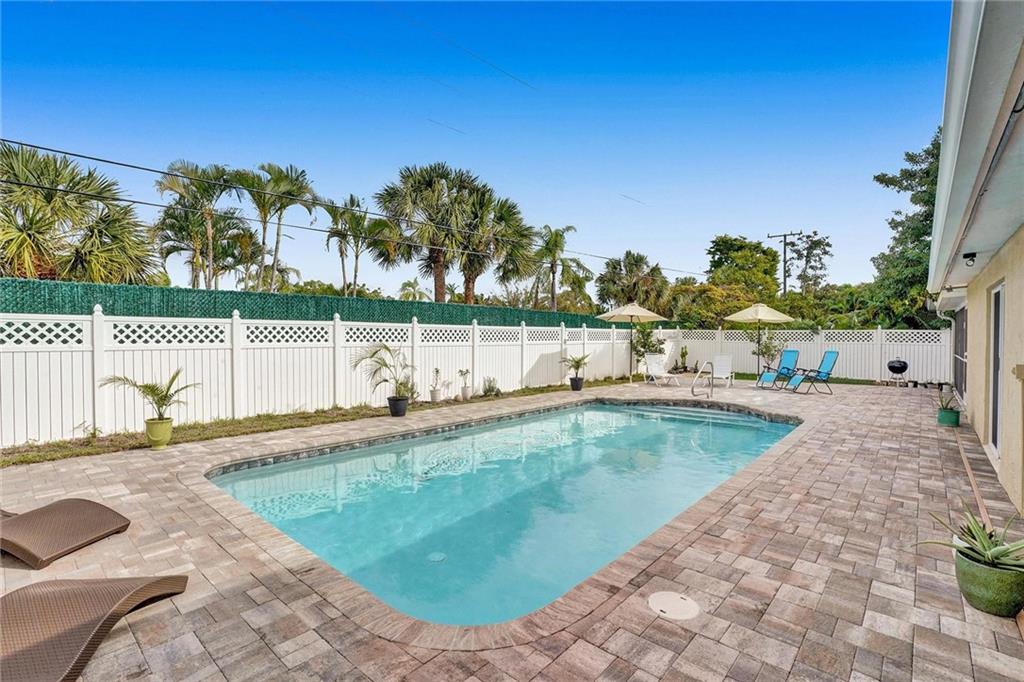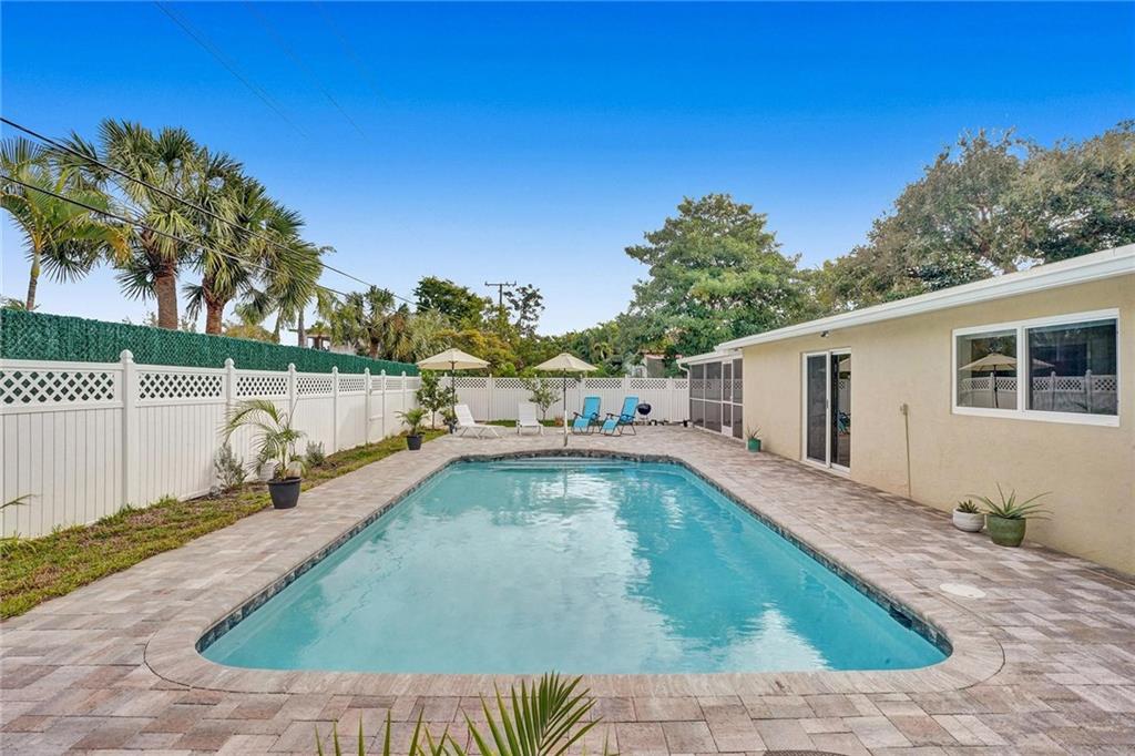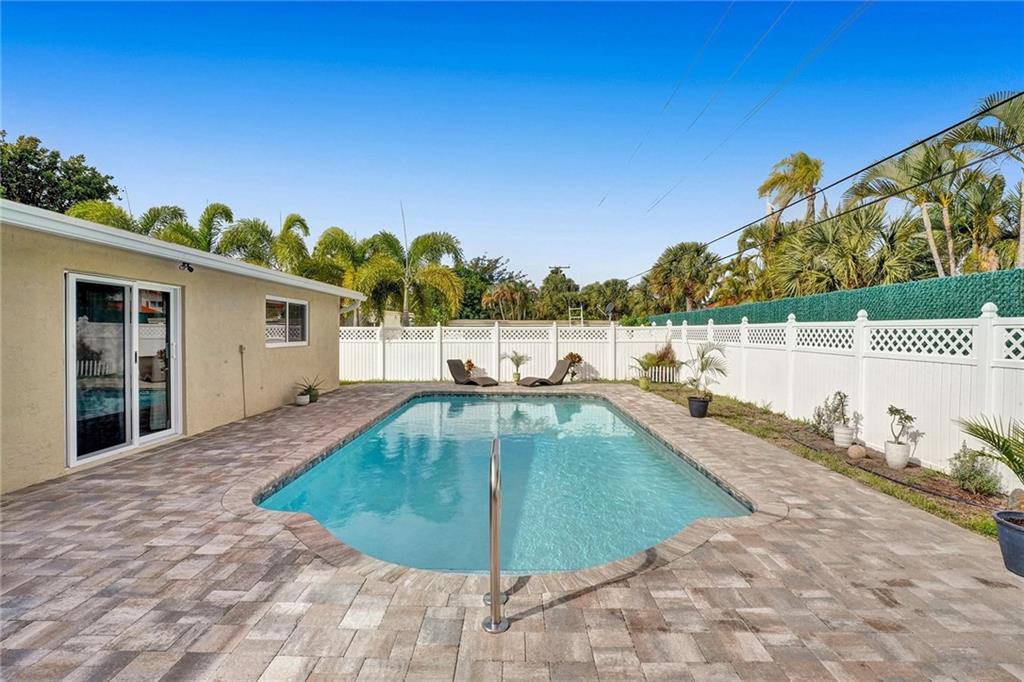 Pompano Shores Pool Home. 3/2 plus bonus room and screened in concrete foundation patio rarely available in this community. All new flooring in main living area and hall way out to kitchen and 3rd bedroom, original, well maintained terrazzo flooring in 2 of the bedrooms. New HVAC New electric panels, popcorn removed from ceilings. newly coated flat roof over screened enclosure patio. New Impact windows throughout. New pavers and diamond brite/pool, fully fenced yard.4 point inspection was done for new insurance. Great light in home. location is close to everything you would need and intracoastal is at the end of the street with benches and little green space to view the boaters or watch the Sunrise. Its a cutie!!!