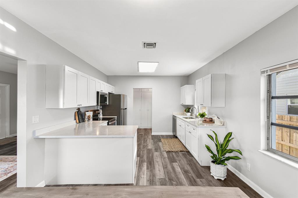 Pineapple Park Charmer! Roomy and bright 3BR/2BTH home is minutes from downtown West Palm Beach in a quiet neighborhood. Recently renovated throughout - new floors, kitchen cabinets, appliances, central AC, hot water heater, fresh paint inside and out and landscaping. Upon entering you are greeted with an open and welcoming living area adjacent to the large dining room and spacious open kitchen. As you walk down the hall towards the three bedrooms, you'll pass the laundry area with plenty of built-in storage closets. A large linen closet in the hall bathroom is large enough for all of your linens. The private covered patio is perfect for entertaining. A few short minutes from everything... walk to Grandview Public Market, Howard Park/Dog Park, and Armory Art Center.
