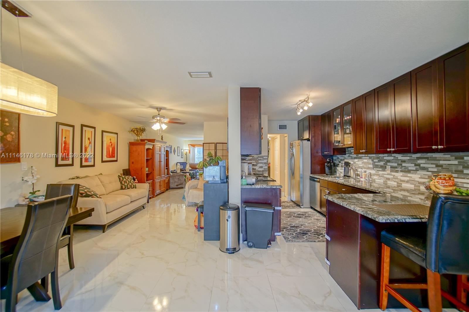 This beautiful, immaculate and updated 3/2.5 townhome is ready to go! Kitchen has dark WOOD CABINETS, GRANITE COUNTERS, STAINLESS STEEL APPLIANCES and full-sized washer and dryer. New porcelain MARBLE-LOOK TILE downstairs with wood laminate upstairs. UPDATED BATHS throughout. FULLY FENCED BACK PATIO AREA is great for relaxing and entertaining. IMPACT WINDOWS AND PATIO DOORS installed in 2018, and also has accordion shutters! TWO ASSIGNED PARKING SPACES right out front. ONLY SMALL PETS under 20 lbs. allowed. Shared COMMUNITY POOL, CLUBHOUSE AND TENNIS COURTS. Please follow attached offer guidelines. USE ALL ATTACHMENTS WHEN MAKING AN OFFER. **SEE BROKER'S REMARKS**