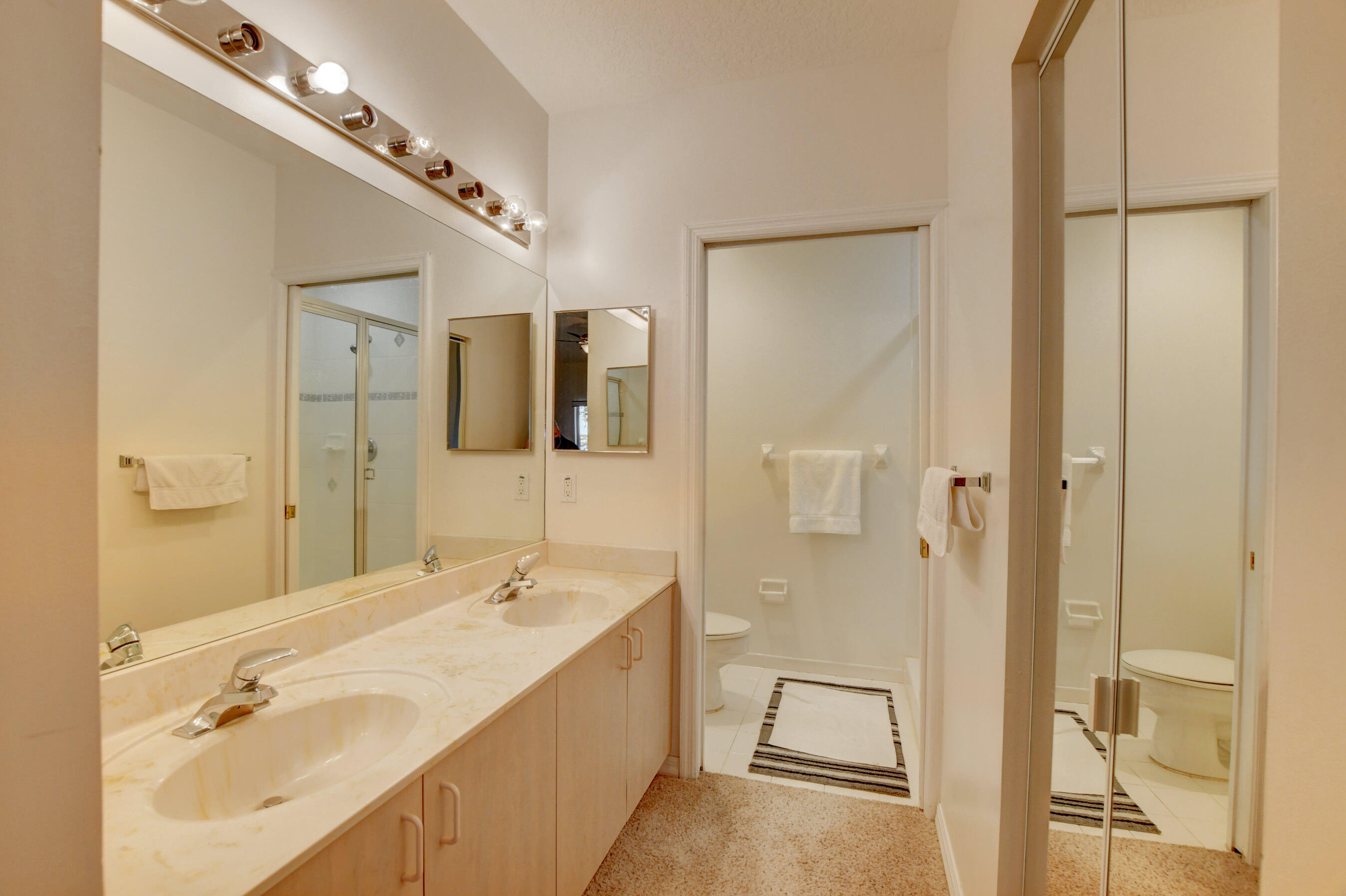 Beautiful 2 bedroom, 2-1/2 bathroom townhouse with covered patio downstairs and screened balcony upstairs overlooking lake. Updated kitchen with black high gloss cabinets, granite counters and black appliances. All tile downstairs and carpet on stairs and upstairs. Upstairs has two master suites. Las Flores has community pool and residents also have access to the Mission Bay Club that offers resort style amenities which include luxurious clubhouse, huge heated saltwater pool, spacious hot tub, sauna, steam room, men's and women's locker rooms, state of the art fitness center offering free fitness classes, a pool side pavilion, tennis programs at the tennis center, basketball, racquetball and volley ball courts. Close to shopping, restaurants, and major highways. A+ Schools.