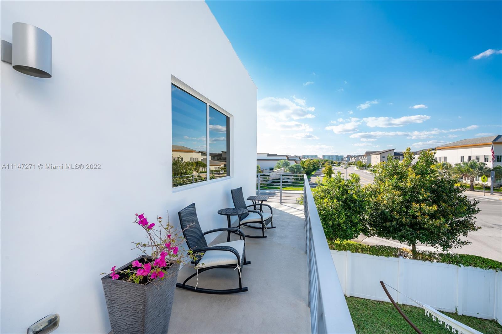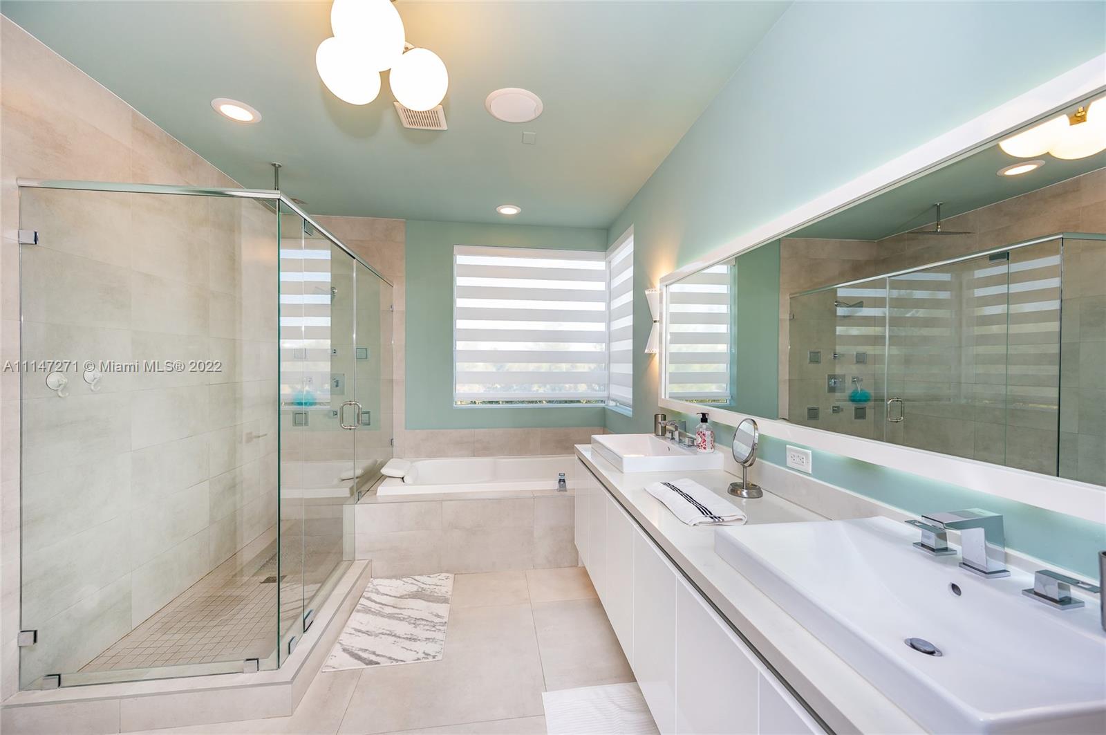 This is the perfect house you have been dreaming off! Corner lot in a cul-de-sac street, oversized lot with enough space for pool and summer kitchen. This home was designed with the most exquisite touches such as beautiful art wall paper, frameless shower doors, Spa-type showers, custom made kitchen cabinets, best sound system (indoor and outdoor) Bosch with mobile speakers, Bosch appliances including wine cooler. There is a bedroom with full bathroom downstairs (cabana bath) and master bedroom with huge walking closet and private lanai upstairs. Porcelain 30" x 30" floors throughout. Ideal house for entertaing family and friends featuring a huge family - game room upstairs with access to the lanai and an open floor plan downstairs joining family room, dining room, and kitchen.