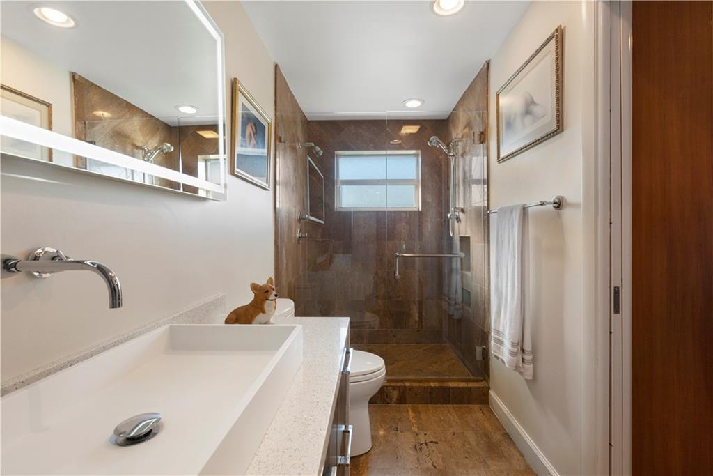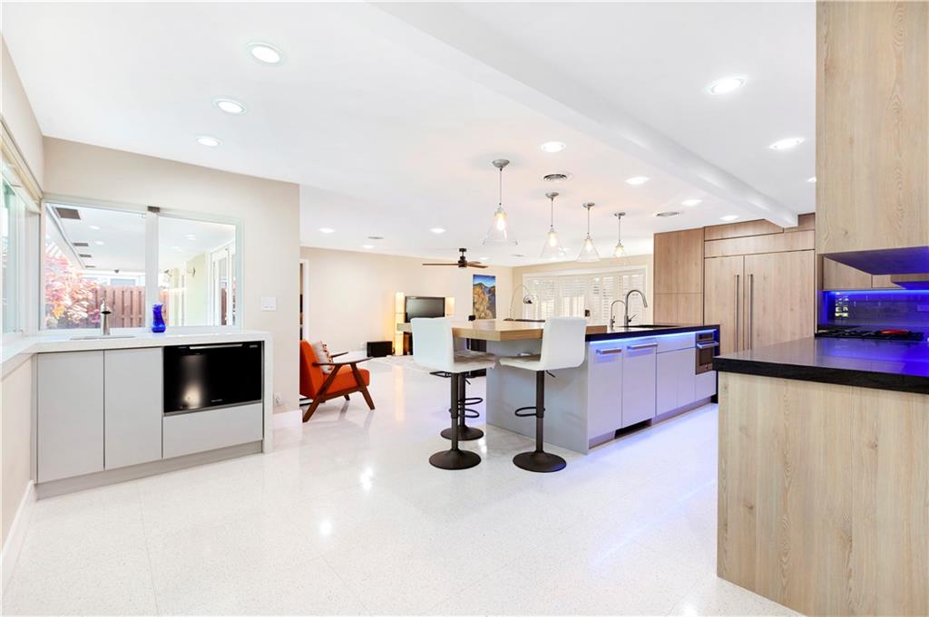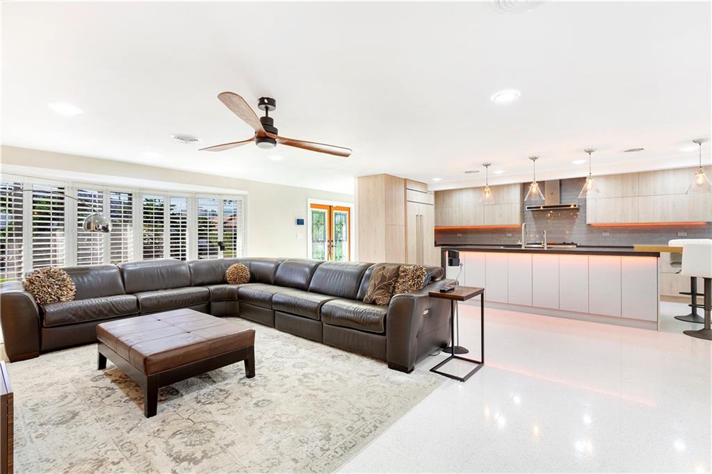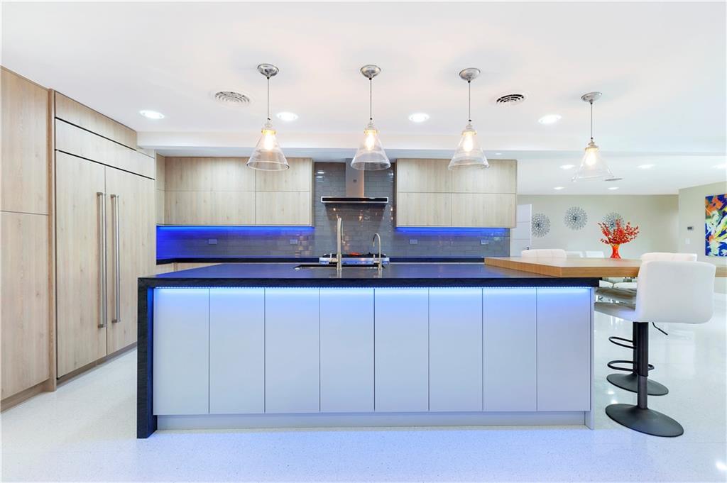 Updated & inspired by contemporary design, sophisticated features & modern technology. The bright open floor plan is ideal for todays lifestyle integrating the great rm, dining area, kitchen & family rm. The center of this home is the one-of-a-kind culinary kitchen with multi colored accent lighting. Upgraded appliances include Bertazzoni, Sub Zero, Bosch & Fisher Paykel. A 6 burner dual fuel gas oven, electric appliance garage & oversized center island provide the ultimate in entertaining. The primary suite offers a large walk-in closet, lavish bath & access to the backyard & pool. The Jr. suite boasts a kitchenette & private exterior entry. The solar heated salt water chlorinated pool is framed by a large patio & lush landscaping. Mins to shopping restaurants & the beach. Sq ft from BCPA