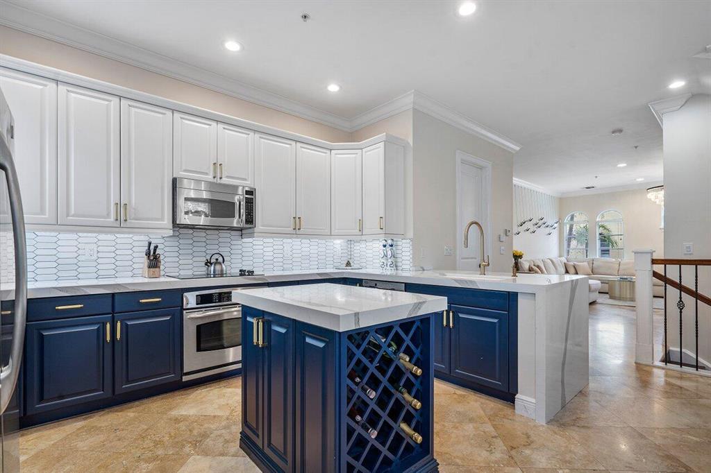Your home has finally listed! This gorgeous townhome, in Royal Poinciana, has been customized to perfection. The home offers 3 bedrooms, 3.5 bathrooms, in a spacious 2,142 SQFT. Upon entering the home, you are greeted with a foyer leading to the first private bedroom & bathroom, and 2 car garage. Upstairs are the living & dining rooms, half bath, with updated kitchen feat. Quartz counters, GE stainless steel appliances, & a kitchen island w. wine rack. The home features volume ceilings, Saturnia marble floors, luxury vinyl on the stairs & bedrooms, marble counters in bathrooms, & crown molding throughout. On the 3rd floor is the main bedroom suite, with oversized custom walk in closet, & bathroom, as well as the third bedroom & bathroom, and laundry.