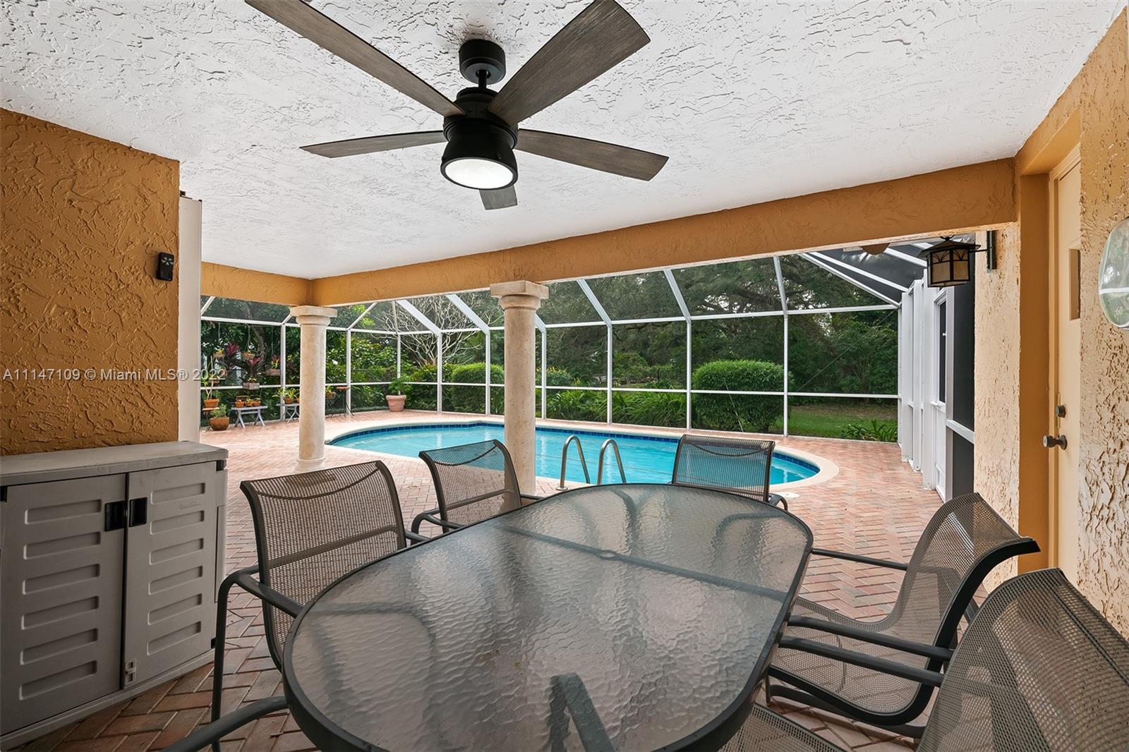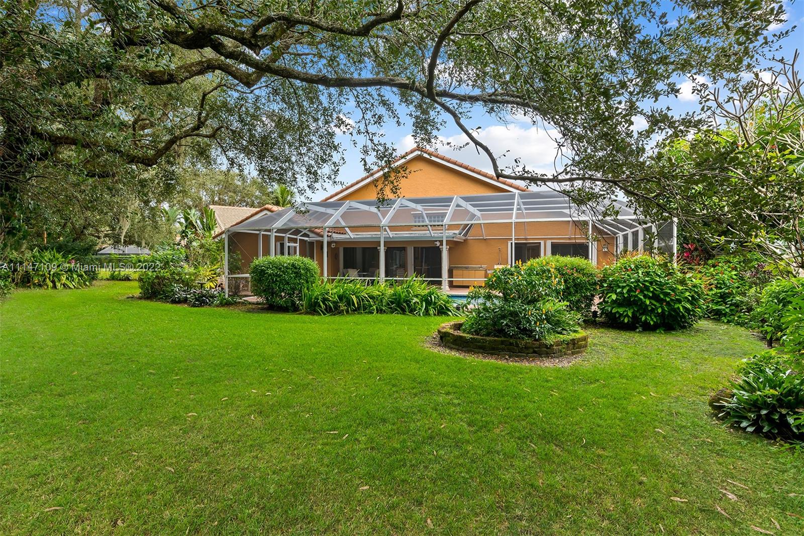 This tranquil and secluded 4 bed 3 bath home is a literal sanctuary, dominated by live oaks & slash pines creating a private oasis on over a quarter acre! Enjoy a split floor plan with volume ceilings & space for entertaining in the formal living room or family room. The master bed includes a marble encased bathroom & spa, perfectly situated to soak among bubbles with a peaceful view of the forest. The kitchen is modern & efficient with granite countertops & SS appliances. In addition, the guest bed has a cabana bath for your convenience. The home includes impact windows & accordion shutters throughout. Walk outside to a lushly landscaped backyard with trails that lead to Tree Tops Park, Pine Island playground & 174 miles of interconnected trails for biking, hiking & horseback riding.