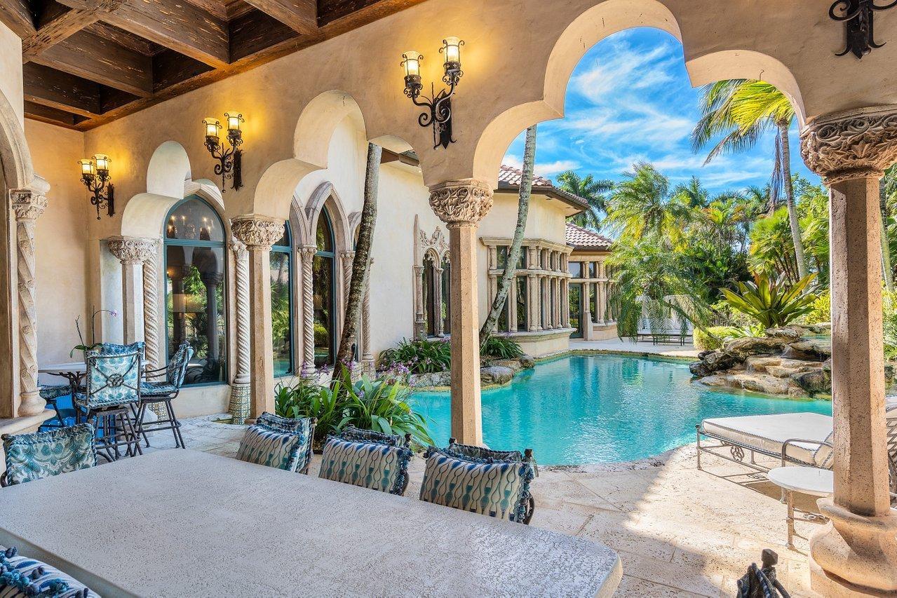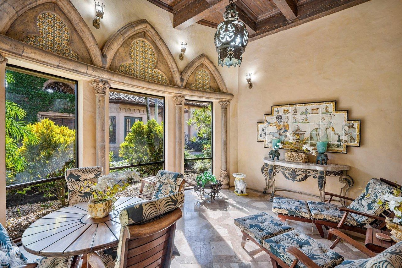 TRANSFERABLE GOLF MEMBERSHIP ON THIS DOUBLE LOT OPPORTUNITY! Exceptional Sprawling Single-Story Estate on a DOUBLE LOT sited on over 2/3 ACRE in the coveted Coventry subdivision within Woodfield Country Club features over 8,200 sq/ft. Boasting 5 gracious bedroom suites, 5 beautifully appointed full baths & 2 powder baths, sophisticated library, state-of-the-art Movie Theatre w/ a sensational concession stand & ticket counter, this exquisite Estate exudes an aura of genuine antiquity with architectural fittings specially curated from all over the world. Exterior spaces are transformed into a verdant landscape w/ a myriad of tropical plantings, winding brick paths and large open spaces. TRANSFERABLE GOLF MEMBERSHIP ON THIS DOUBLE LOT! By Appointment Only.