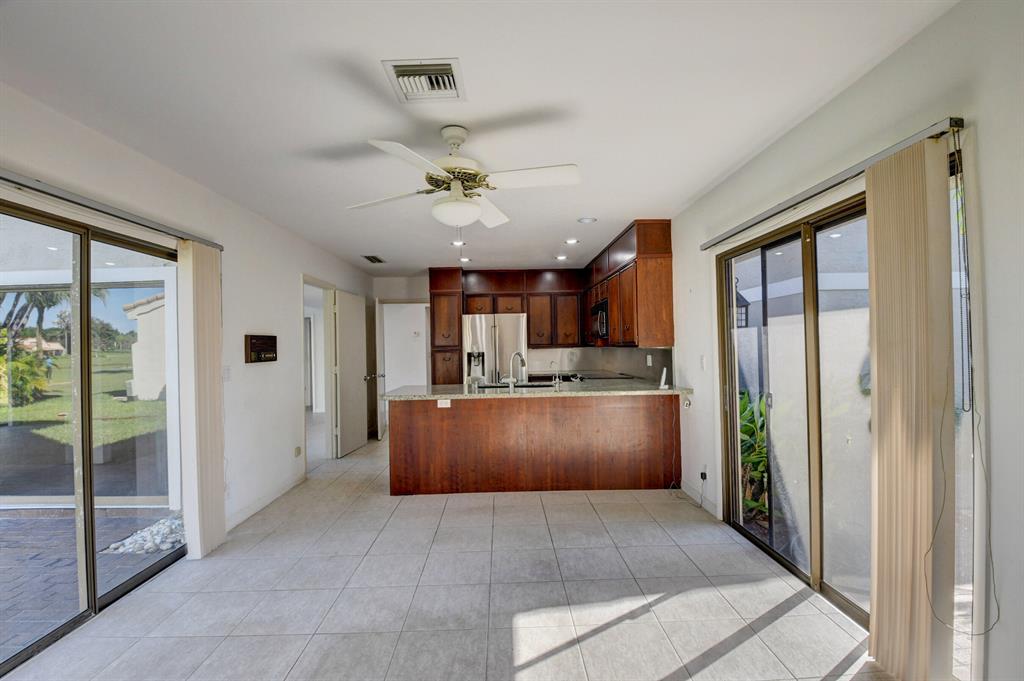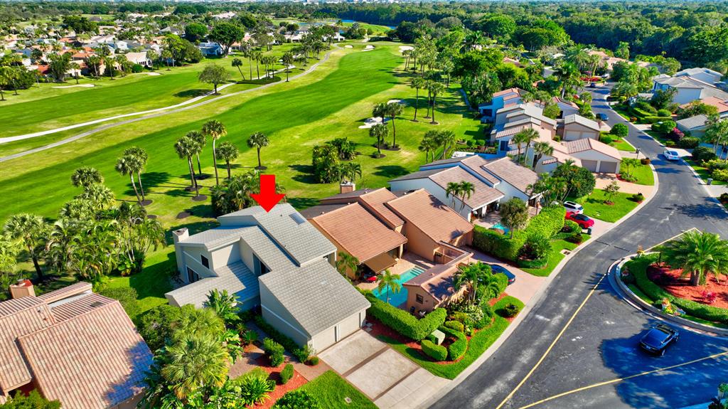 Cedarwood free standing two story patio home on the golf course. Great lot with spacious front, side and back yard areas. Master bedroom on main level with 2 bedrooms plus an open loft/den area on the second level. Separate living room with fire place and dining room area. Updated kitchen and open to the family room. Separate utility room. Room to add a pool either in the front or back side area of the home if desired. Full two car garage. Pet friendly community. Close to the Boca West Club facilities. Club membership required.