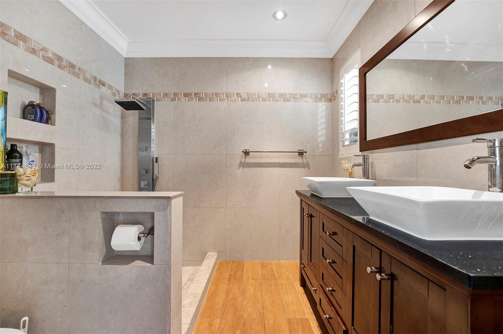 Superb Hollywood Hills location on large lot... HIGHLY DESIRED, UPDATED 4 bedrooms, 2 baths, pool home w/ OVER 2,300 sq ft living space! Features wood laminate mostly throughout w/ some Mediterranean tile. Galley style kitchen w/ GRANITE countertops & S.S. appliances, overlooking large entertainment room. Master bedroom offers walk-in closet & updated dual sink bath. Laundry / utility room. Updated cabana bath to patio. Exceptionally private backyard features covered patio, BEAUTIFUL POOL, & more yard space than one can ask for! Features NEW HURRICANE WINDOWS, 4 yr old A/C, & 2006 barrel tile roof. Just one block east of Nativity & Chaminade private schools. MUST SEE IN PERSON TO APPRECIATE!