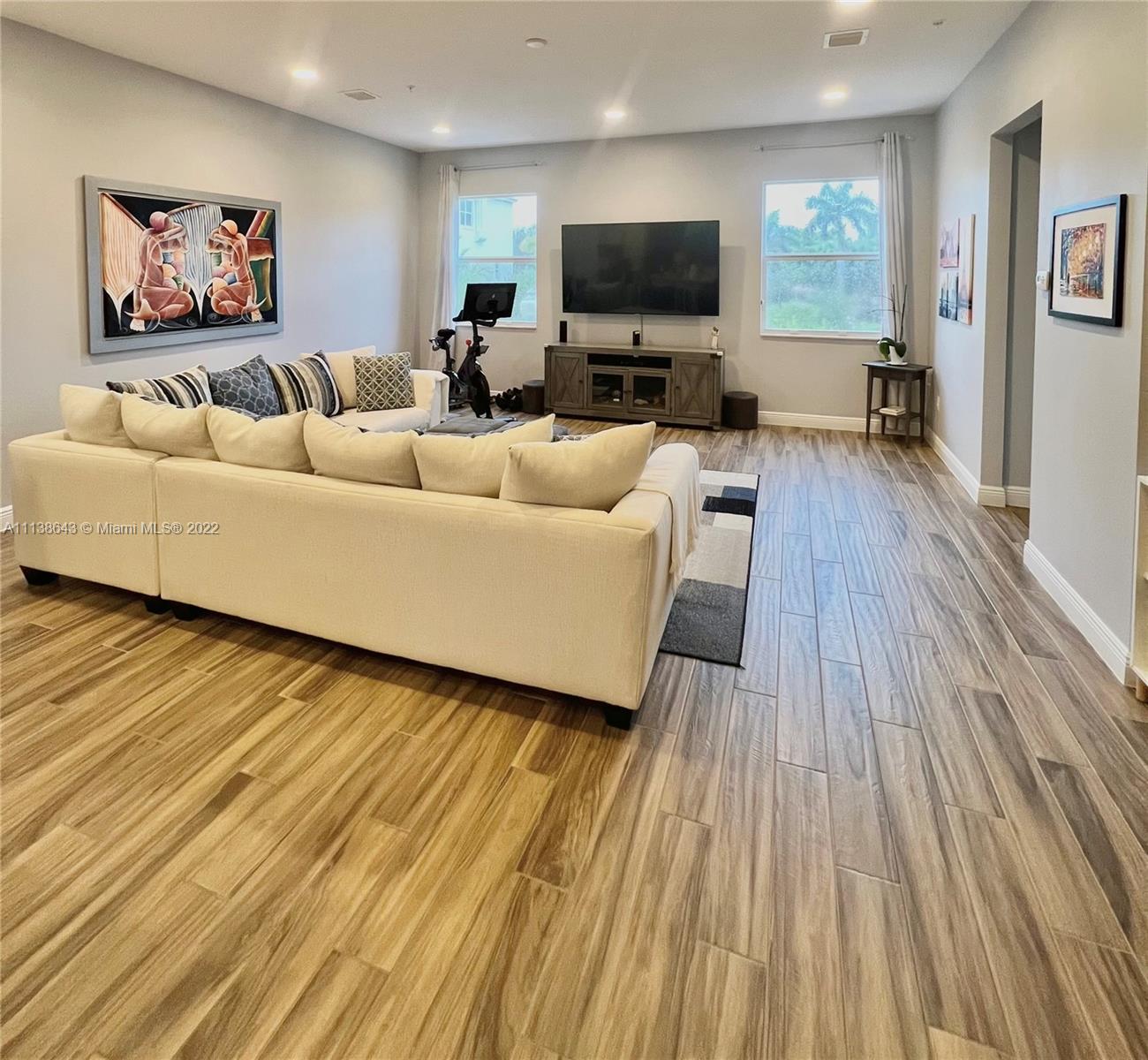 Beautiful corner-unit 4 beds/3.5 baths Pearl Model townhome overlooking a courtyard. Largest model in the community w/3,000+ square feet and 10 ft ceilings on every level. Built in 2018, the home has impact windows & doors, fire sprinkler system, security system, tons of closet space, and a 2-car garage with epoxy flooring. 1st floor living room w/ kitchenette, bedroom and full bathroom. Perfect for multigenerational living, kids play area, or dedicated office space. 2nd floor is completely open concept main living area w/upgraded kitchen and appliances. 3rd floor has 3 bedrooms, 2 bathrooms, and full size laundry room. Upscale gated community w/ fitness center, heated pool, and jacuzzi. Ultra-convenient location within walking distance to shopping, restaurants, schools and CB Smith park.