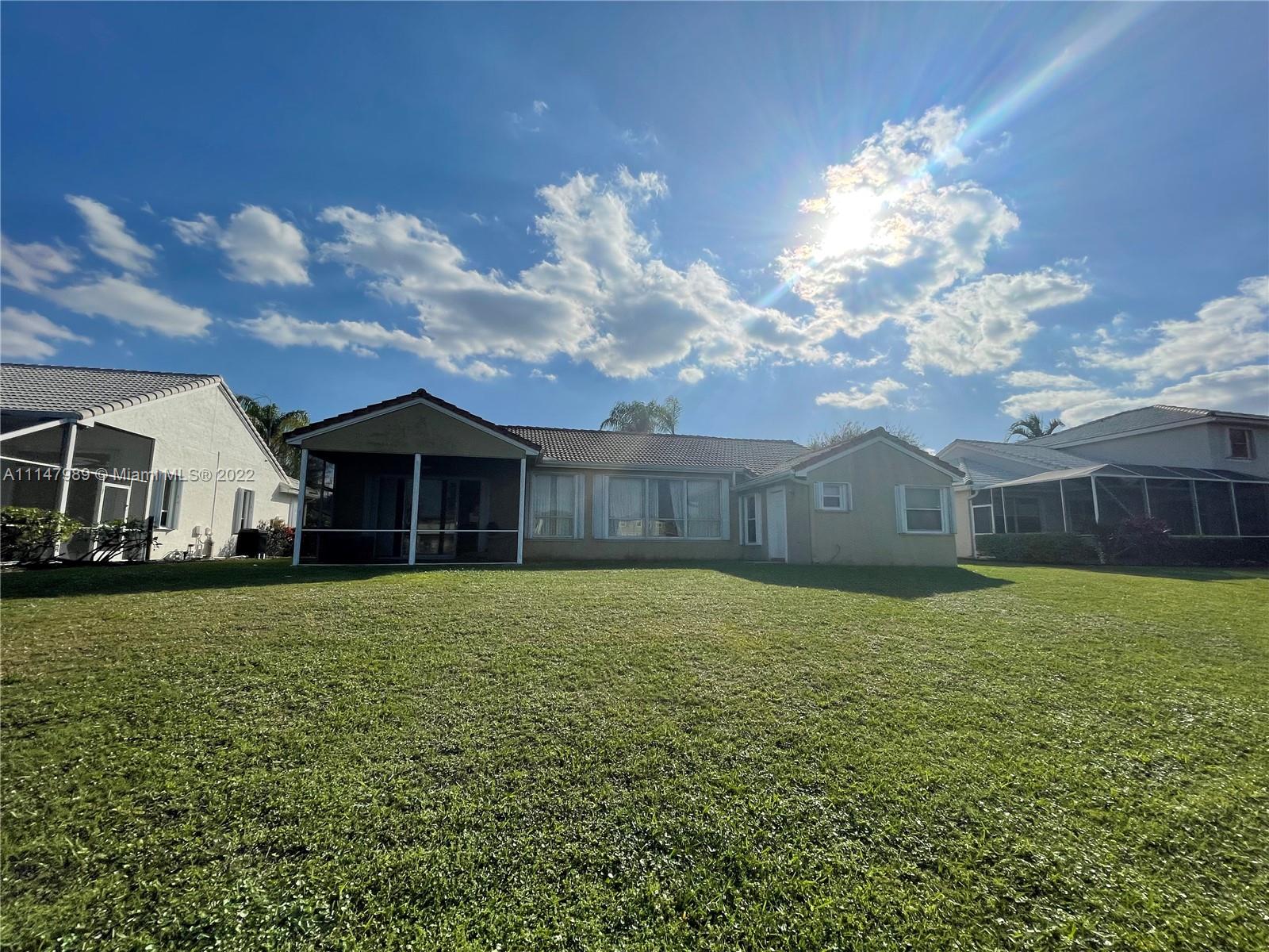 Lakefront home in Boca Landings! As you enter the property you'll be greeted by volume ceilings and large windows with a beautiful lake view. As you walk past the foyer to the right you'll step into the kitchen that features stainless steel appliances, white cabinetry and overlooks the family room. Sliding doors in the family room lead to the screened porch where you can enjoy your morning coffee or gatherings while gazing at the lake. Additional features include spacious formal living/dining room, tile floors, laminate wood flooring in the bedrooms, accordion shutters, 2015 a/c unit, spacious walk-in closets, two car garage with motorized door, paved driveway and more. Resort like amenities include pool, kids pool, playground, onsite security, basketball, tennis & pickleball court.