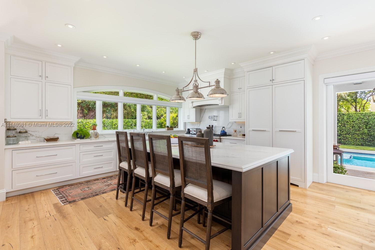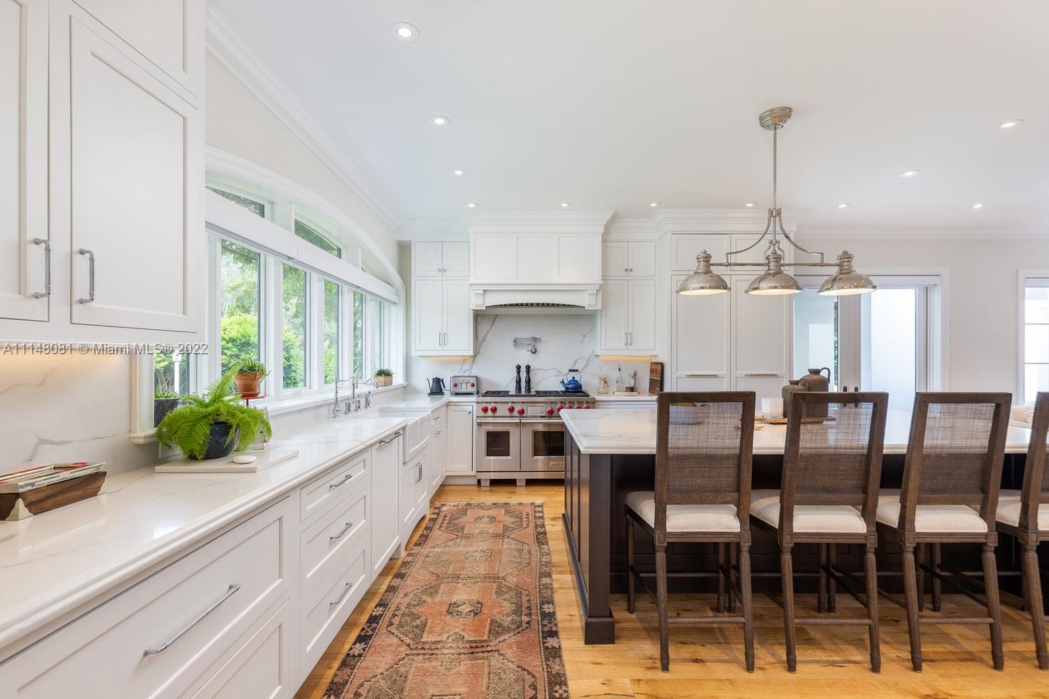This magnificent Old Spanish gem was completely renovated in 2017. With exquisite architectural details and features that include all hurricane-resistant Pella windows, all mahogany wood interior doors, a custom-designed 500 bottle wine cellar with natural brickwork, hardwood floors throughout, stunning gourmet kitchen with Subzero, Wolf and Bosch appliances, and marble countertops. Masterful custom millwork throughout the home that includes all baseboards, crown moldings, trims, dressing rooms, closets, and more. LED lighting throughout, Savant home automation system that controls all window treatments, security system which includes 12 cameras, all lights, all audiovisual systems.