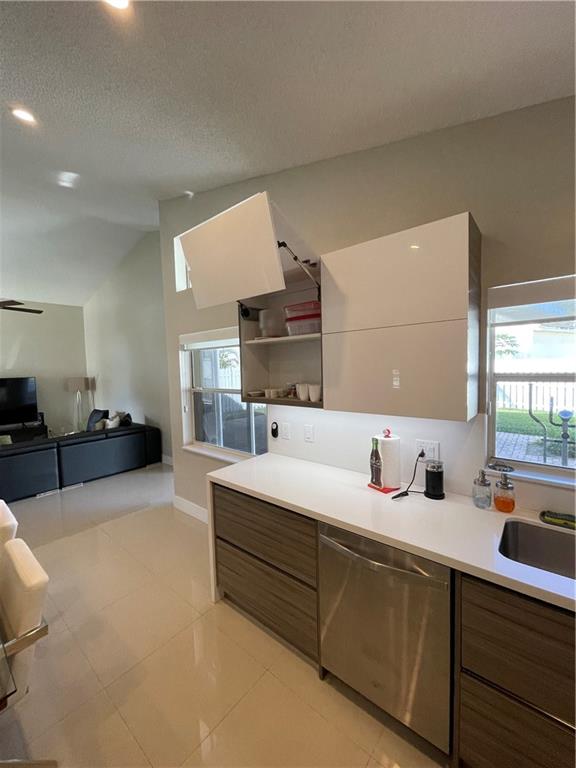 Completely renovated 3 bedroom and 2 bathrooms home located in a cul-de-sac at sought after The Lakes community in Weston. Elegant 24x24 porcelain tile floors throughout the house. Hurricane proof accordion shutters, front door and garage door. Pride of ownership and attention to detail in all the renovations. Modern Open-concept Kitchen has new Blum cabinets, Silestone Countertops, and stainless-steel appliances. Backyard perfect for entertainment with pavers area. Both bathrooms fully renovated, with elegant tiles in showers and Silestone countertops. Fans in bedrooms, living area and outdoor area. Hunter Douglas curtains and Blackout shades. 2-car garage has an extra fridge. A+ Schools in this gated community that features a soccer field, community pool, playground, and jogging paths.