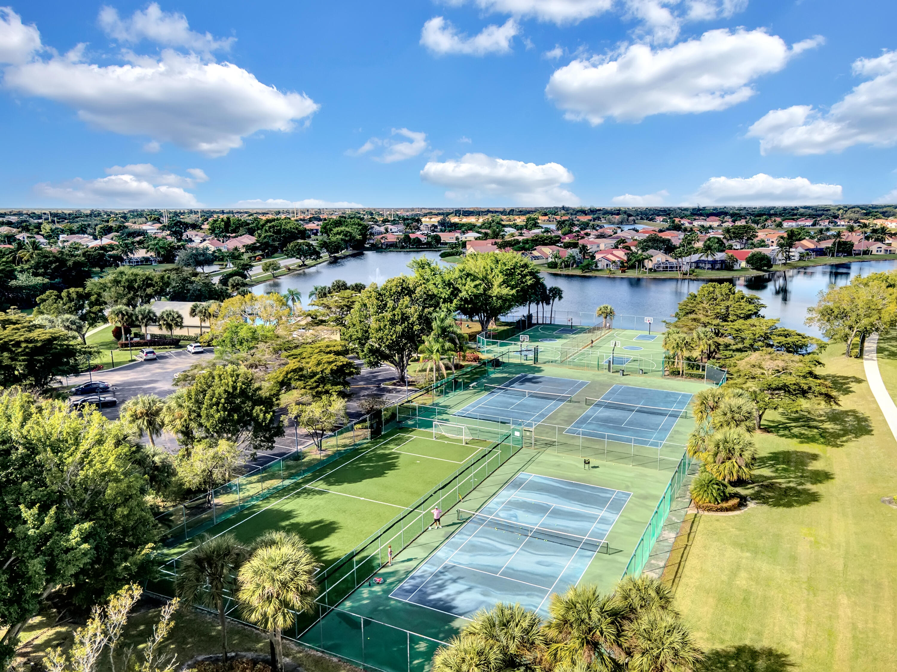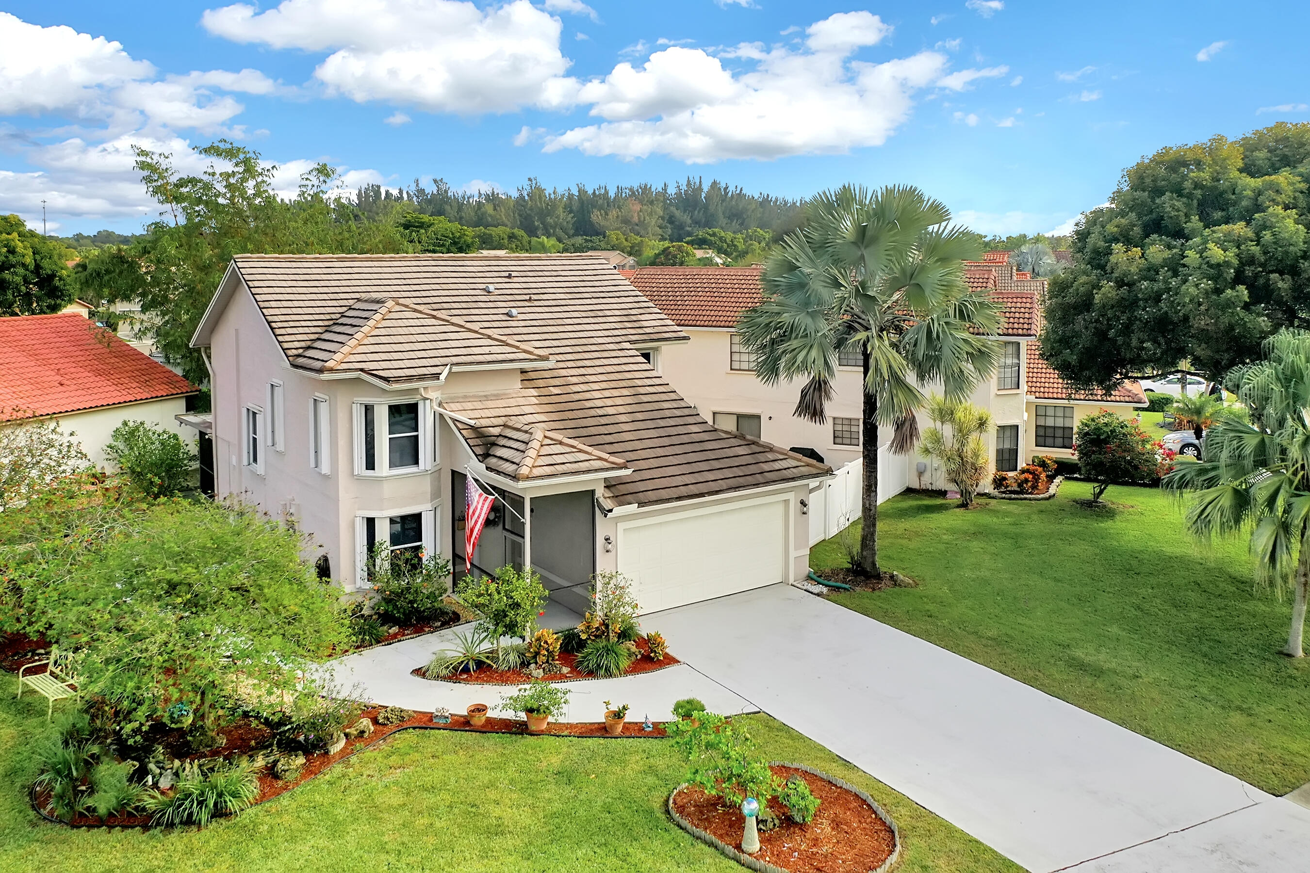 Hot property with huge pie lot on a bend in the sought after Lakes At Boca Raton. This home offers 4 bedrooms and 2.5 baths. This home has been completely renovated is already handicap accessible. The large Master bedroom is on the first floor, with French doors opening to a lovely screened patio. Kitchen has a pass-through window to the patio as well as French doors and stainless steel appliances. Special features this home has to offer are a built-in generator with a buried 500-gallon propane tank that's connected to the kitchen's range. Garage is plumbed for washer and dryer. Community features a Jr Olympic Heated pool for winter, soccer, tennis & basketball.