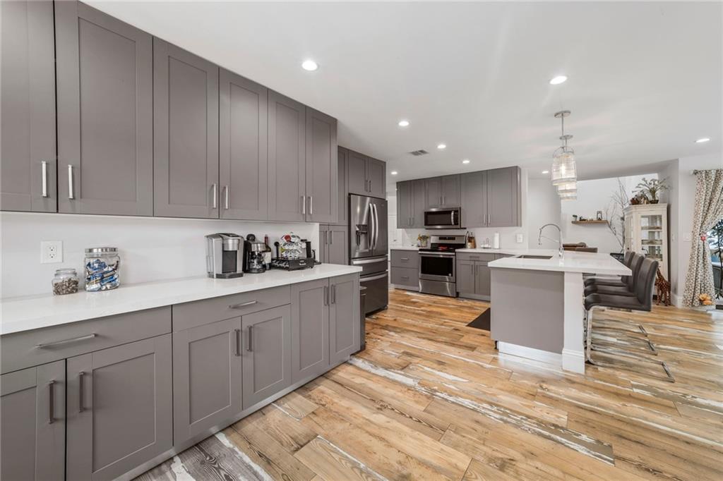 Come see this two-story beauty in Cooper City! Enjoy a completely remodeled home with impact windows throughout. Newer A/C units. Top of the line modern kitchen with huge eat at quartz countertop. Enjoy extra cabinets and countertops eat-in kitchen overlooking the pool and water. Wood tile floors and new appliances including washer/dryer. New customized staircase leading to the top floor with 3 bedrooms and 2 baths including the master bedroom. Enjoy the convenience of one bedroom and bathroom downstairs. The utility room is under air. Wide-open floorplan with high ceilings! Light and bright for all buyers. New garage hurricane-rated door. New screened-in pool area with covered patio to enjoy the breeze and view of the pool and water.