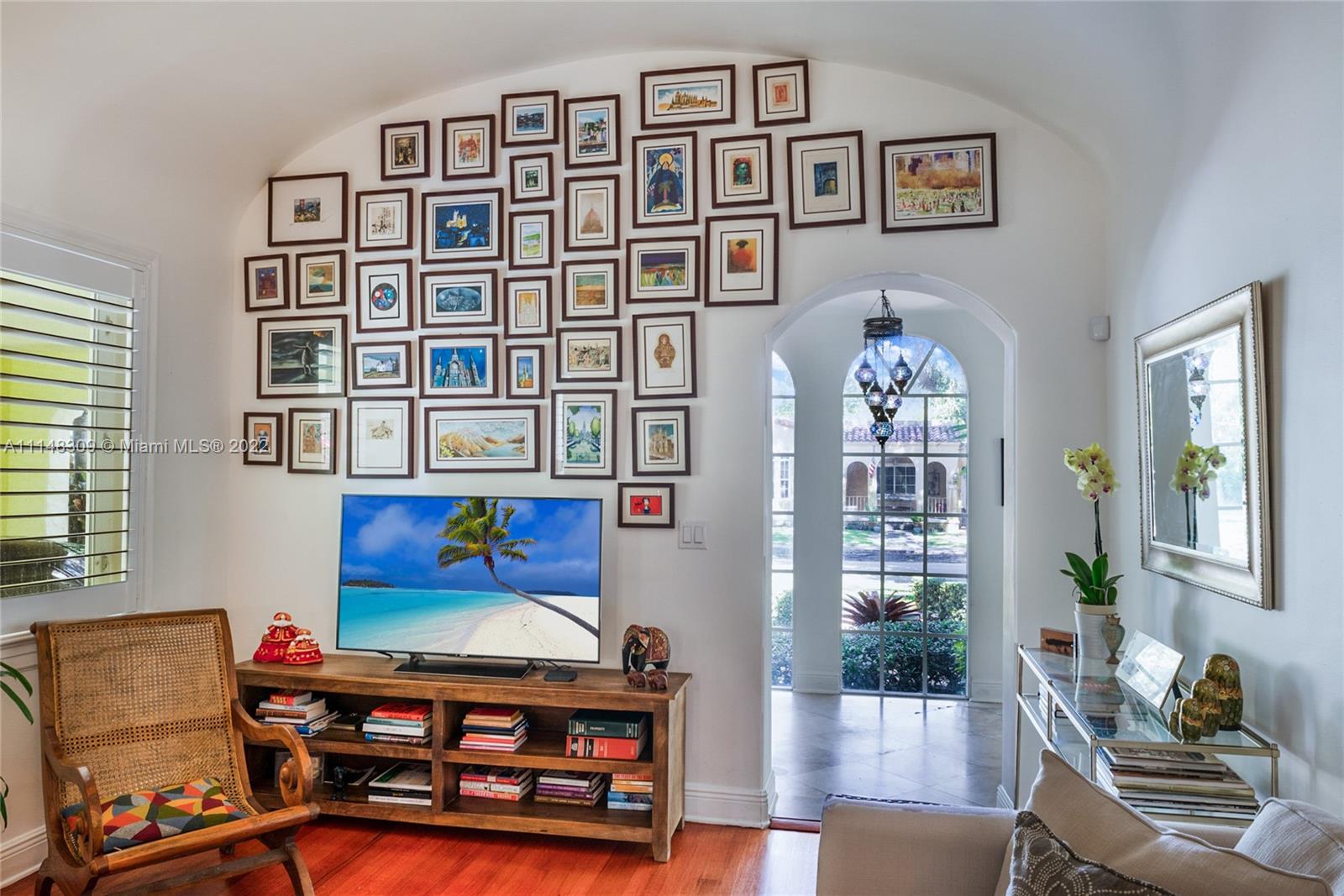 Soul (noun): an emotional or intellectual energy or intensity, especially as revealed in a work of art or an artistic performance. Welcome to 704 Navarre—a home with Soul. The residence, offering a comforting vibe, embodies architectural elements of a bygone era. It enjoys tall curved ceilings, arched windows (all are impact), restored hardwood floors, wood-burning fireplace, wood shutters, Old Chicago brick patios and numerous textural details. The 2/2 main home features extra large bedrooms and baths while the 1/1 casita is accessed via the heavenly loggia. Its refreshing and verdant patio adds a whole new dimension to this home. Location: just a 3-block stroll to the CG Country Club + Golf Course/Tennis Courts and a quick bike ride to downtown Coral Gables. It doesn’t get any better…