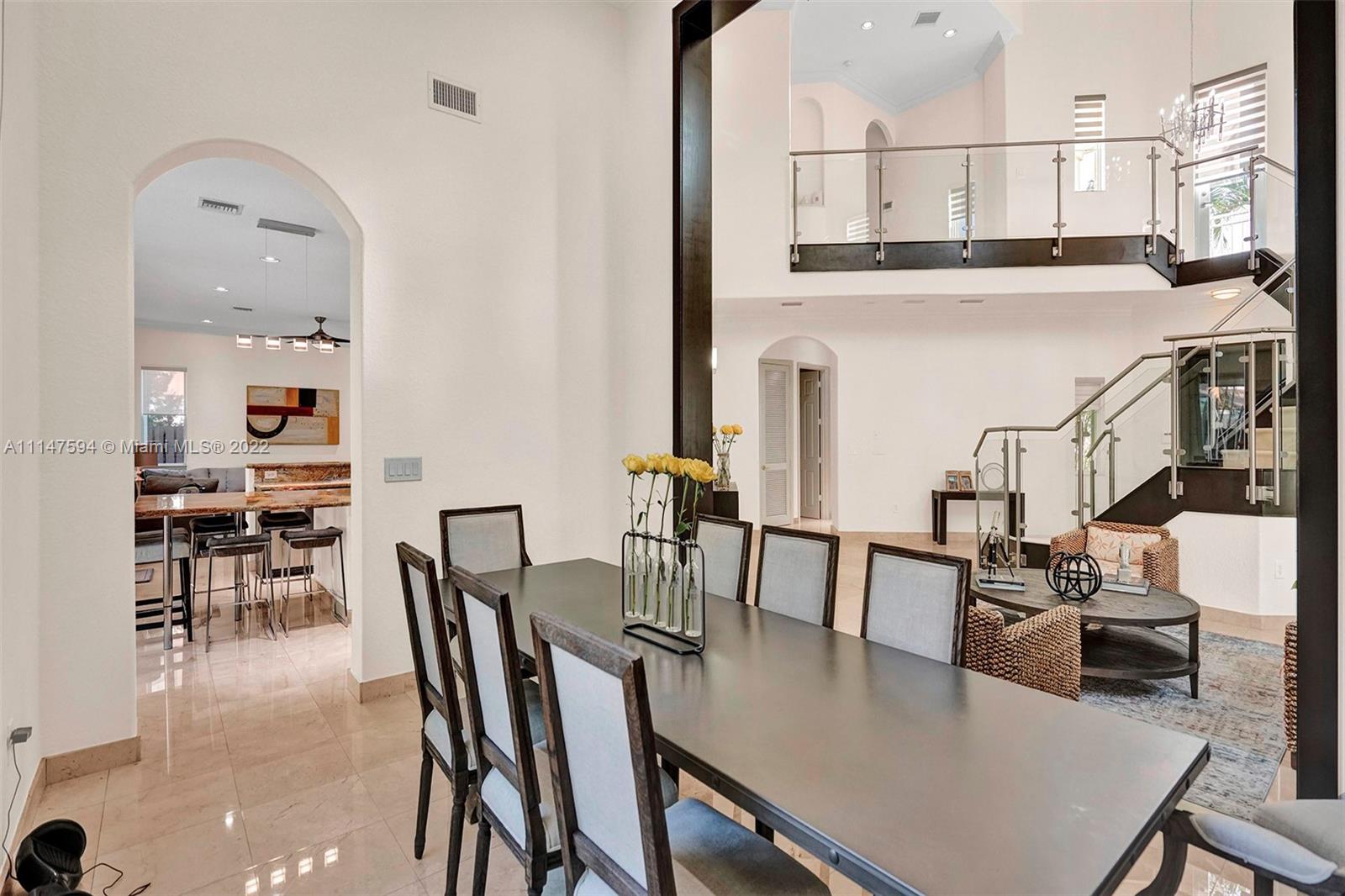 Welcome to your dream home., HUGE and BEAUTIFUL. 6 bedrooms and 4 bathrooms. It features 2 bedrooms on the first floor with 2 full baths, big laundry room and spacious walking closet. Marble on the first floor and wood porcelain on the second floor. Impact-resistant windows and doors. Double garage with capacity for three more cars on the driveway. Very spacious and bright see this house and love it! Enjoy the unique resort lifestyle of Doral Isles. Wonderful clubhouse with all amenities a family needs. Gym, sauna, spectacular pools, volleyball court, basketball court, soccer field, and tennis courts. This oasis is nested in the heart of the City of Doral minutes away from the most prestigious golf courses in South Florida Trump national Doral. This is a must see!