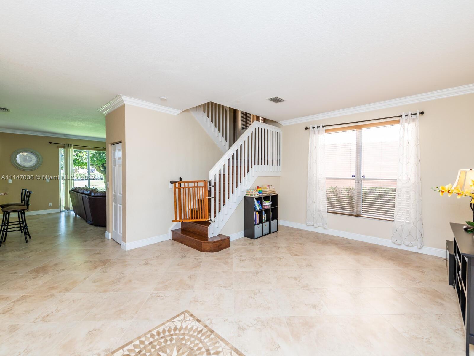 Come see this gorgeous home in West Miramar in the Silver Shores Gated community. Home features 4 Bedrooms, 2.5 Bathrooms with spacious backyard overlooking the lake. Backyard is fenced and has artificial turf for kids to play. Upstairs is updated with beautiful laminate floors in all 4 Bedrooms and bathrooms are nicely renovated with glass sinks. There are two walk-in closets for the Master bedroom. First floor has ceramic floors, updated 1/2 Bathroom and renovated Kitchen with 2 Walk in pantries. Accordion Shutters on all the upstairs windows. A/C 2015 with new motor and UV Light to prevent mold. Water Heater 2012. Community has Club House, Pool and playground. Property is just minutes away from Stores, Parks, schools and Shopping Center. Showings start 1/22/22 at Open House.