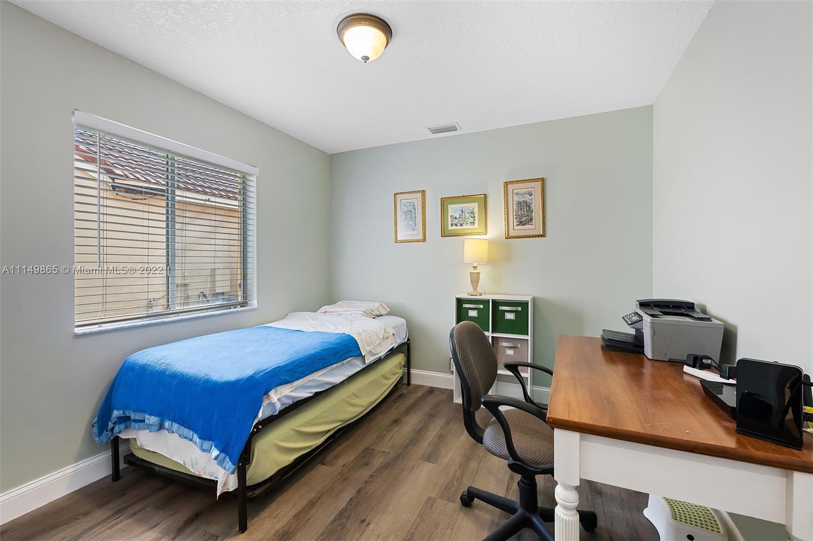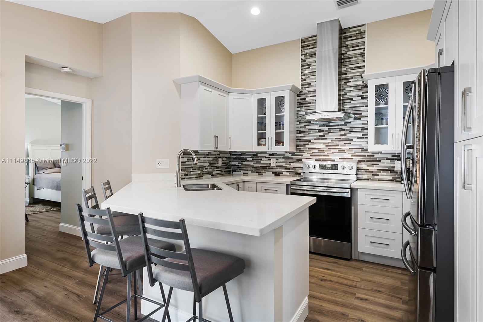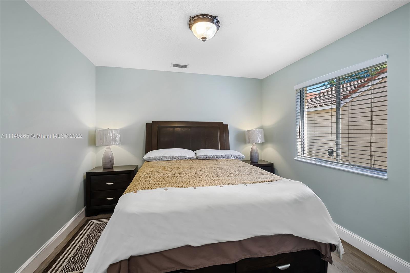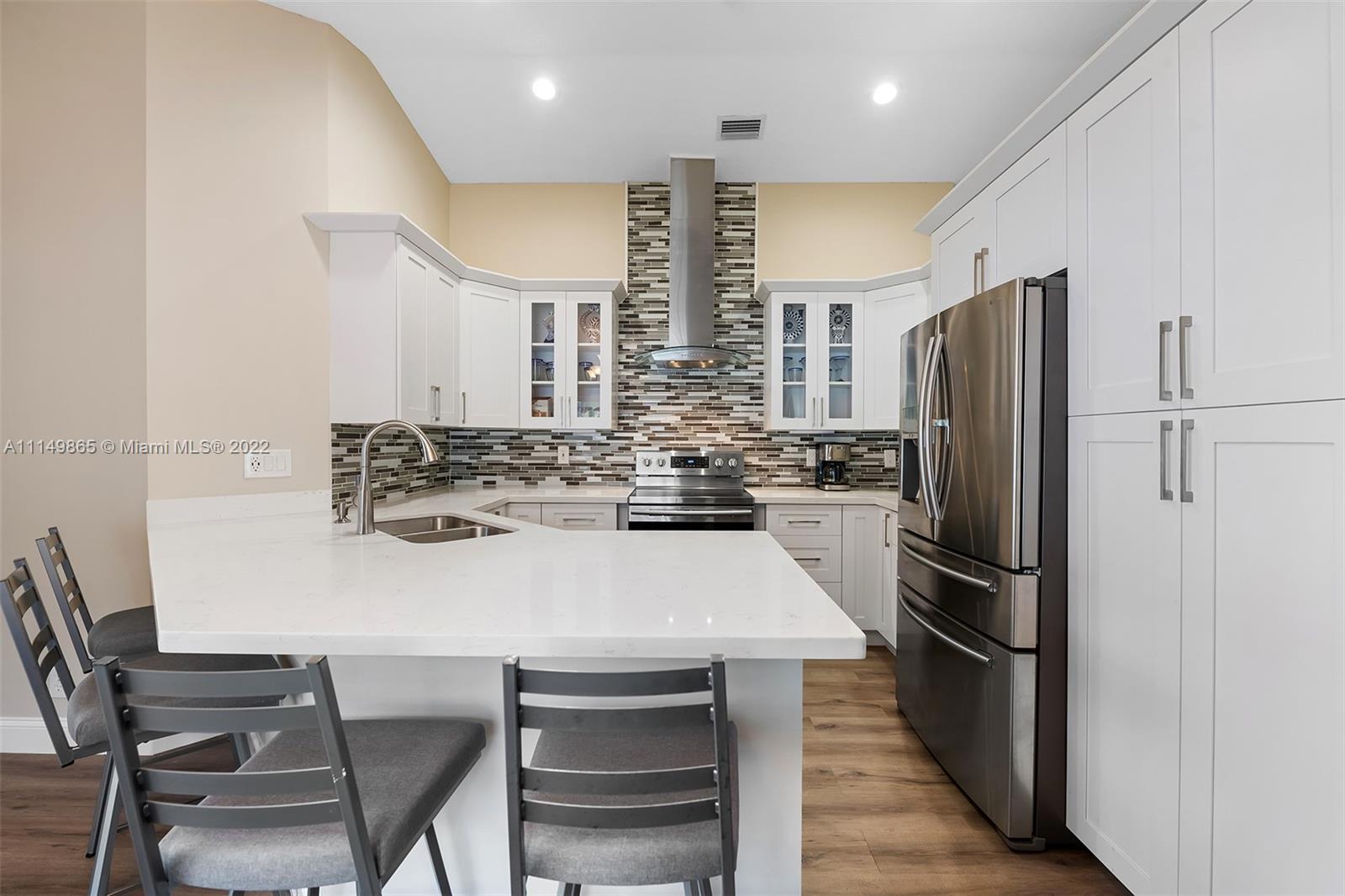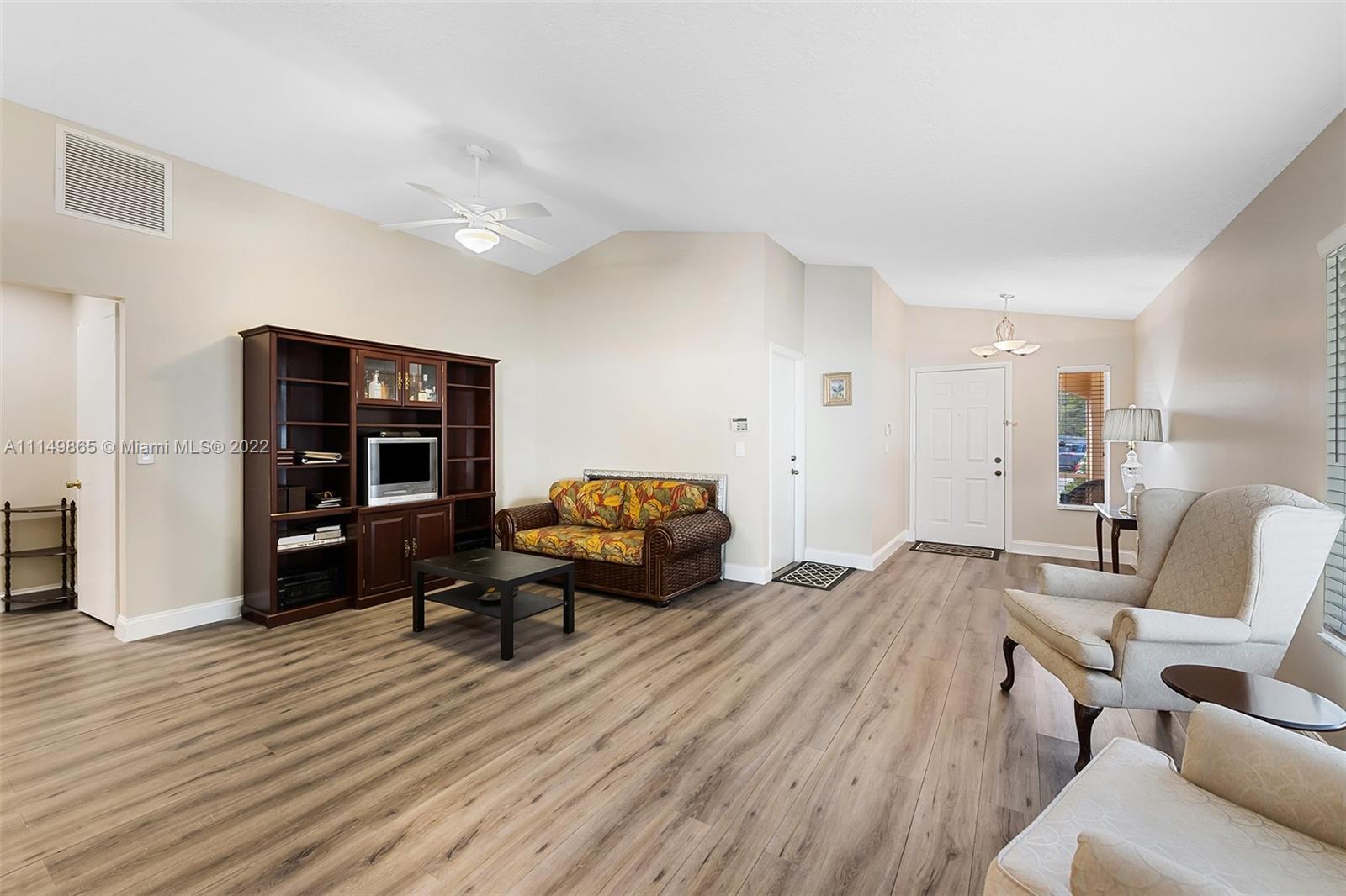 Welcome to this beautifully maintained 3 bedroom 2 bathroom home sitting on a OVER SIZED pie shape lot with plenty of room for a pool. New flooring throughout, with new Kitchen including quarts counter tops and stainless steal appliances. This move-in ready home offers a two car garage, as well as a screened-in back porch. Located within a gated community a short distance to A++ schools, restaurants and shopping, the community offers a kids playground, basketball court and a great swimming pool. Perfect starter home!!