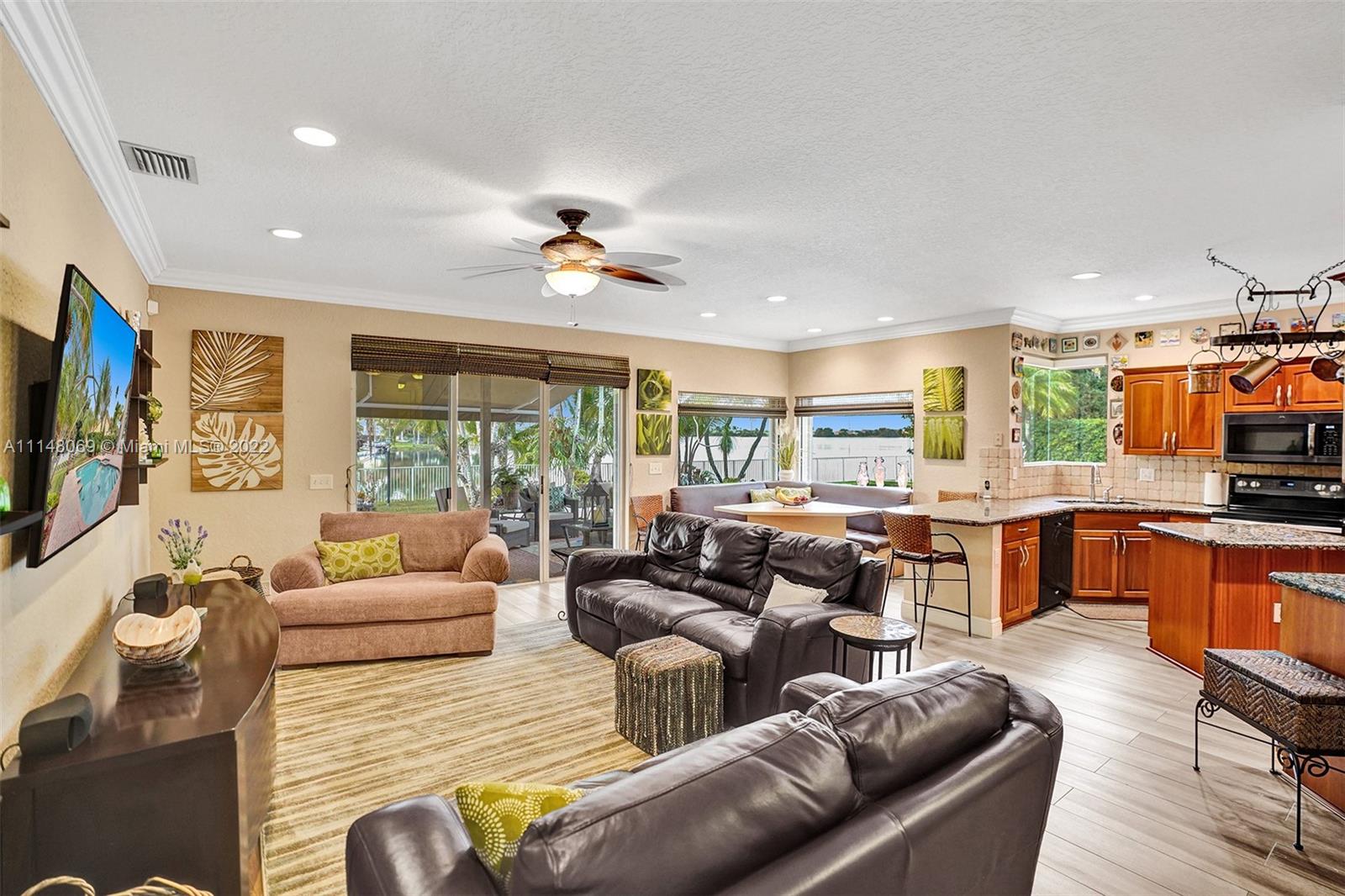 THIS HOME IS EXQUISITE & HAS EVERYTHING A DREAM HOME COULD POSSIBLY HAVE! YOU'LL FALL IN LOVE WITH THE BREATH-TAKING WIDE WATER LAKE VIEW THAT LOOKS MORE LIKE AN OCEAN VIEW & OFFERS THE MOST SPECTACULAR SUNSETS YOU'VE EVER SEEN! THIS HOME HAS IT ALL WITH NEW SPANISH PORCELIN TILE DOWNSTAIRS, UPDATED KITCHEN, CROWN MOLDING, ONE BEDROOM DOWNSTAIRS WITH ENSUITE CABANA BATHROOM LEADING OUT TO THE PATIO, POOL, SPA & OUTDOOR BUILT-IN BBQ & BAR. THREE BEDROOMS UPSTAIRS WITH A PRIMARY BEDROOM & BATHROOM & PRIVATE BALCONY THAT YOU'LL NEVER WANT TO LEAVE! ROOF IS 2006. BRAND NEW OUTDOOR LIGHTING, NEW POOL HEATER & NEW PVC. ACCORDIAN HURRICANE SHUTTERS THROUGHOUT. RETRACTABLE AWNINGS IN THE PATIO AREA. THIS HOME IS BUILT FOR ENTERTAINING & LIVING LIFE TO THE FULLEST!