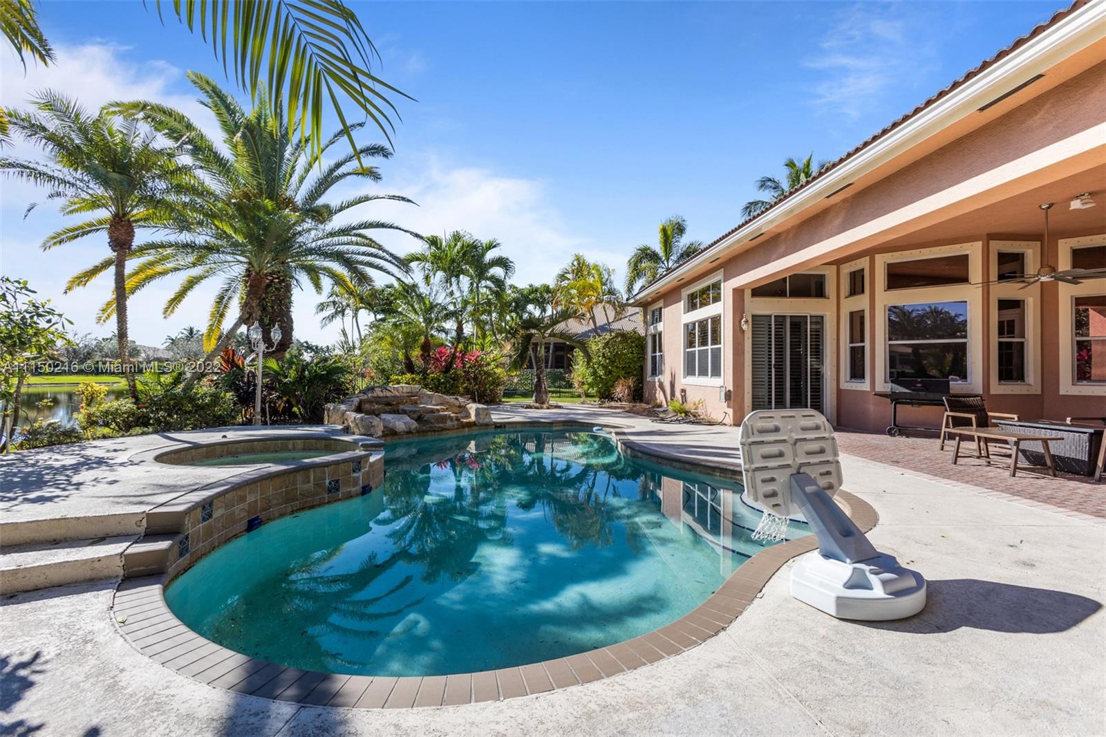 Nestled quietly on a beautiful lot, this beautiful one story home is the perfect escape for someone looking to buy an experience, as much as they are looking to buy a forever home. With a backyard view of the pool and a relaxing lake, a quiet neighborhood that isn’t polluted with the hustle and bustle of a city, this 4 bedroom 4 bathroom plus office home brings the perfect living space for those who have a huge love for nature. This property boasts spacious living. You’ll experience walking into a luxurious setting with its high ceilings, a wet bar with wine cooler. French doors in the formal living open onto the patio that can bring in the sounds of nature right into your home. Enjoy this beautiful heated pool all year round.