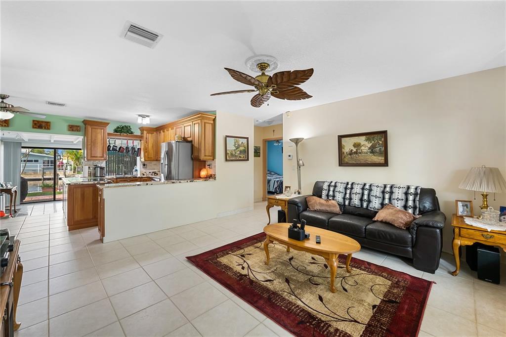 Highly desirable Snug Harbor waterfront home with only 1 bridge (Federal Hgwy) to the inlet. 70 ft of waterfront living! Renovations include a custom designed kitchen with granite tops and stainless steel appliances, new roof in 2018, new central ac in 2021, redone master bath with tile to ceiling design , tankless water heater and porcelain tile in living area. Area off the kitchen currently used for an office. Nice sized florida room for additional living space. Attached 1 car garage and room for RV or boat parking on the north side of the property. Pet on premises. Easy to show with a little notice.