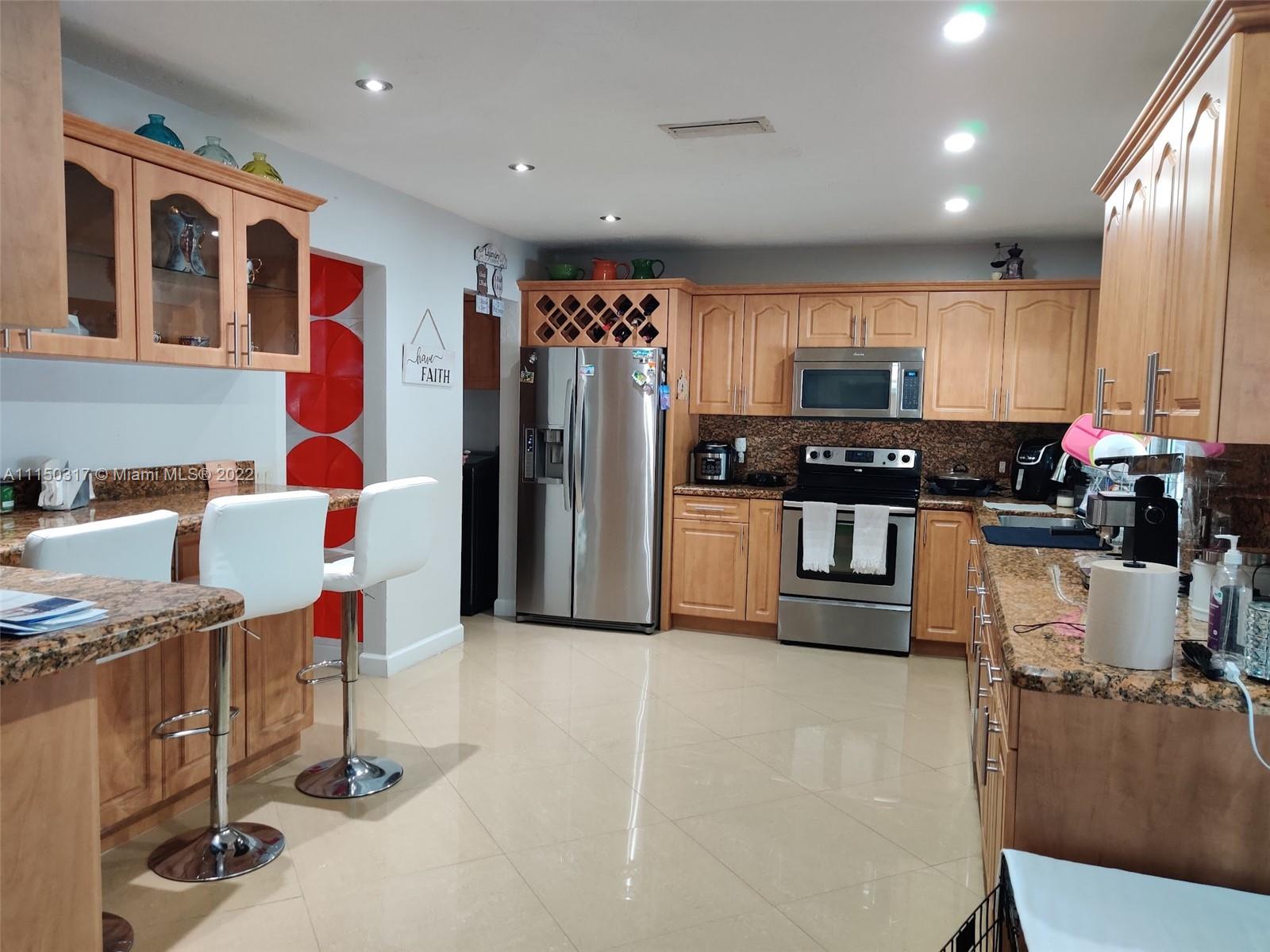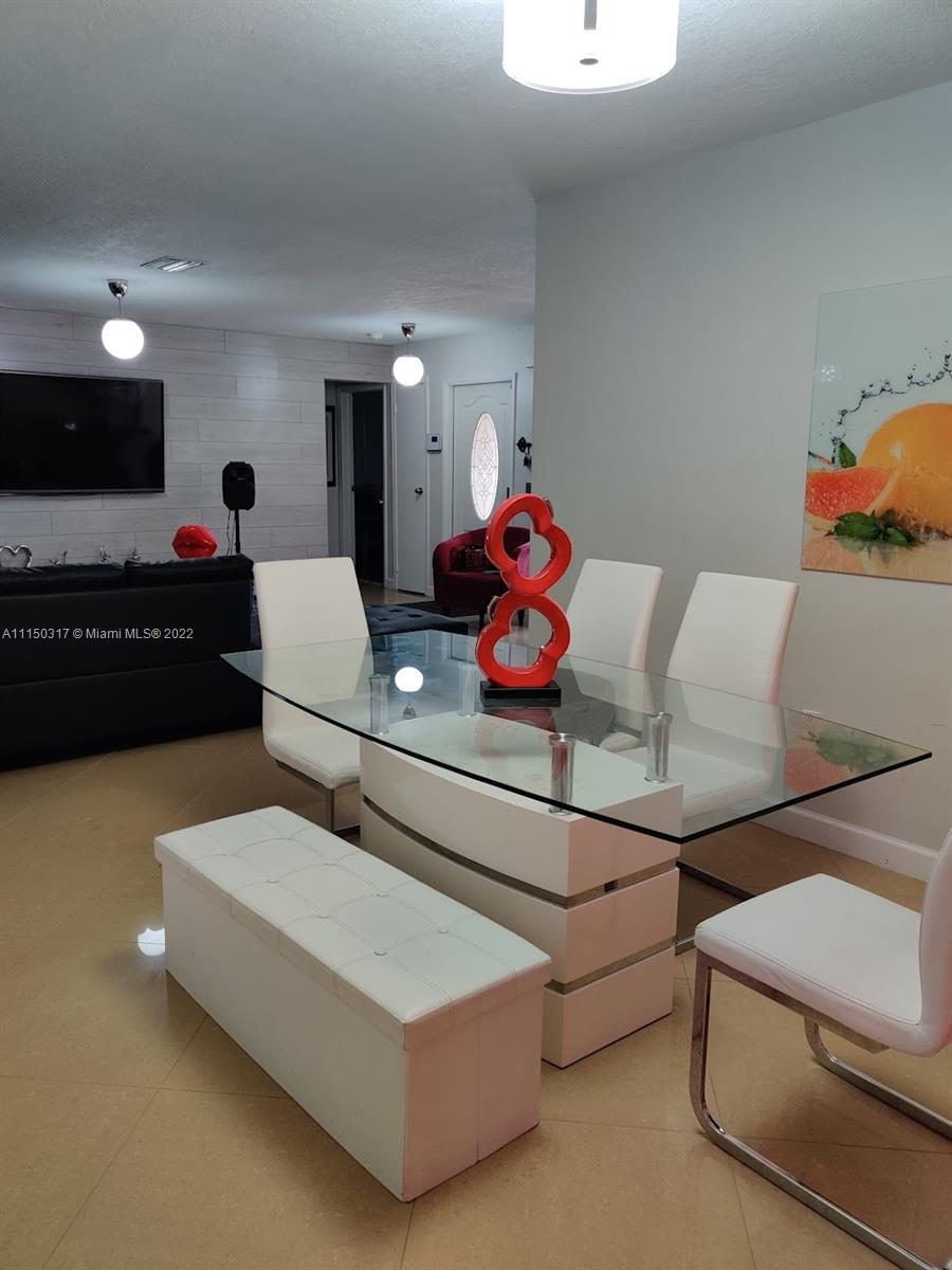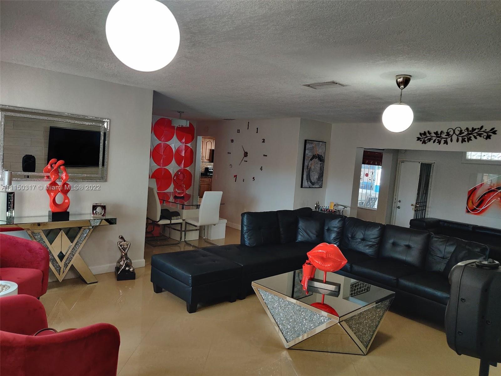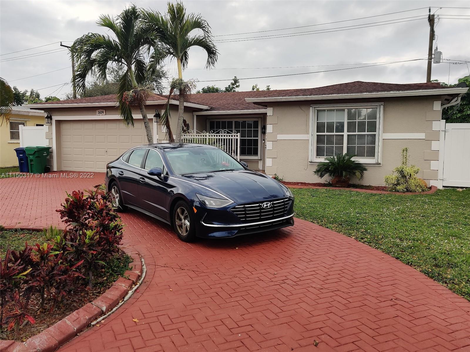 Spacious 3/2 updated home in Miramar. This home has an open floor, eat-in kitchen that has granite countertops, separate living and dining room, updated bathrooms, porcelain tile throughout, and vinyl/laminate floors in the bedrooms. The master bedroom/bathroom has been completely remodeled. The whole house has been freshly painted. Two car garage, circular driveway with space for 5 cars, accordion hurricane shutters all around, Fenced paved. Centrally located to the Turnpike, Hard Rock Stadium, Calder Racetrack and Casino, shopping centers and more. No HOA!!!, Actual Living area as by sketch's Broward County is 2103 SQFT. Offer not subject to appraisal, POF required with contract.
