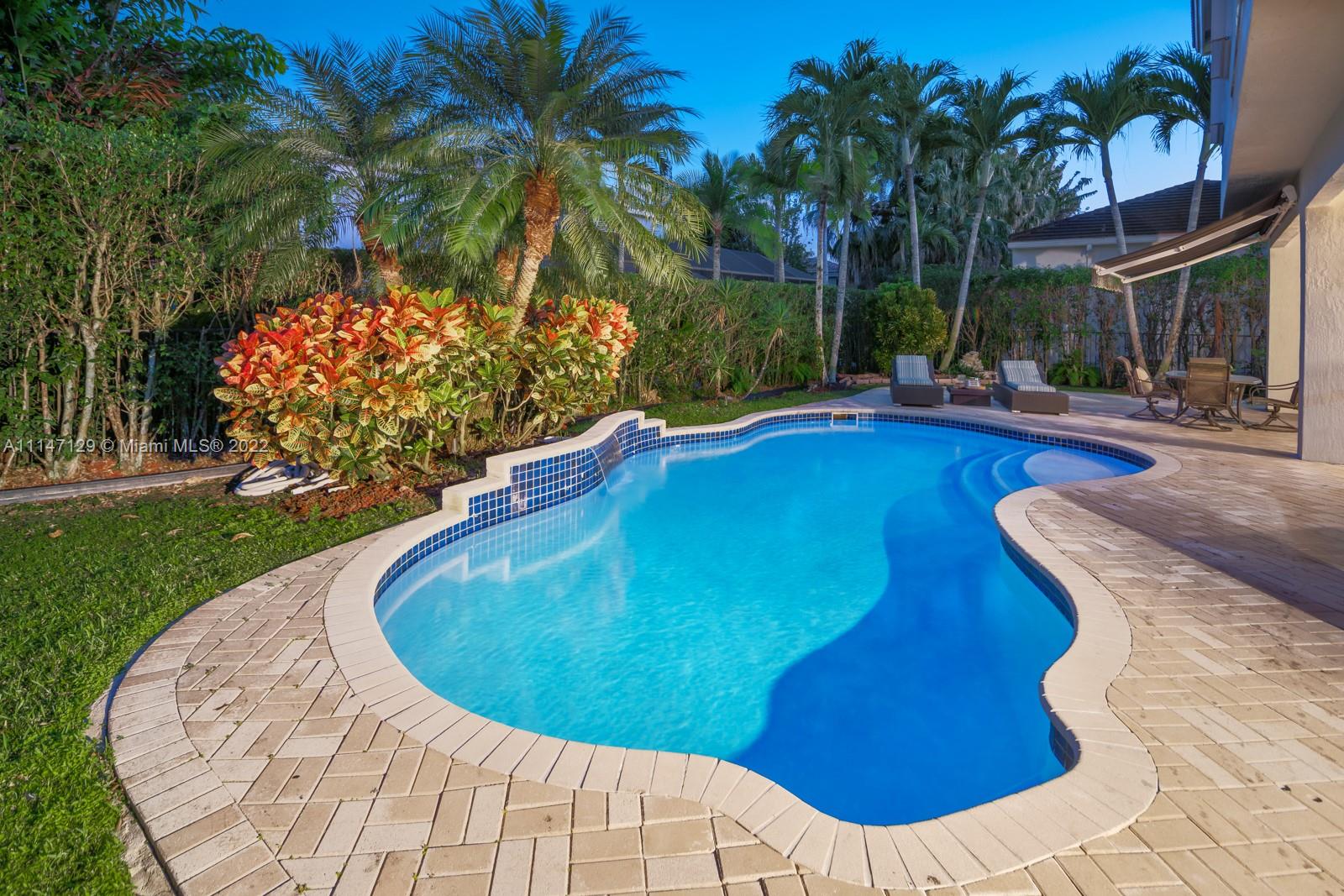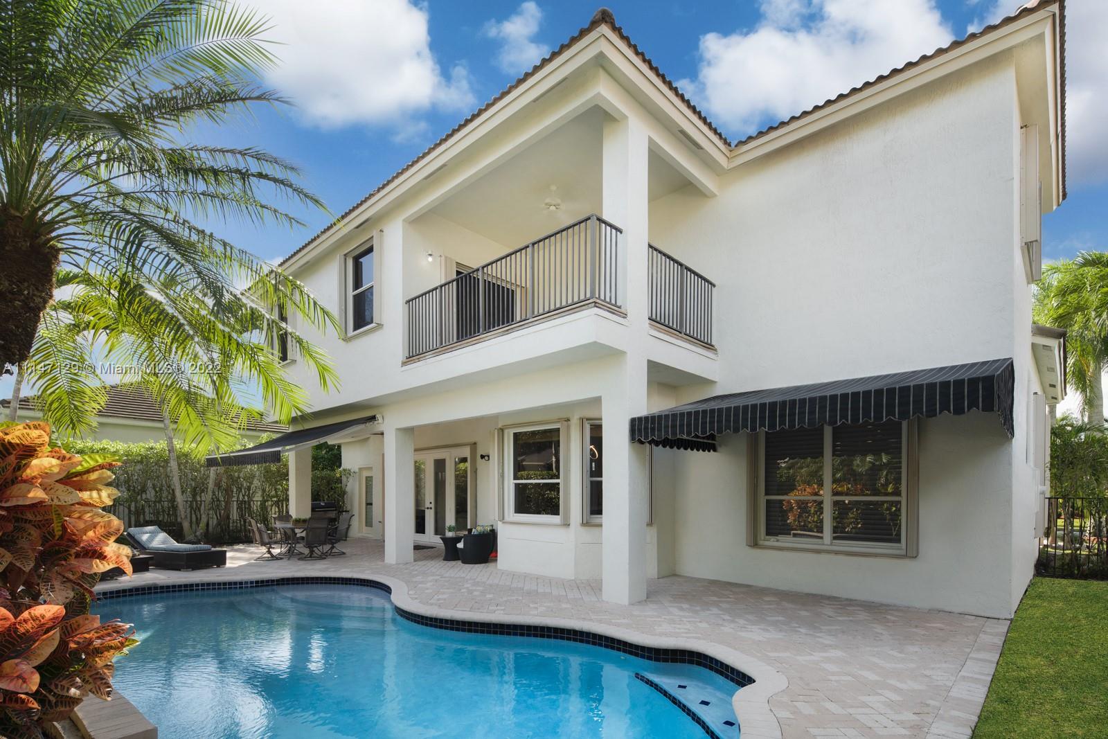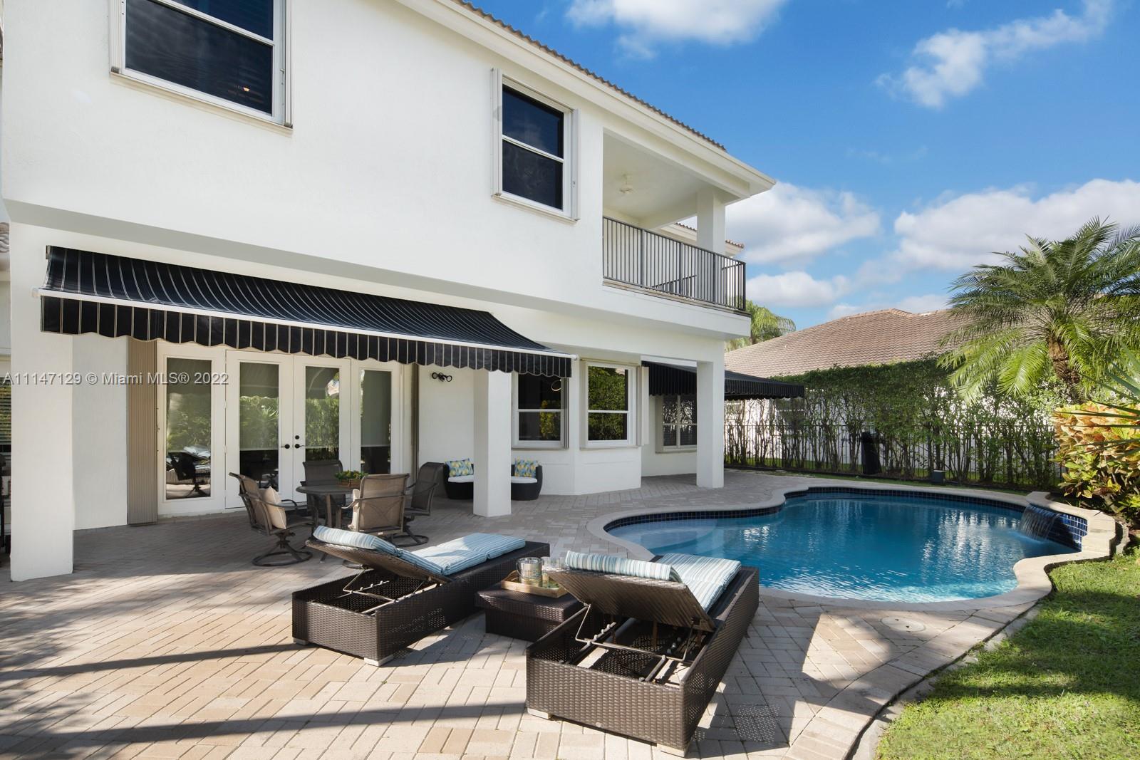 Welcome to Casa Jardin at the prestigious gated golf community of Weston Hills Country Club. This marvelous 5 bed-4 bath, 2-story residence welcomes you to a bright grand entrance featuring double height ceilings in the living room, a formal dining, a spacious family room, and an office/den. The modern kitchen has a center island, a breakfast nook, stainless steel appliances, and quartz countertops. The oversized master bedroom on the second floor boasts a sun filled balcony and a spa-like master bath, with a luxurious freestanding tub and an oversized shower. The lush fenced private backyard features an oversized free-form pool and shaded outdoor dining area with retractable patio cover. Marble floors throughout, engineered wood in bedrooms, accordian shutters, 3 car garage. A+ schools.