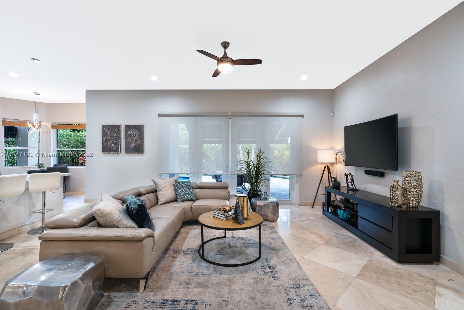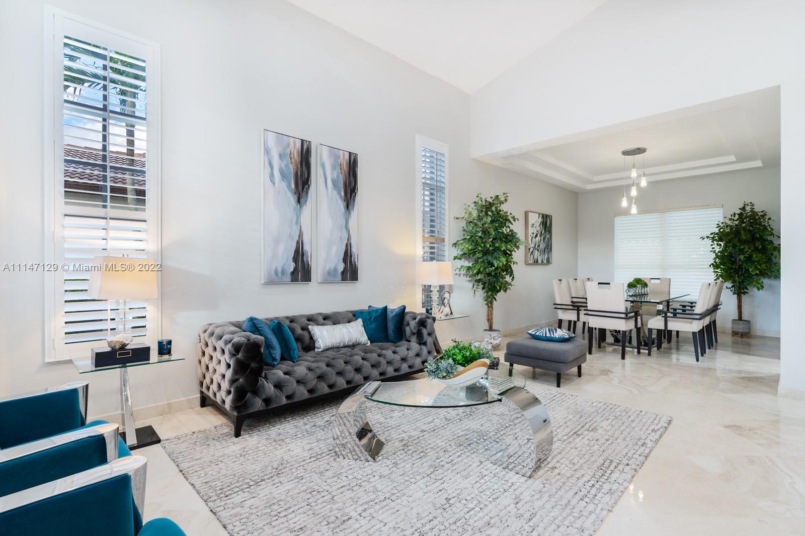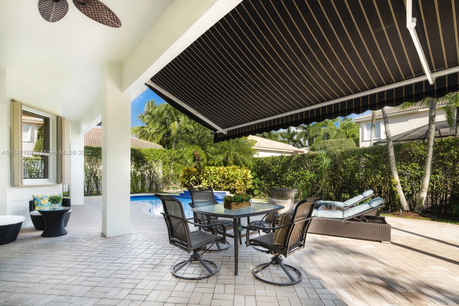 Welcome to Casa Jardin at the prestigious gated golf community of Weston Hills Country Club. This marvelous 5 bed-4 bath, 2-story residence welcomes you to a bright grand entrance featuring double height ceilings in the living room, a formal dining, a spacious family room, and an office/den. The modern kitchen has a center island, a breakfast nook, stainless steel appliances, and quartz countertops. The oversized master bedroom on the second floor boasts a sun filled balcony and a spa-like master bath, with a luxurious freestanding tub and an oversized shower. The lush fenced private backyard features an oversized free-form pool and shaded outdoor dining area with retractable patio cover. Marble floors throughout, engineered wood in bedrooms, accordian shutters, 3 car garage. A+ schools.
