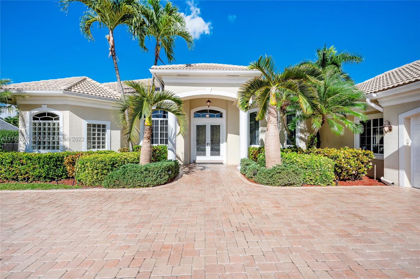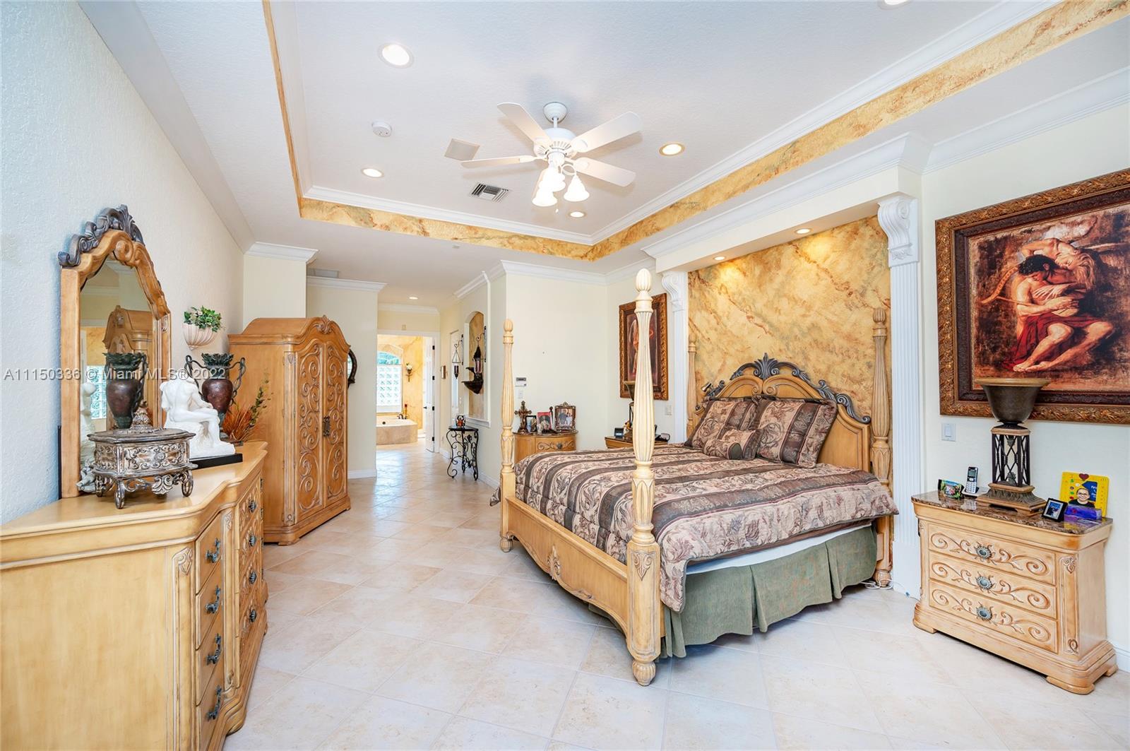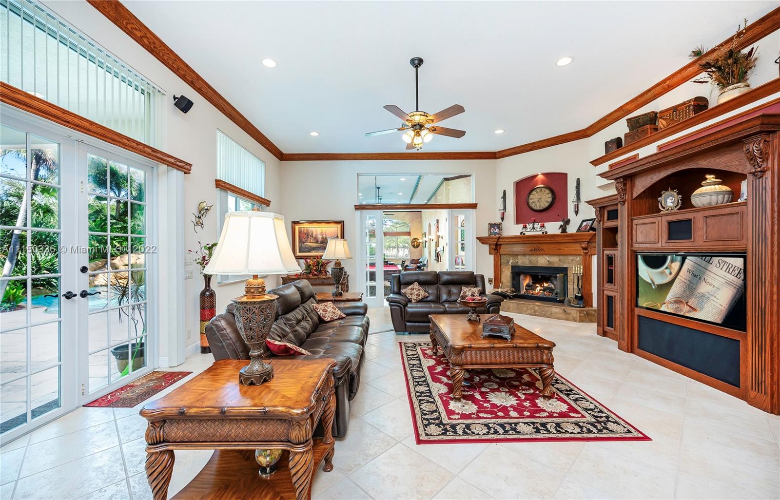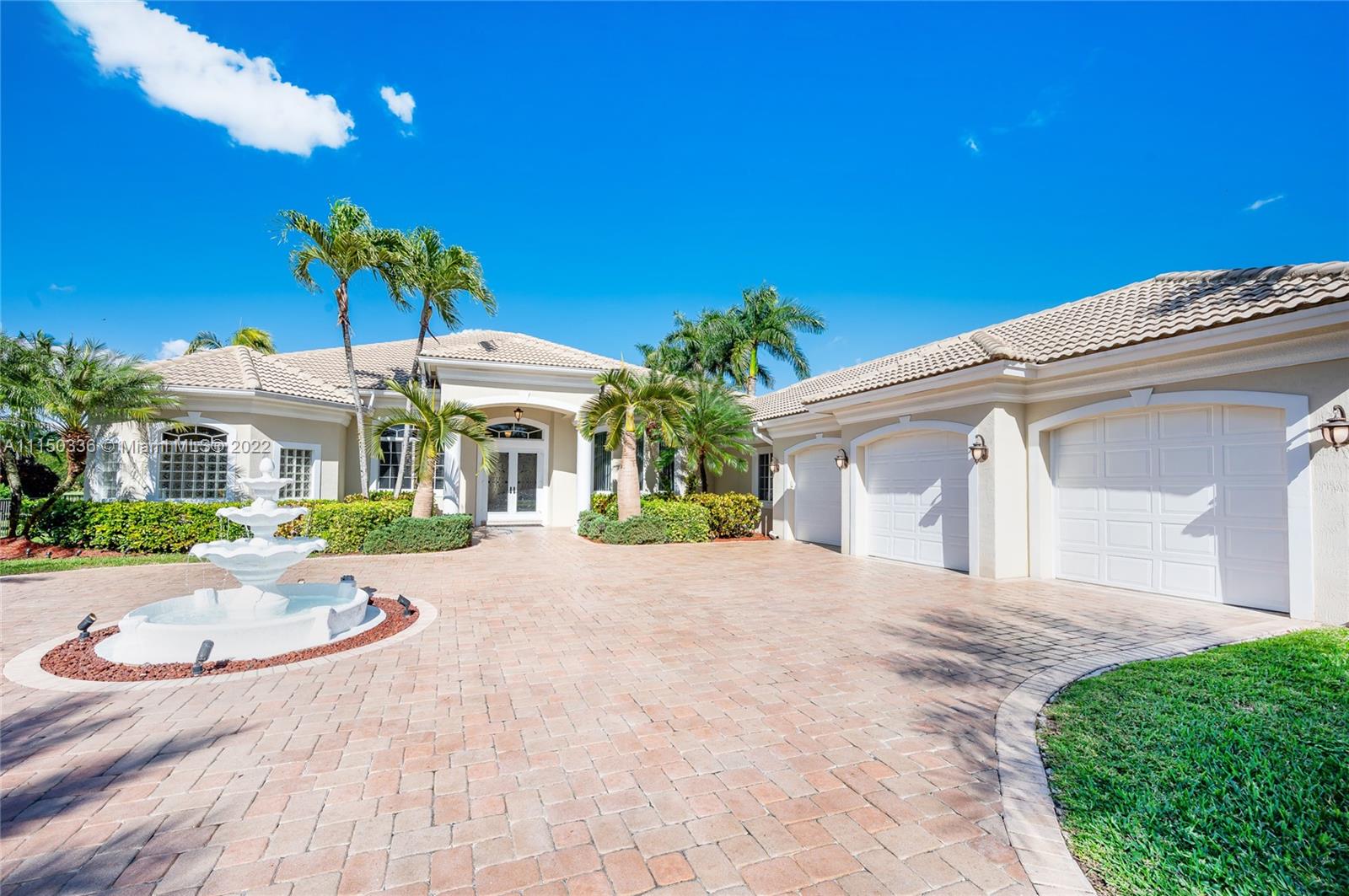 Magnificent Mediterranean style custom home built on a builders acre fenced in corner lot on a lake. Large gym area fully equipped with Nautilus equipment. This area can also easily be converted to two bedrooms with a Jack-and-Jill bathroom. Amazing views from every window. Located in an exclusive gated community of only 27 homes in Davie called Crystal Groves Estates. Spectacular Polynesian Resort backyard with salt water grotto pool, waterfall features, raised spa, pass thru poolside bar, and covered patio with European Tumbled Marble. Lush landscaping and built in fire pit. Impact windows, electric Rolladen aluminum shutters and accordion shutters. Full Genarac 22k air cooled stand by home generator with WiFi connectivity.