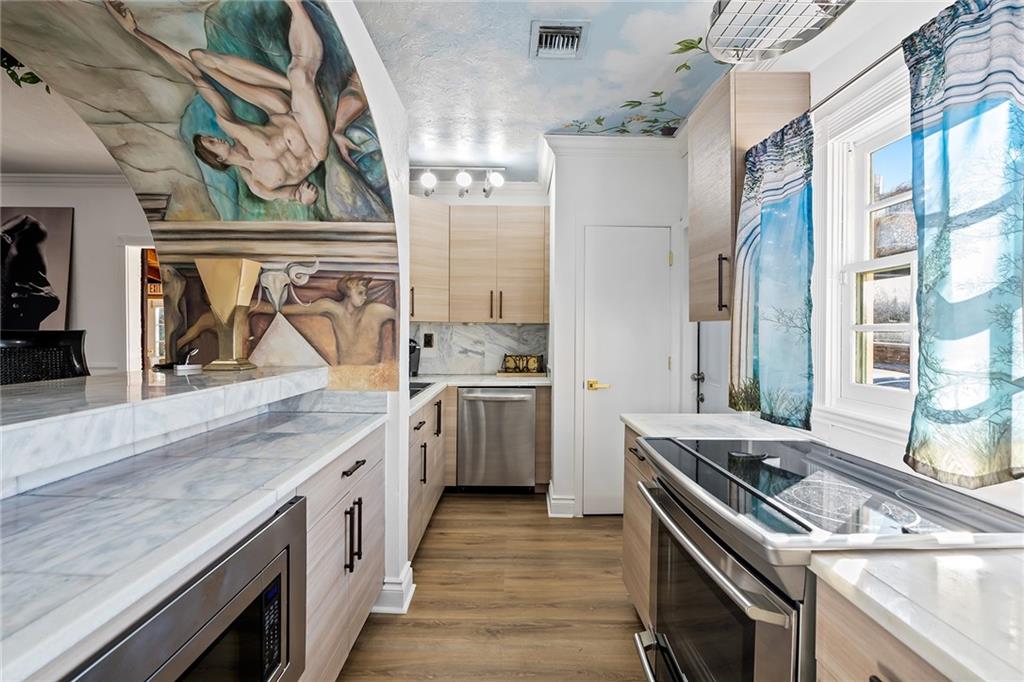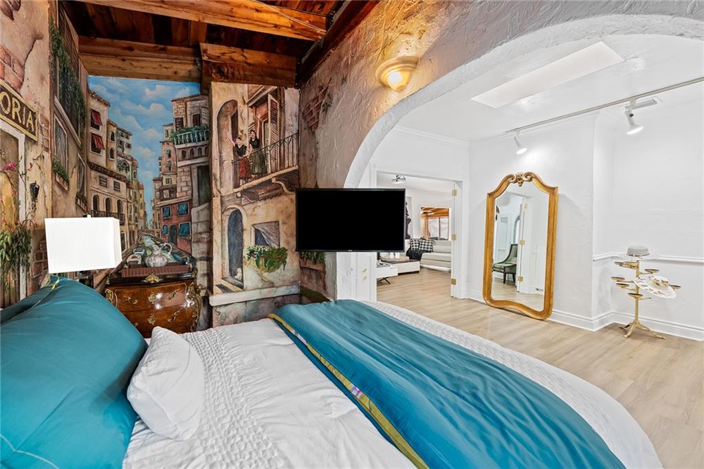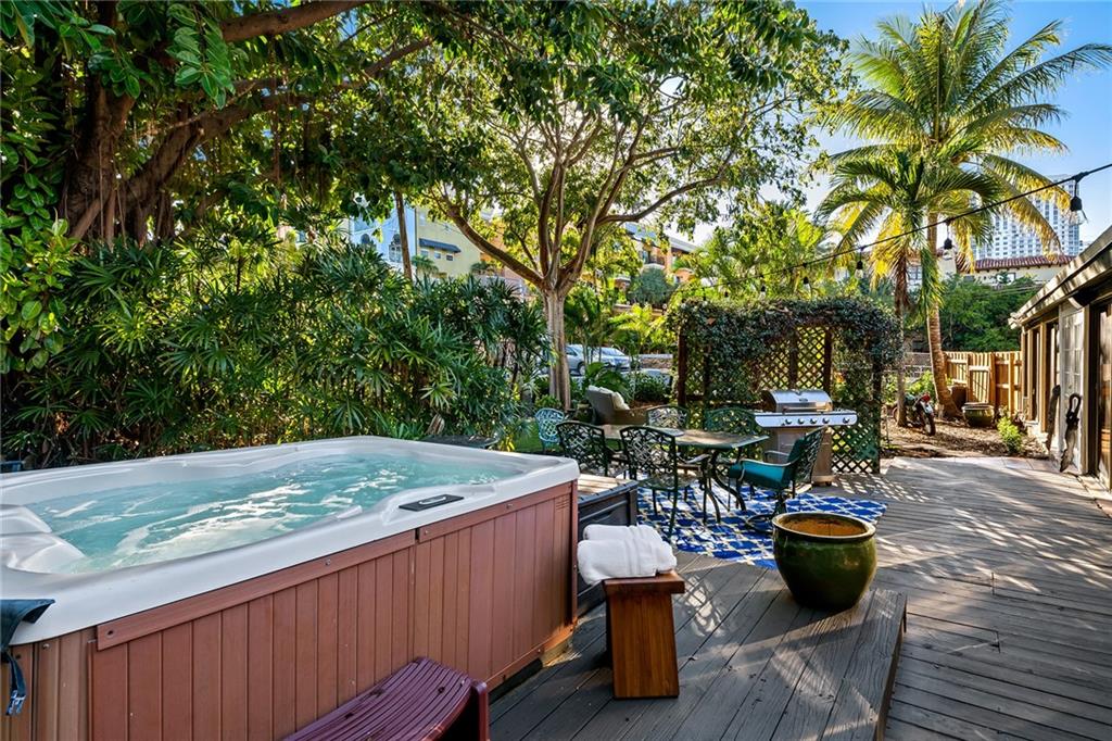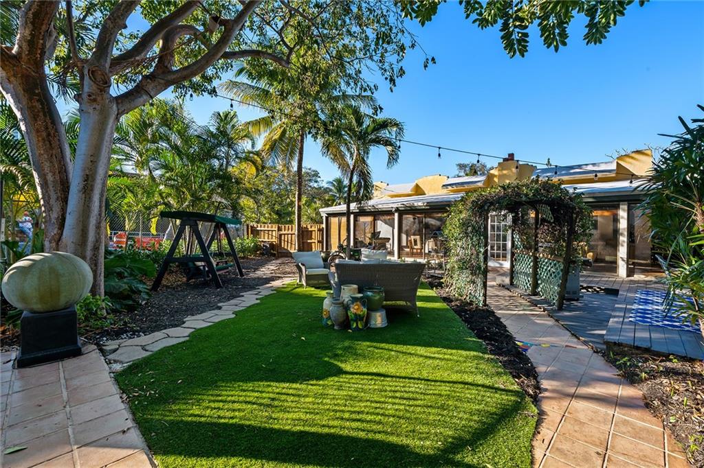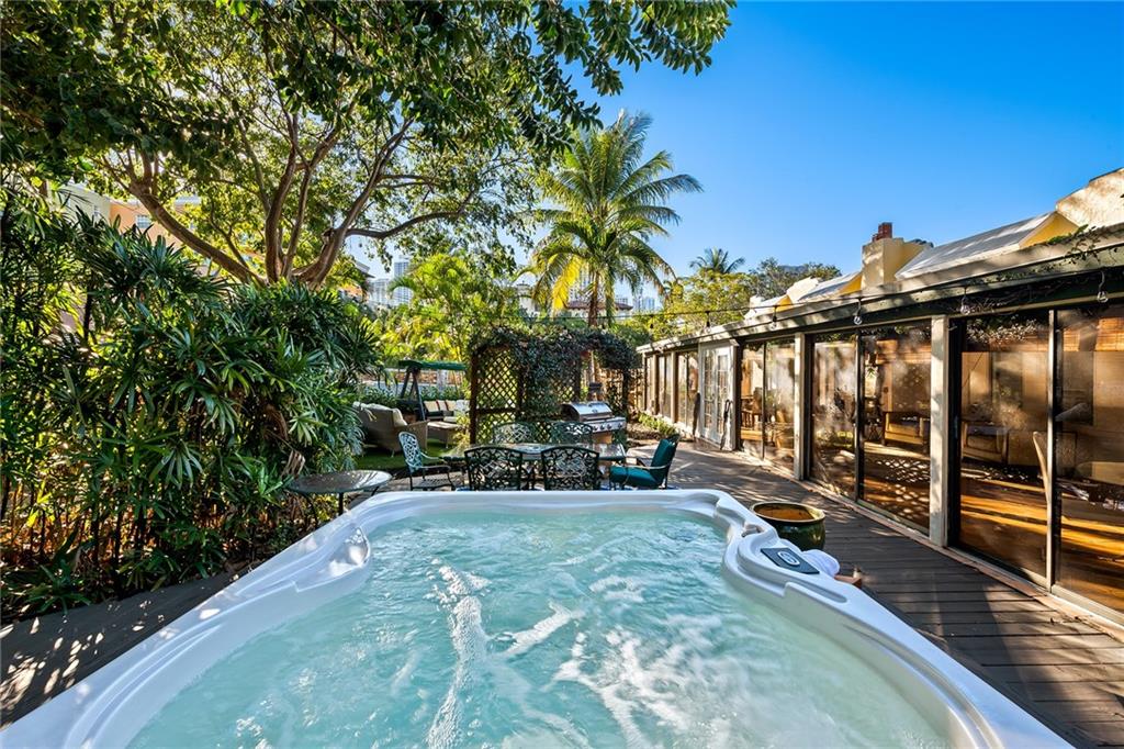 Italian-infused architectural bliss awaits 1 block off Las Olas Blvd in Beverly Heights! Corner lot, waterfront + 7 parking spaces – yes, this is real in today’s hot market! Florida charm meets modern zen w/ Italian murals, arches, soaring ceilings, fresh paint, + select skylights throughout. Cedar-lined enclosed patio w/ 8 sliding glass doors + gleaming Saltillo tile. Marble, tall cabinets + stainless-steel appliances in kitchen. Primary suite w/ 2 original murals, French door exit + ensuite bath clad in classic green tile. Huge walk-in laundry room. A former photography studio, ready for entertaining or an Airbnb! Fully fenced yard w/ extensive wooden decking, hot tub + pops of green. Zoned for a single-family home or two townhomes. Experience it while you can!