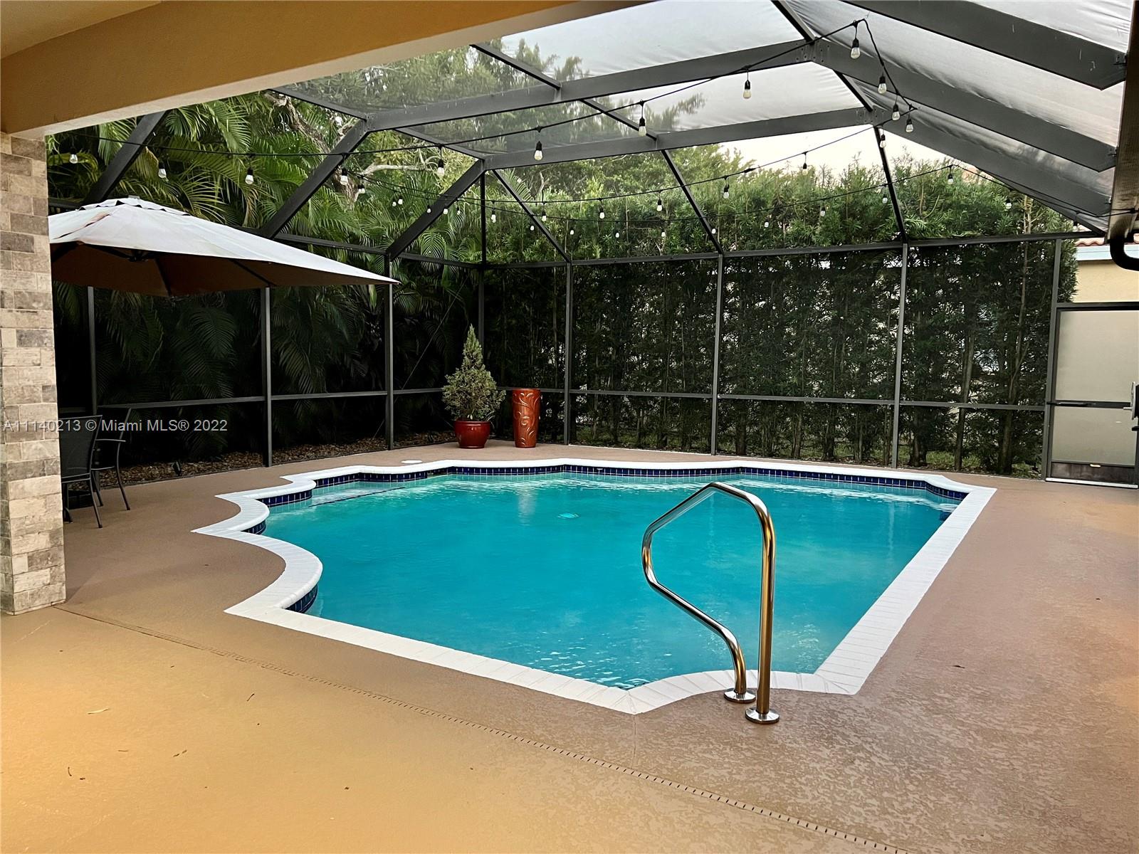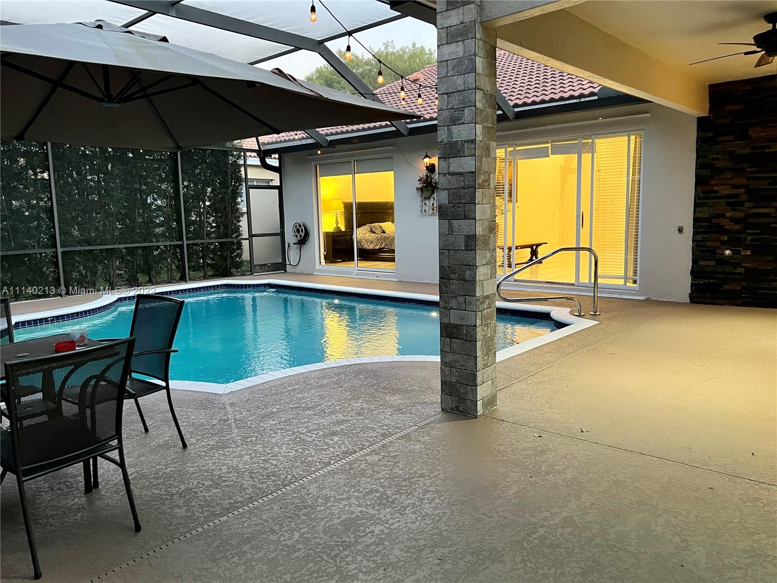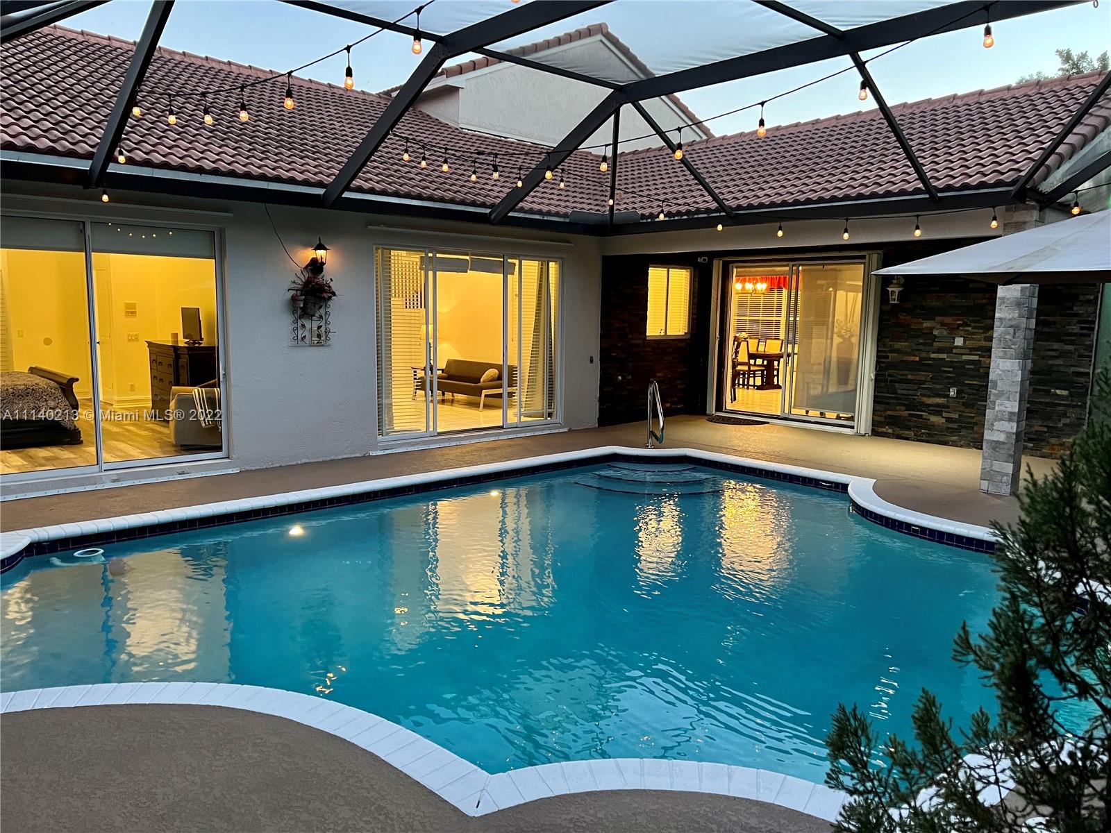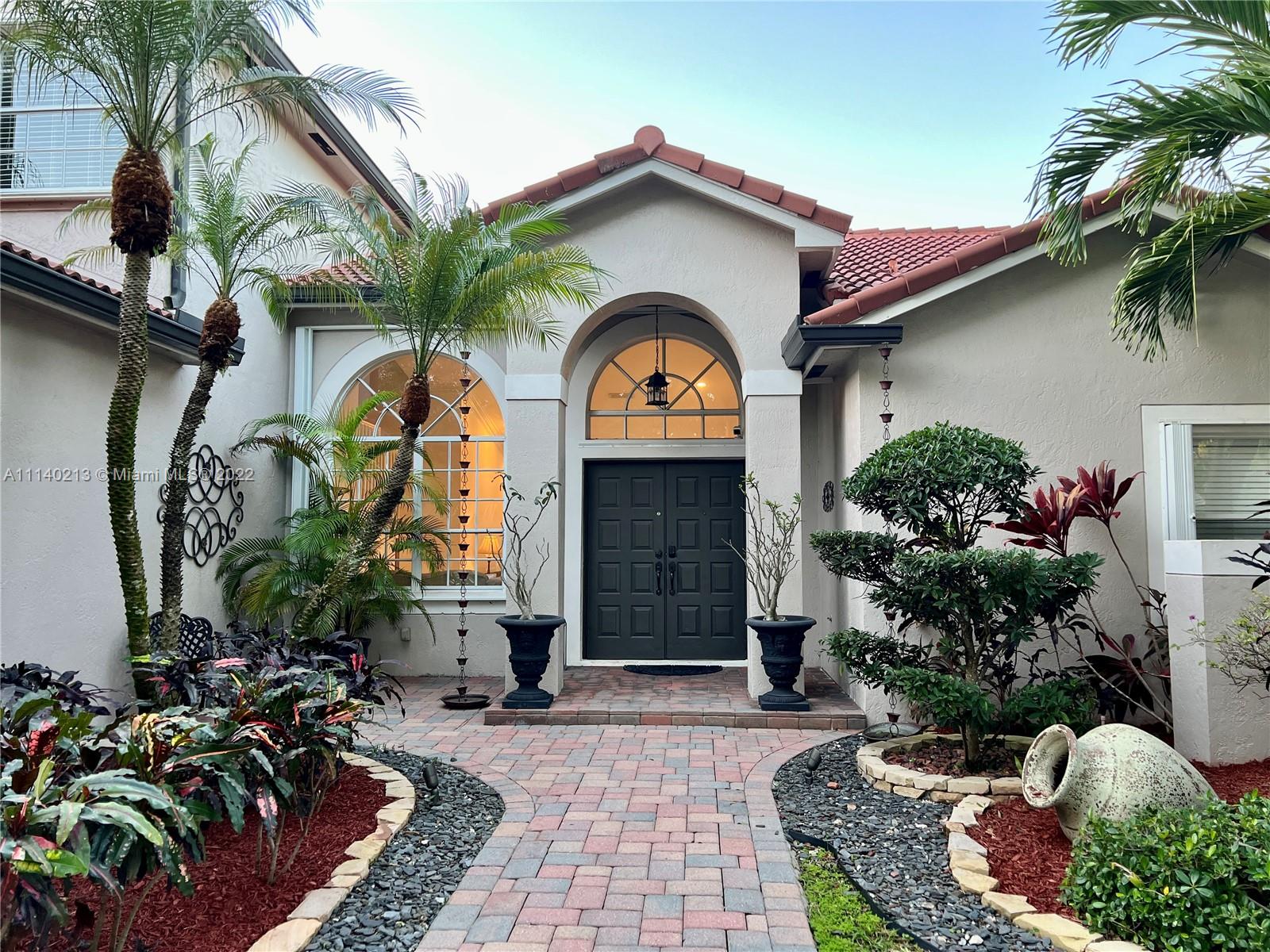 Best location just steps from Weston Town Center shops and restaurants. This beautiful 4 bed & 3 bath pool house sits in Waterford Landing, a boutique style neighborhood with only 70 houses. Incredible triple split bedroom layout with 2 bedrooms downstairs including the Master bedroom & 2 other bedrooms upstairs with a Jack & Jill Bathroom. Newer roof from 2016 & recently painted inside and out. Inviting and very private screened pool area. Newly expanded entrance with pavers, new gutters, professionally landscaped & outdoor lighting. Hurricane protection, security system. Newer A/C unit from 2019 with smart controller. Kitchen featuring SS appliances, granite countertop w/ island. Best schools and quick access to I-75 and shopping!