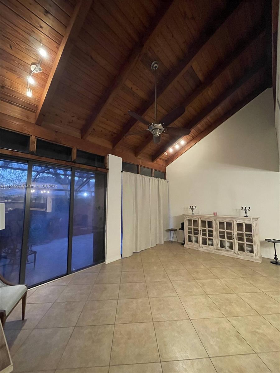 Beautiful townhome in the heart of Pembroke Pines. Open living spaces feature vaulted wood beam ceilings and tile flooring. One full bedroom and bathroom downstairs, with two additional bedrooms and bathroom upstairs. This property has been well maintained and updated and shows beautifully. There is a large screened in patio, perfect for your morning coffee or evening glass of wine. Low HOA fee of $115 per month, which includes a pool, tennis court, basketball, and clubhouse. Contact us today for a showing! See broker remarks for showing instructions. Please text Kat Curtiellas for ALL showings and questions.