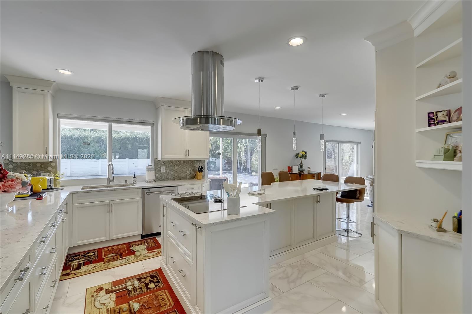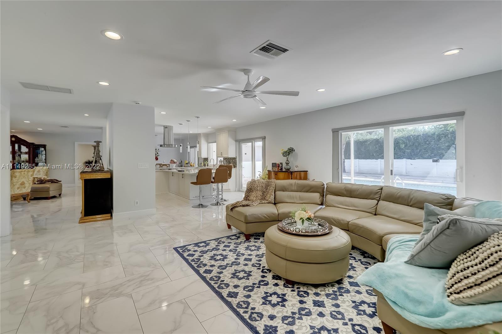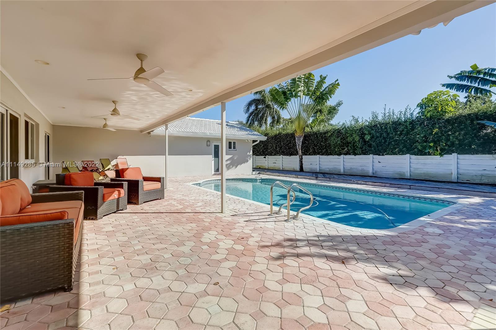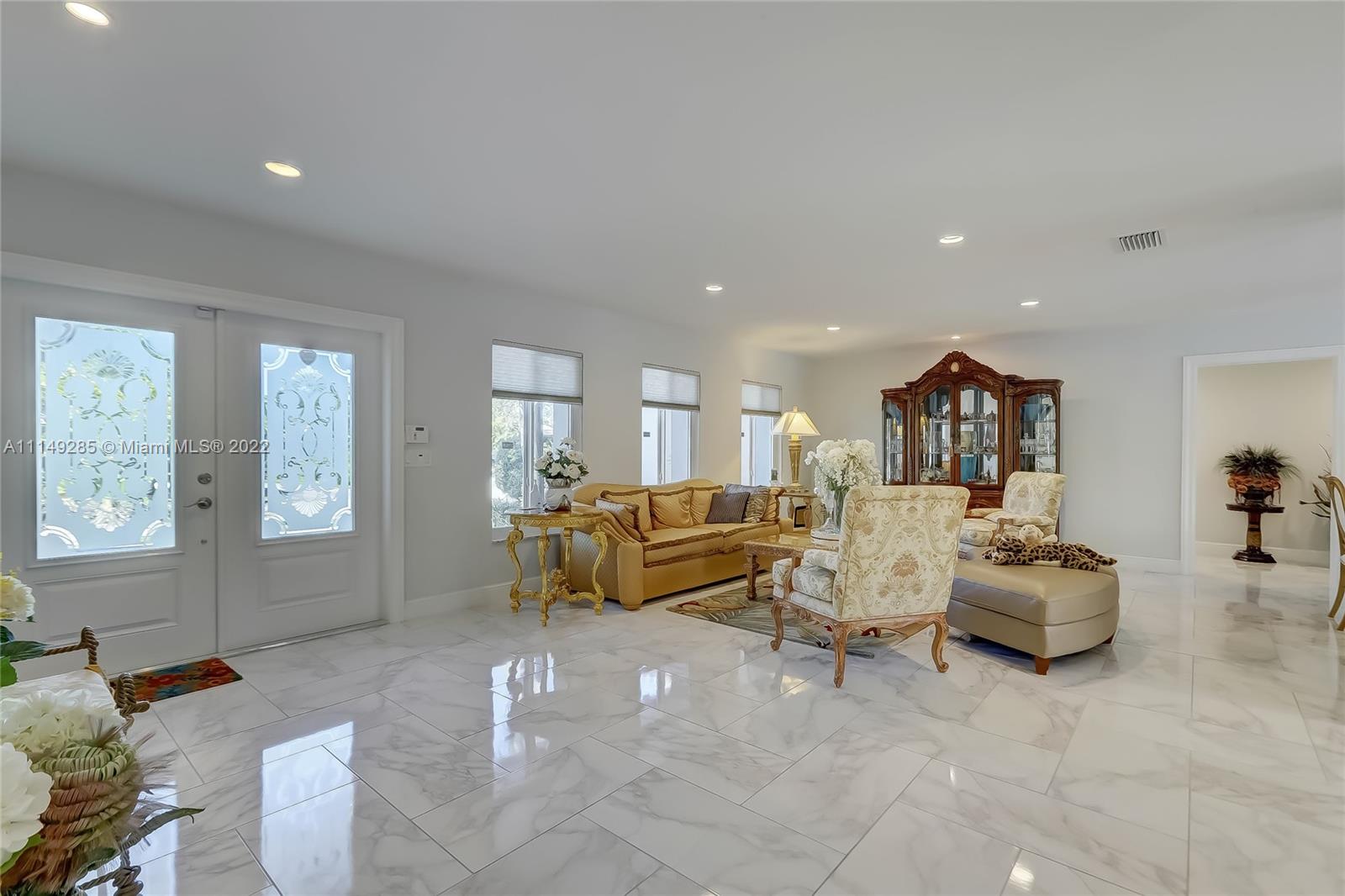 **Renovated Home in 2018 in Emerald Hills**. All Porcelain flooring throughout, All impact windows & doors, Open Quartz Kitchen w/ breakfast island, Lots of light, Gorgeous Bathrooms. Large Family Room. As soon as you open the door, you see an open floor plan. Expanded hallway. 4 full bedrooms (4th bed was opened to primary suite, can be easily converted to full bedroom). Garage was converted long time ago to a larger room w/ ensuite full 3rd bathroom w/ separate entrance (perfect for in law quarters or 5th bedroom). Corner lot, Circular driveway, large covered terrace for entertaining, pool deck, Fenced yard, 2 tankless water heaters 2018, Ac units 2017/2018. **multiple cash offers**. owner will review offers March 3.