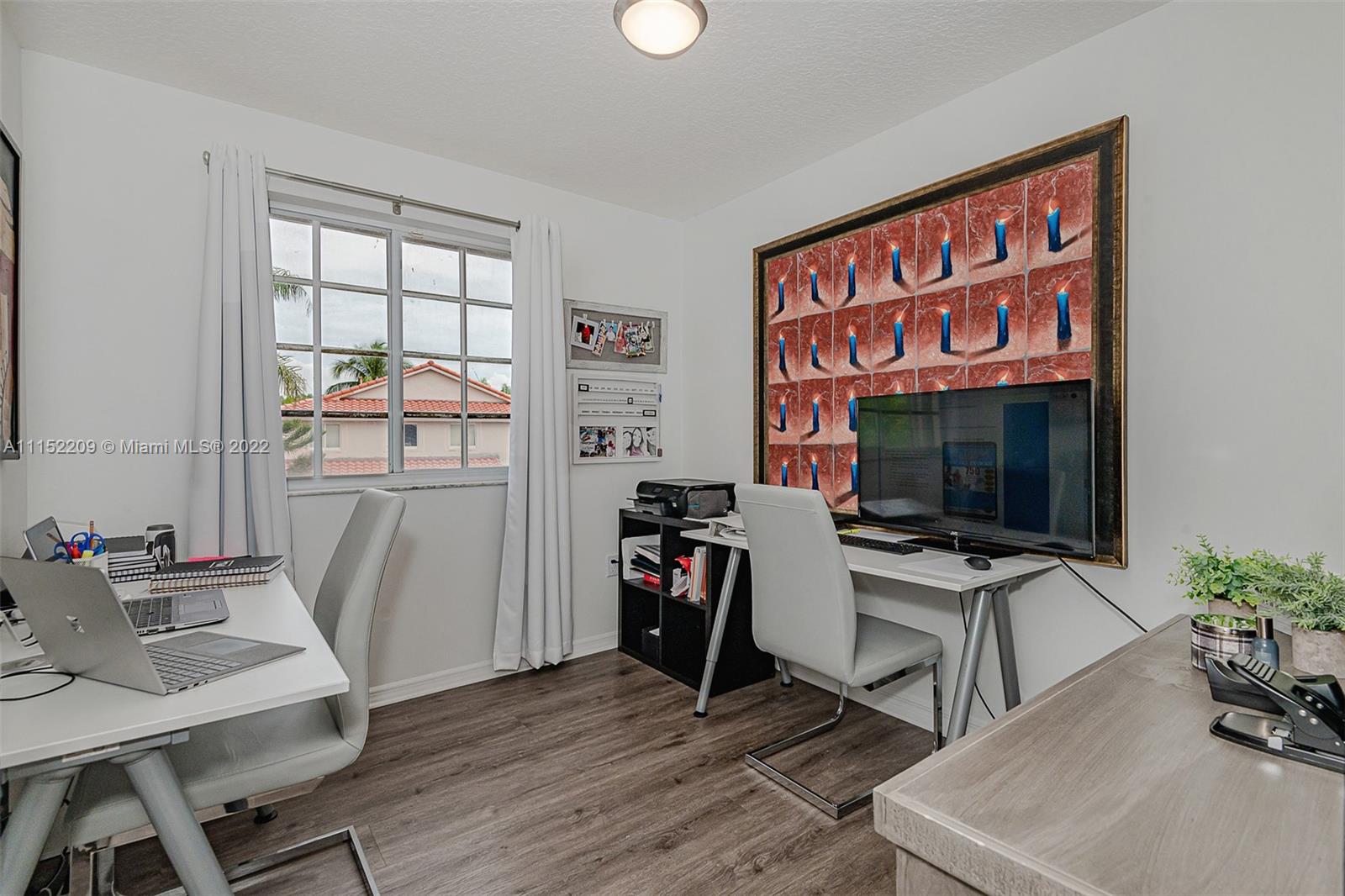 Spectacular luxury home at prestigious gated community of "Doral Sands'', 4 bed + den, 3 1/2 baths, elegant kitchen with quartz countertop, wine cooler, stainless steel appliances, porcelain downstairs & vinyl floors upstairs.2 car garage. Access to "Doral Park Golf & Country Club" with amenities: Golf course, swimming pool & bar, gym, tennis center, playground, restaurants. Great Schools in the area. Close to shops, supermarkets, minutes away from Florida's Turnpike & Airport.