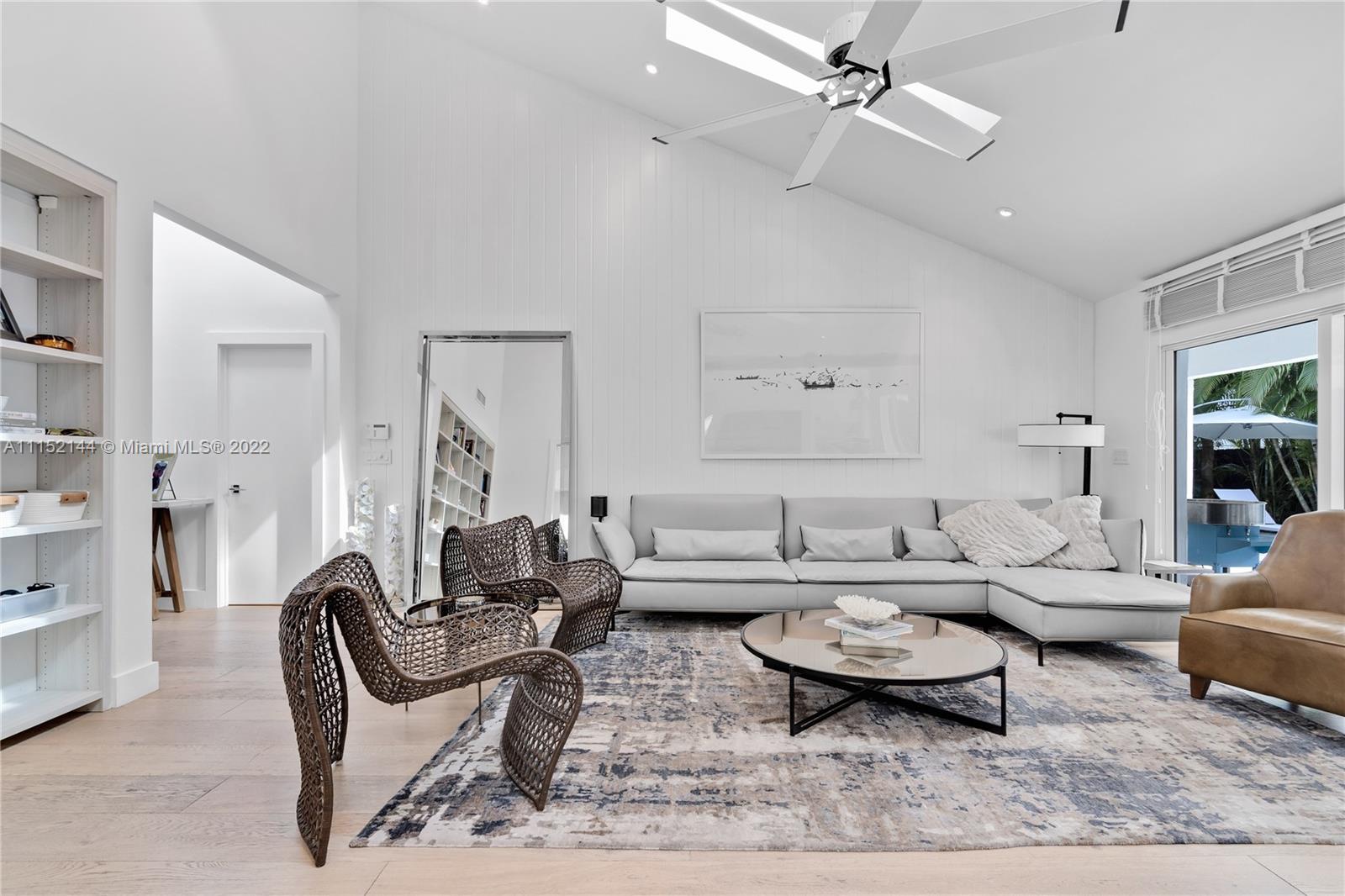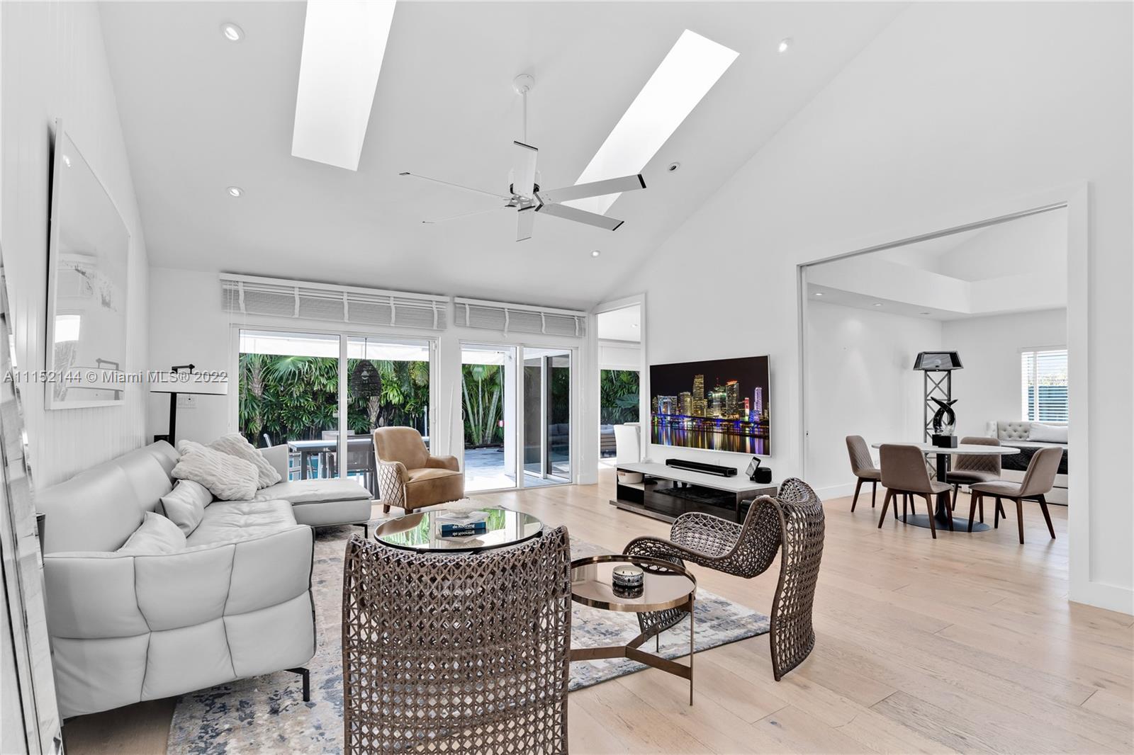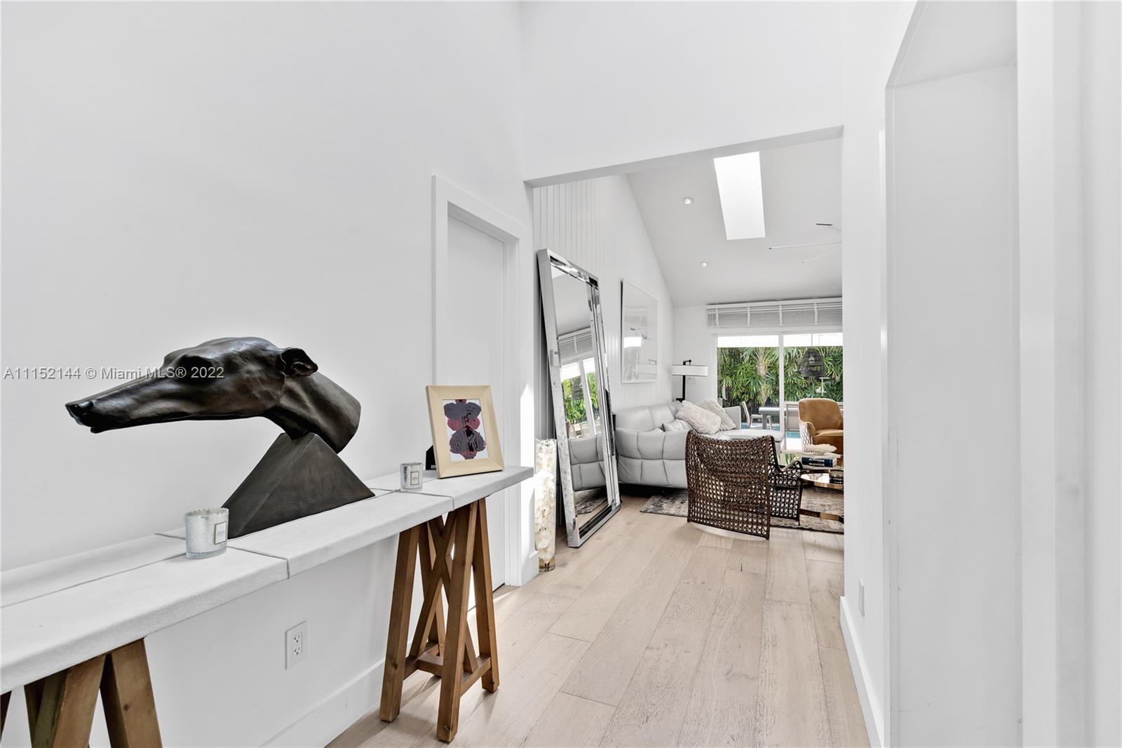 Fall in love with this impeccable and gorgeously remodeled ELEVATED home built in 1989 located in a quiet and elevated street. Beautiful vaulted ceilings with several skylights that fill the house with natural light, combined with wood floor for a complete cozy feeling, 5 bedrooms, 4 full baths, living room, family room and a very spacious kitchen with dining area that opens completely to the pool area. Covered terrace ideal for those who like to entertain next to a heated swimming pool.Custom closets, electric shades in several areas, attic with A/C. Complete impact windows & exquisite landscape that provides full privacy.Won’t last!