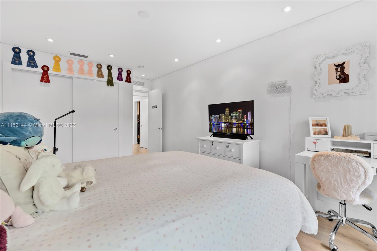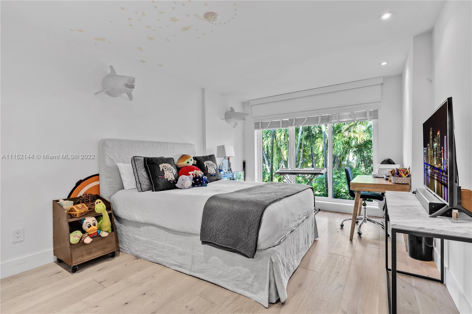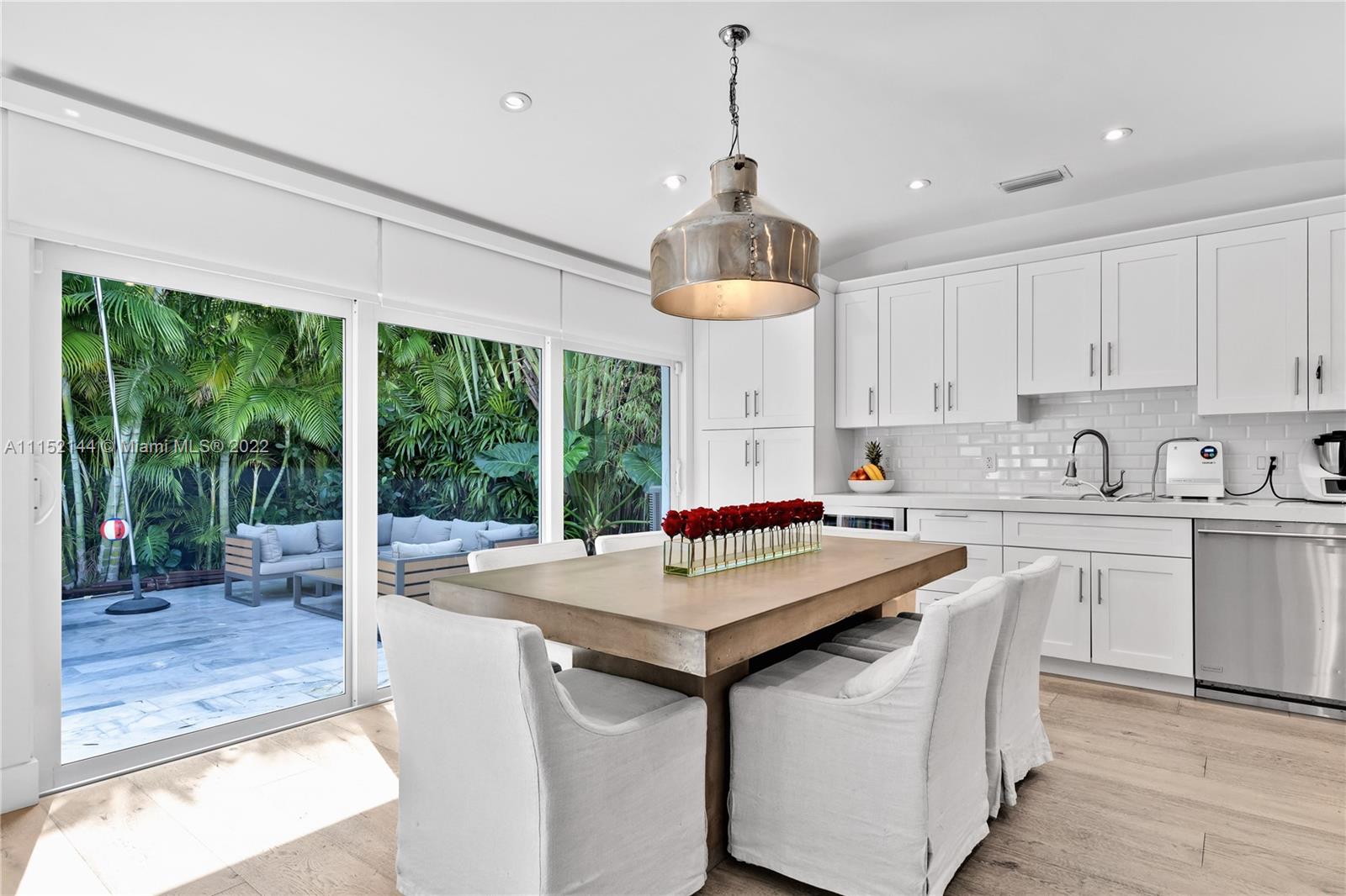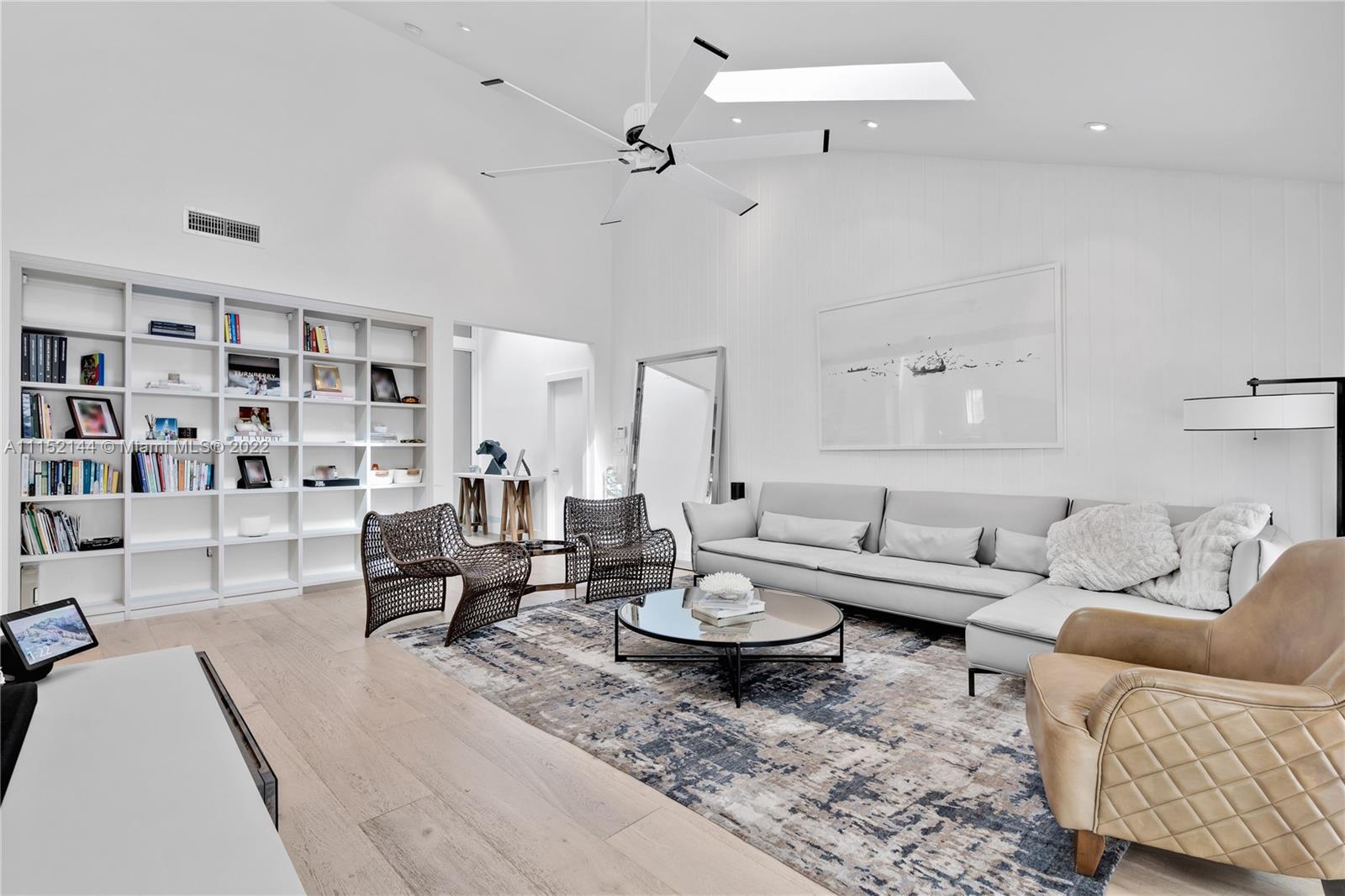 Fall in love with this impeccable and gorgeously remodeled ELEVATED home built in 1989 located in a quiet and elevated street. Beautiful vaulted ceilings with several skylights that fill the house with natural light, combined with wood floor for a complete cozy feeling, 5 bedrooms, 4 full baths, living room, family room and a very spacious kitchen with dining area that opens completely to the pool area. Covered terrace ideal for those who like to entertain next to a heated swimming pool.Custom closets, electric shades in several areas, attic with A/C. Complete impact windows & exquisite landscape that provides full privacy.Won’t last!