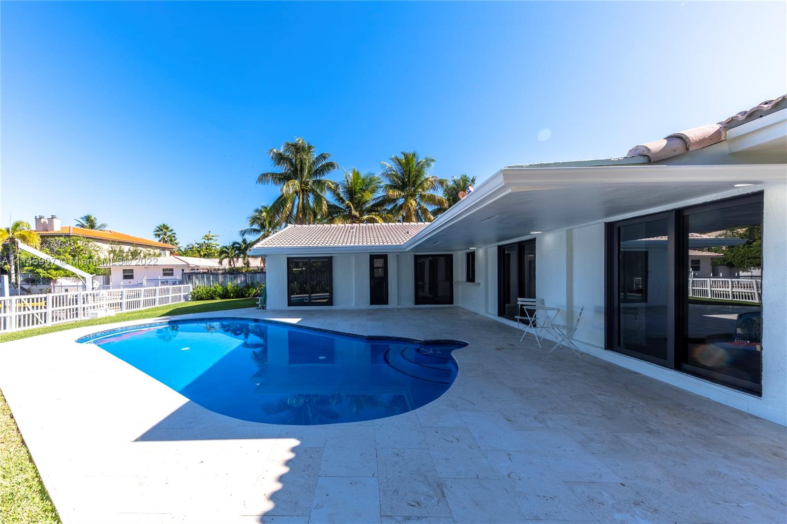 . . . LONG CANAL WATER VIEW. . . . LONG CANAL WATER VIEW. . . . LONG CANAL WATER VIEW. . . EASTERN SHORES. . . Get ready, this fully updated estate with beautiful LONG CANAL water views from almost every room won’t last long! Nearly 3,000 total square feet, a fully updated kitchen with quartz island, open floor plan, and nestled in Eastern Shores most exclusive gated community. Fully updated oversized pool and terrace overlooking your private 60 FOOT SEAWALL, ready for your yacht and toys. With NO FIXED BRIDGES and ocean access you can cruise to the Bahamas, The Keys, Haulover park, & more. This estate bodes an oversized lot with extra wide frontage & impact windows.